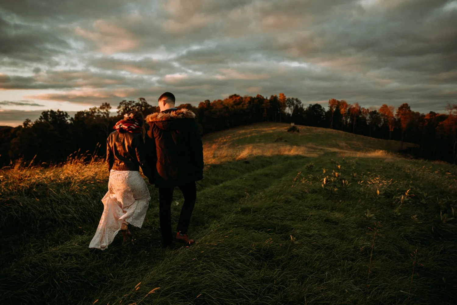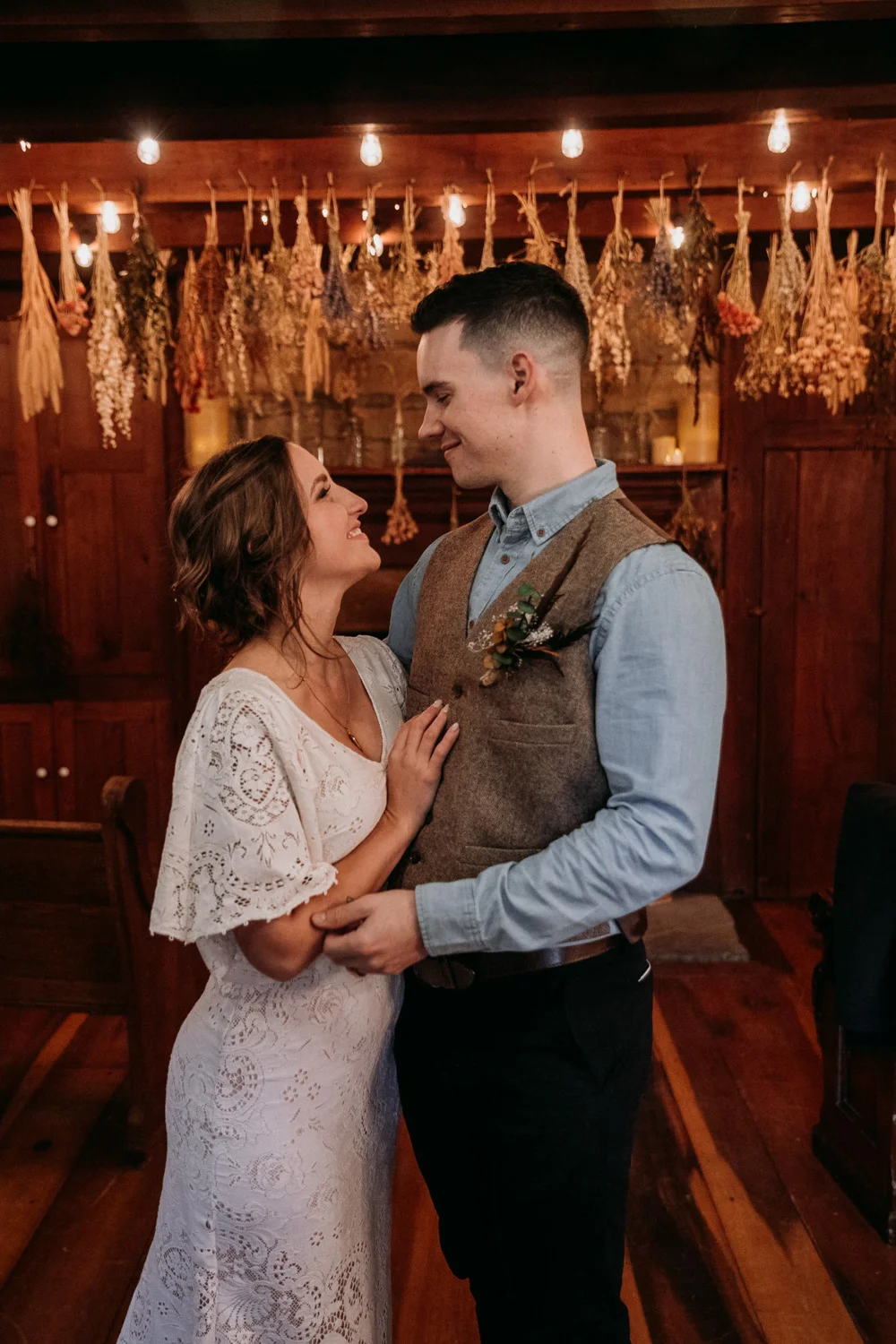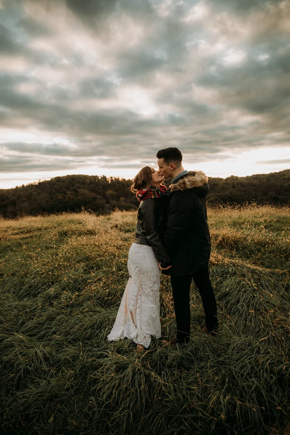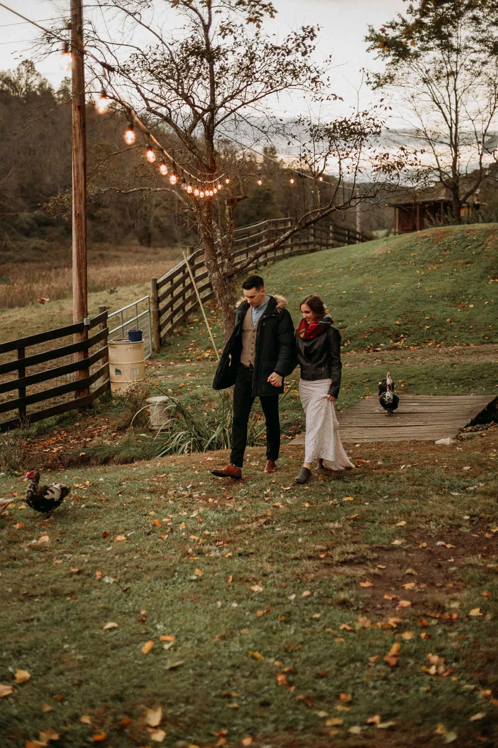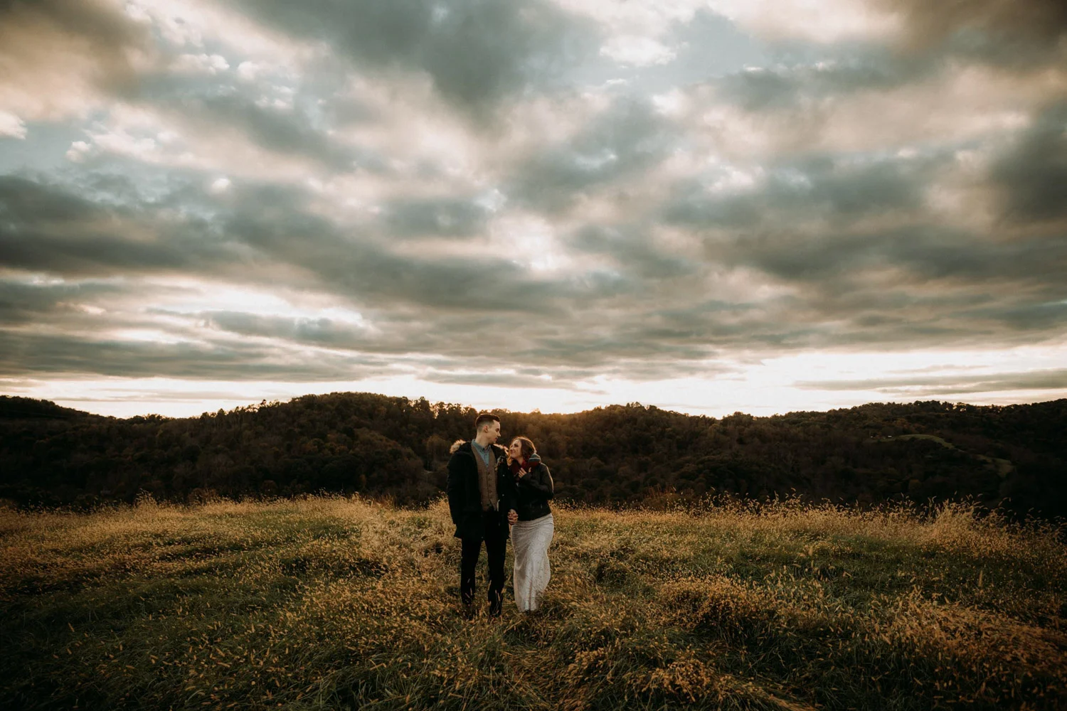On a chilly day in late October, Brendan & Allison joined their lives together in a small 1800s-era cabin in Pennsylavania’s farm country. The fog hid the surrounding hills in a shroud that seemed to resonate with expectancy. The highlander cows made all of us wonder if we were really in Scotland or Ireland rather than Pennsylvania. Despite the overcast skies and chill in the breeze, emotions were light and cheery. The air still held a heavy feeling of awe. We knew that whatever the day held, we were in for an absolute treat. Surrounded only by their closest friends and family, the intimate ceremony allowed Brendan & Allison to focus on the magnitude of their vows. Tears flowed freely. Laughs were shared in one accord. The love & seriousness of the moment was felt deeply by all present. Following the ceremony, the sun peaked out just long enough for Brendan & Allison to watch the golden light set into the hills. The little bit of warmth the last of the sun provided was soaked in together as they got a moment away from everyone else. They danced, kissed, and shared the unfading feeling of bliss before returning back to their reception and enjoying a family style dinner under string lights. The night ended with a grand sparkler exit and lively line dancing enjoyed by all. The day was burned into everyone’s hearts and minds, the specialness of the entire day never to be forgotten.