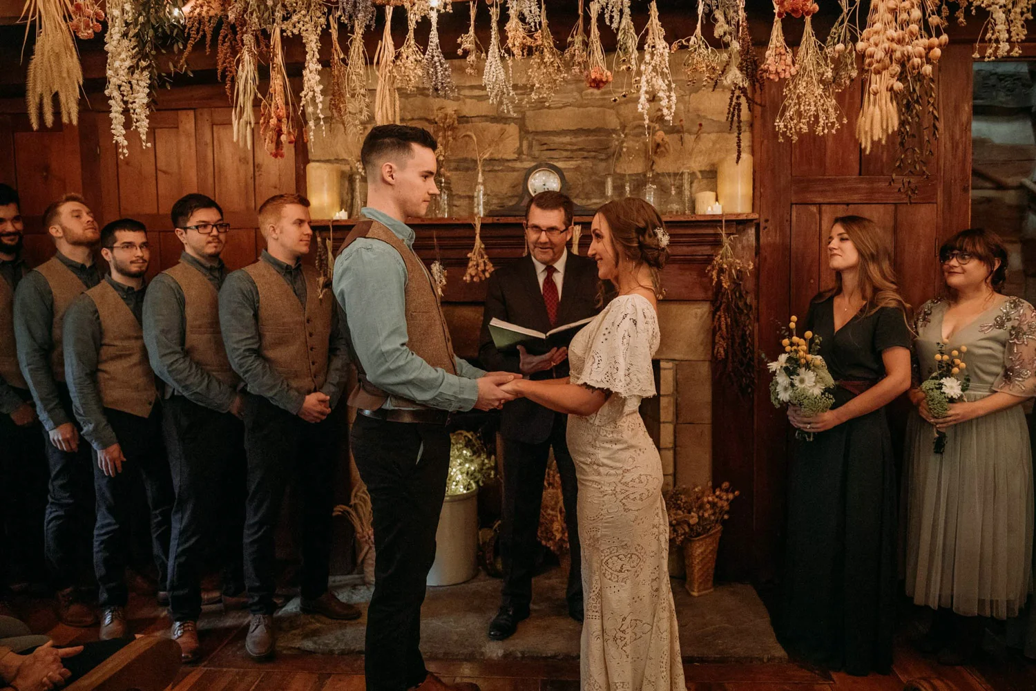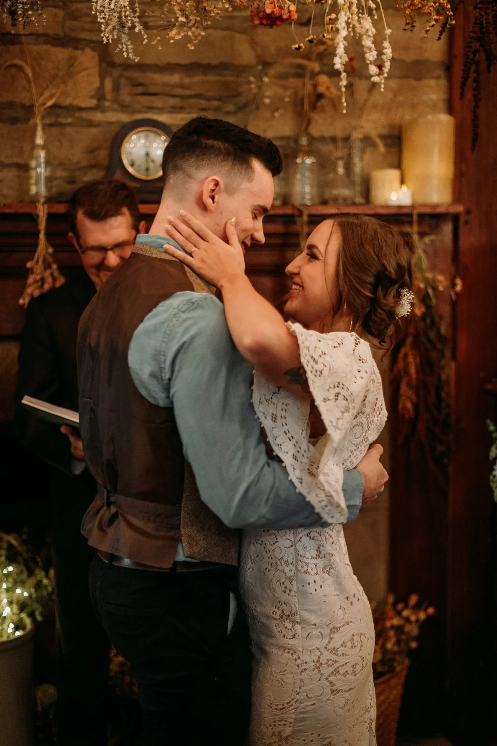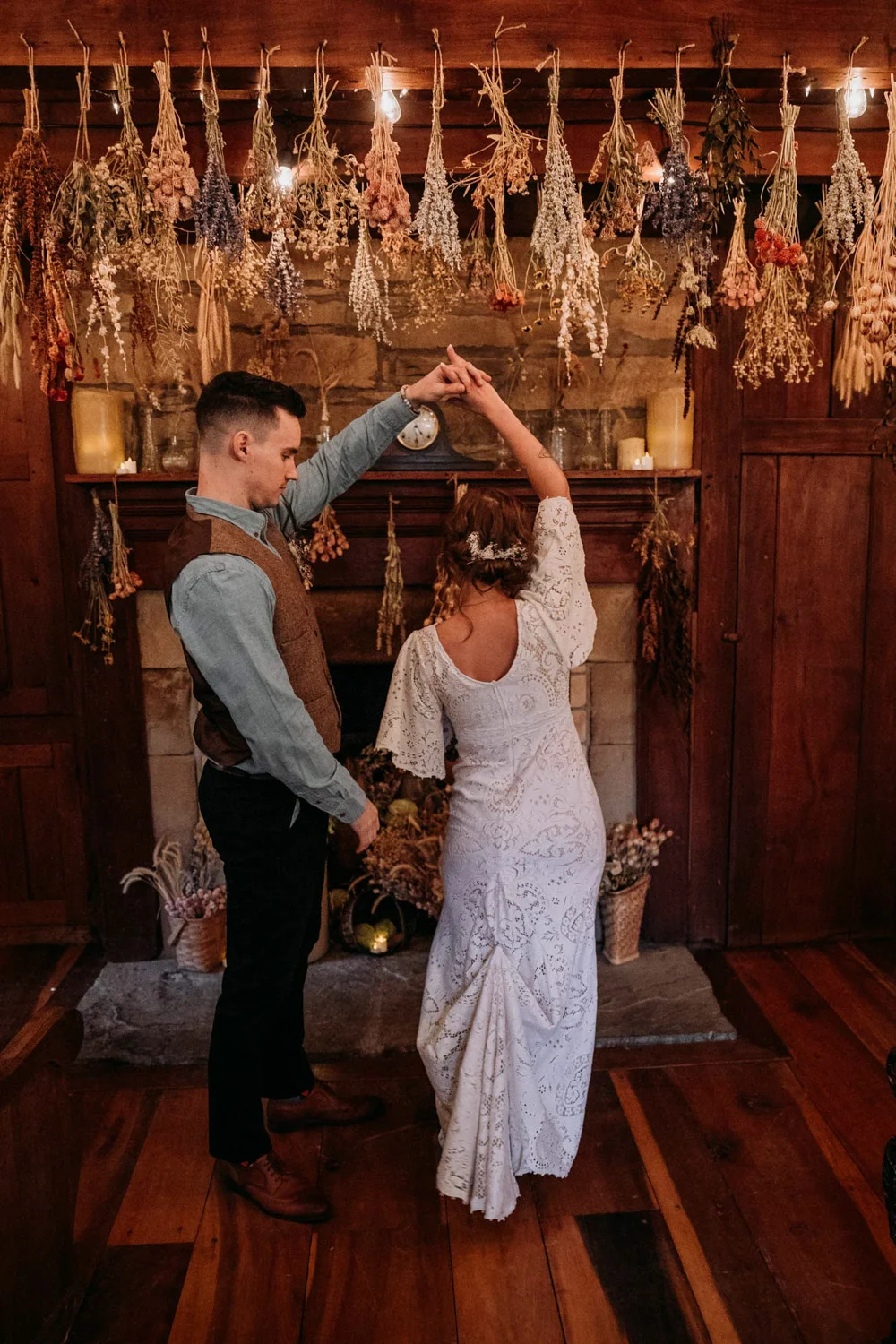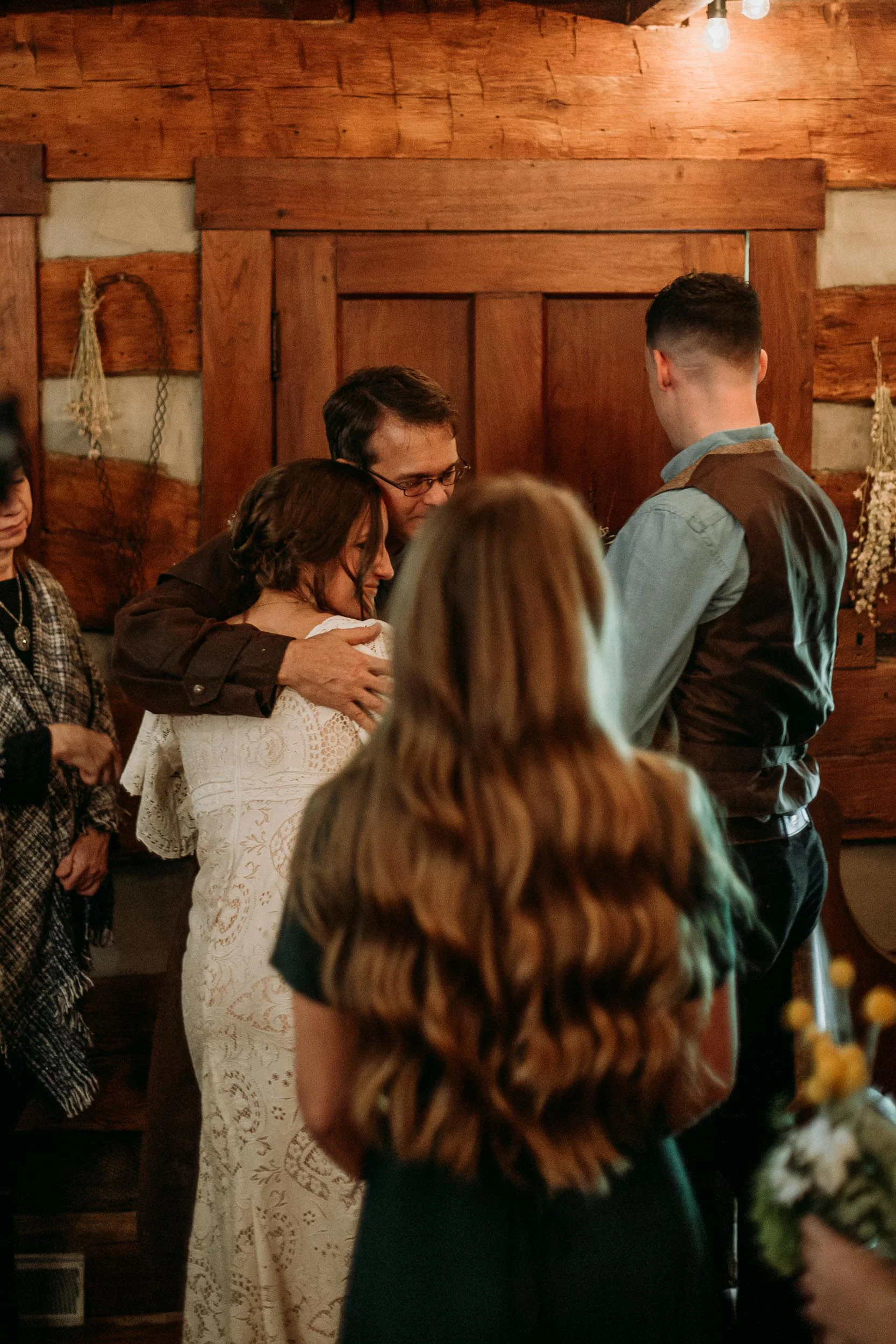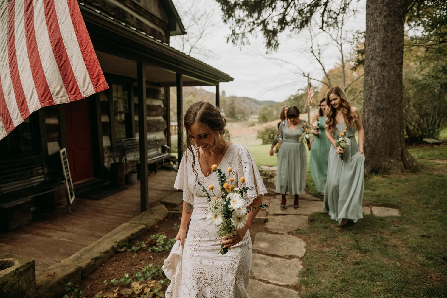 On a chilly day in late October, Brendan & Allison joined their lives together in a small 1800s-era cabin in Pennsylavania’s farm country. The fog hid the surrounding hills in a shroud that seemed to resonate with expectancy. The highlander cows made all of us wonder if we were really in Scotland or Ireland rather than Pennsylvania. Despite the overcast skies and chill in the breeze, emotions were light and cheery. The air still held a heavy feeling of awe. We knew that whatever the day held, we were in for an absolute treat. Surrounded only by their closest friends and family, the intimate ceremony allowed Brendan & Allison to focus on the magnitude of their vows. Tears flowed freely. Laughs were shared in one accord. The love & seriousness of the moment was felt deeply by all present. Following the ceremony, the sun peaked out just long enough for Brendan & Allison to watch the golden light set into the hills. The little bit of warmth the last of the sun provided was soaked in together as they got a moment away from everyone else. They danced, kissed, and shared the unfading feeling of bliss before returning back to their reception and enjoying a family style dinner under string lights. The night ended with a grand sparkler exit and lively line dancing enjoyed by all. The day was burned into everyone’s hearts and minds, the specialness of the entire day never to be forgotten.