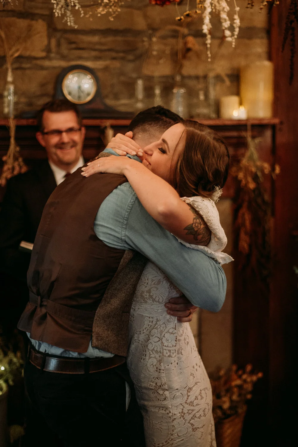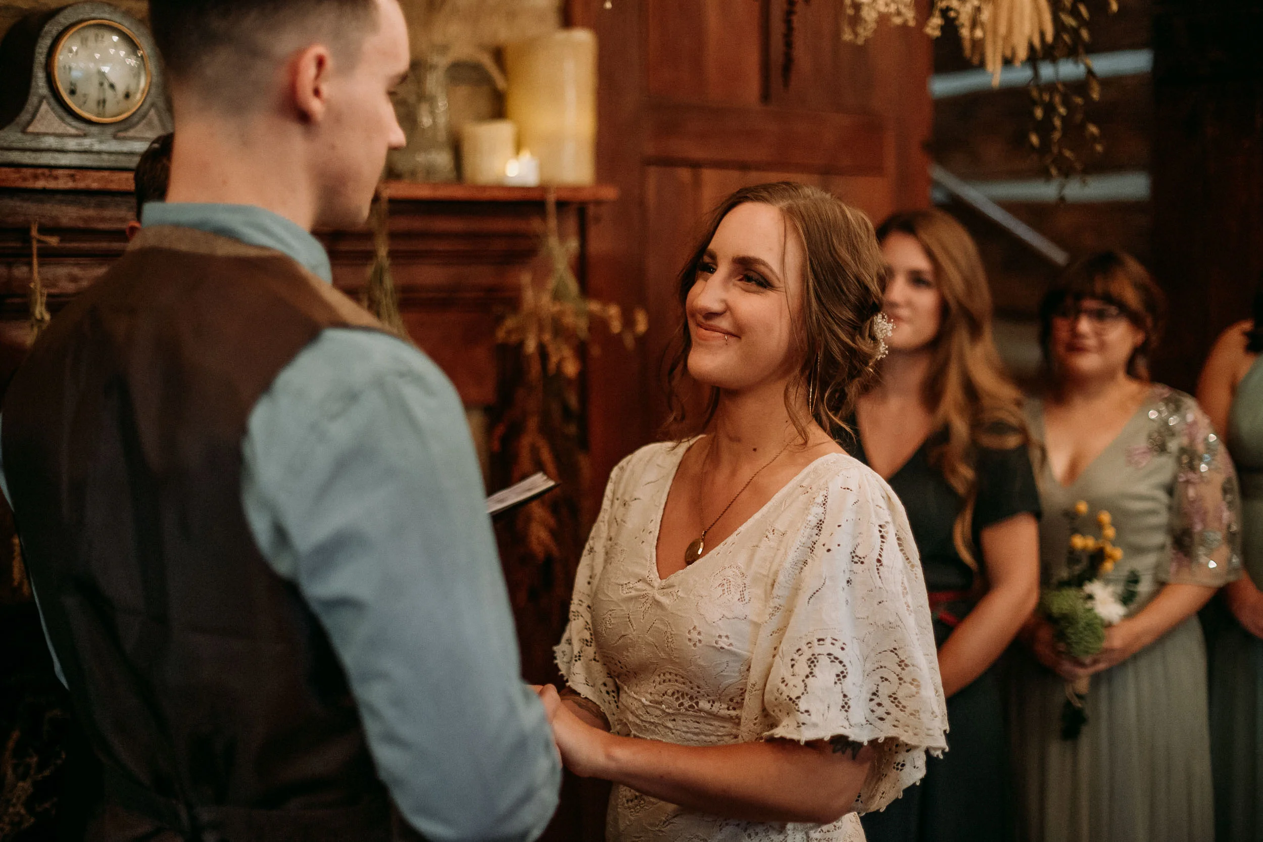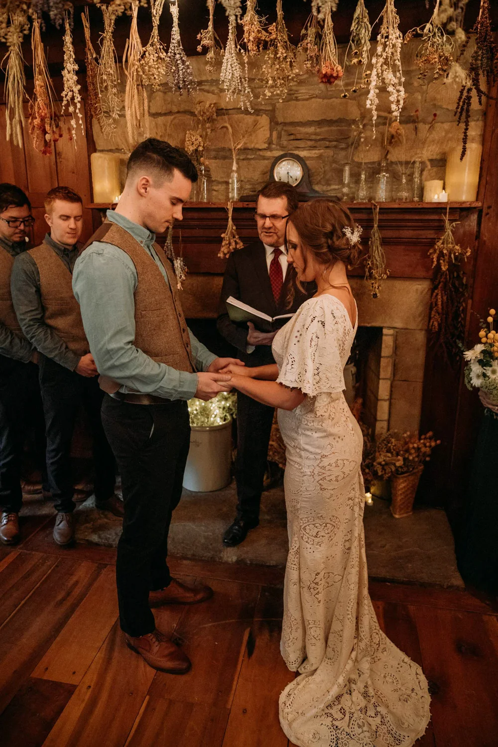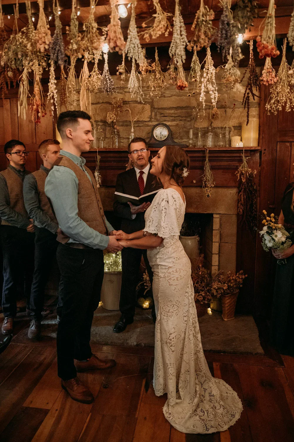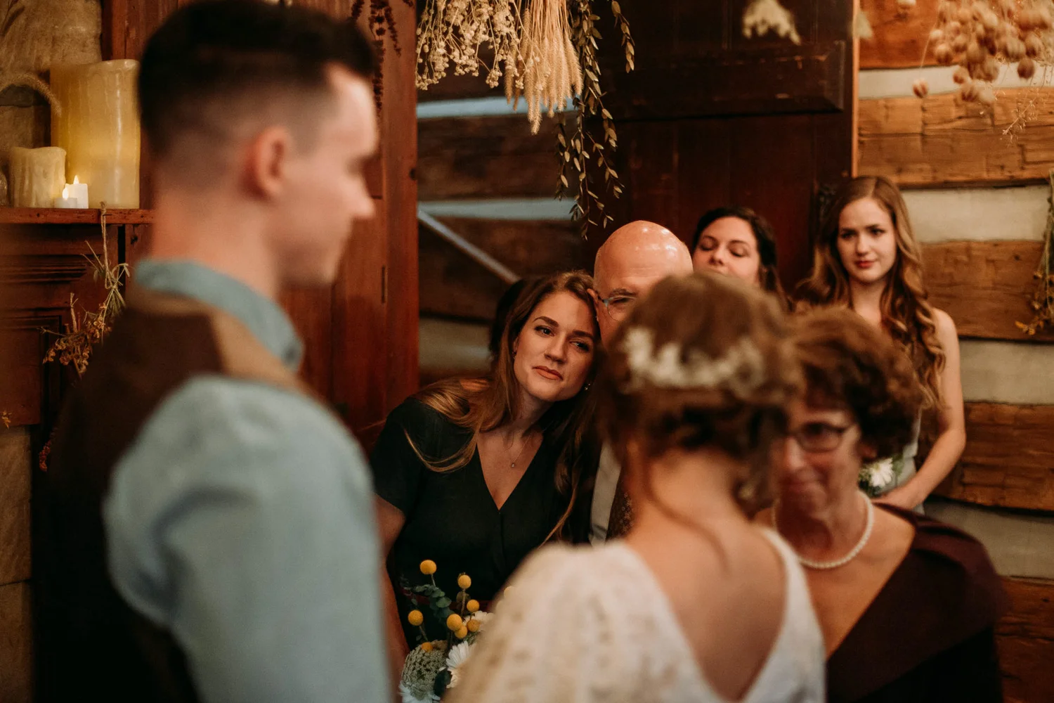 On a chilly day in late October, Brendan & Allison joined their lives together in a small 1800s-era cabin in Pennsylavania’s farm country. The fog hid the surrounding hills in a shroud that seemed to resonate with expectancy. The highlander cows made all of us wonder if we were really in Scotland or Ireland rather than Pennsylvania. Despite the overcast skies and chill in the breeze, emotions were light and cheery. The air still held a heavy feeling of awe. We knew that whatever the day held, we were in for an absolute treat. Surrounded only by their closest friends and family, the intimate ceremony allowed Brendan & Allison to focus on the magnitude of their vows. Tears flowed freely. Laughs were shared in one accord. The love & seriousness of the moment was felt deeply by all present. Following the ceremony, the sun peaked out just long enough for Brendan & Allison to watch the golden light set into the hills. The little bit of warmth the last of the sun provided was soaked in together as they got a moment away from everyone else. They danced, kissed, and shared the unfading feeling of bliss before returning back to their reception and enjoying a family style dinner under string lights. The night ended with a grand sparkler exit and lively line dancing enjoyed by all. The day was burned into everyone’s hearts and minds, the specialness of the entire day never to be forgotten.