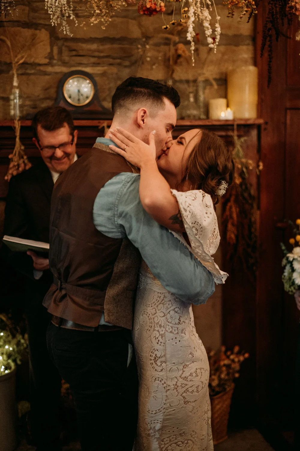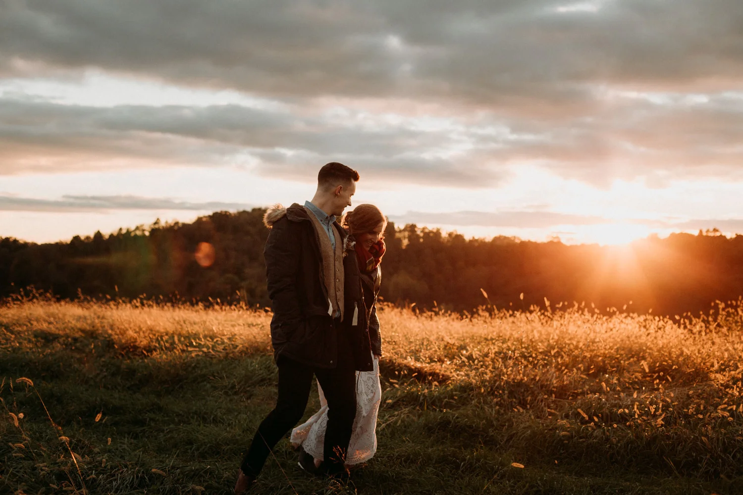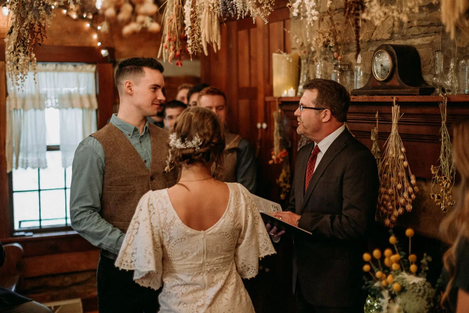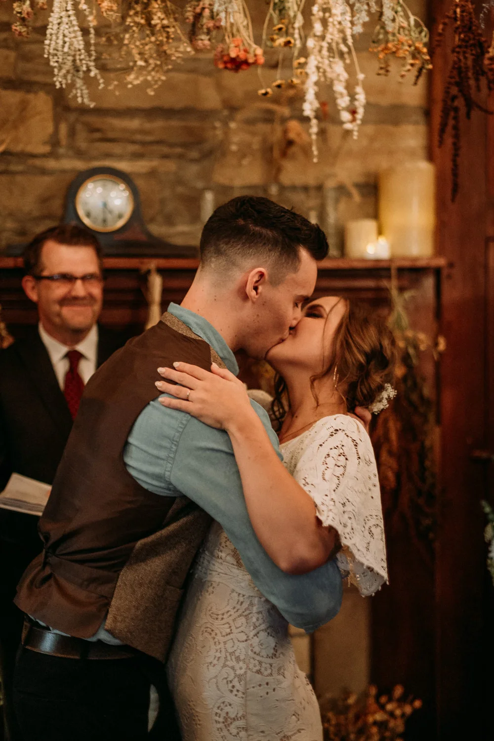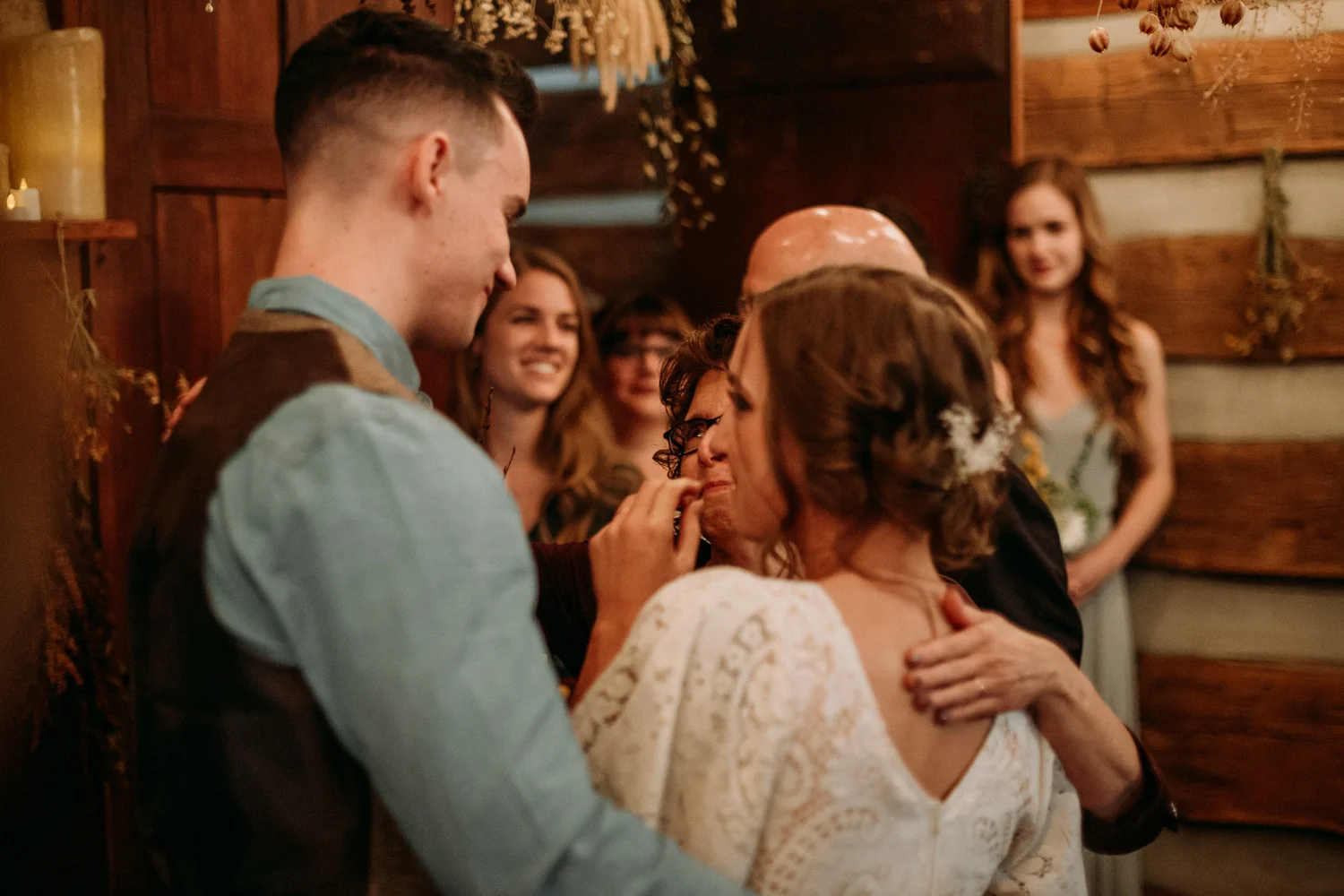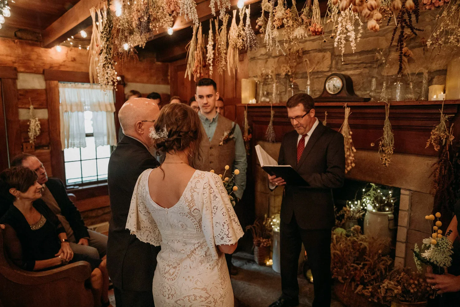 On a chilly day in late October, Brendan & Allison joined their lives together in a small 1800s-era cabin in Pennsylavania’s farm country. The fog hid the surrounding hills in a shroud that seemed to resonate with expectancy. The highlander cows made all of us wonder if we were really in Scotland or Ireland rather than Pennsylvania. Despite the overcast skies and chill in the breeze, emotions were light and cheery. The air still held a heavy feeling of awe. We knew that whatever the day held, we were in for an absolute treat. Surrounded only by their closest friends and family, the intimate ceremony allowed Brendan & Allison to focus on the magnitude of their vows. Tears flowed freely. Laughs were shared in one accord. The love & seriousness of the moment was felt deeply by all present. Following the ceremony, the sun peaked out just long enough for Brendan & Allison to watch the golden light set into the hills. The little bit of warmth the last of the sun provided was soaked in together as they got a moment away from everyone else. They danced, kissed, and shared the unfading feeling of bliss before returning back to their reception and enjoying a family style dinner under string lights. The night ended with a grand sparkler exit and lively line dancing enjoyed by all. The day was burned into everyone’s hearts and minds, the specialness of the entire day never to be forgotten.