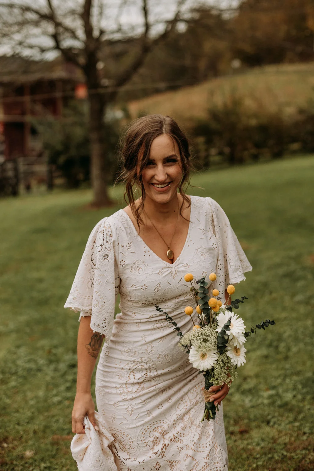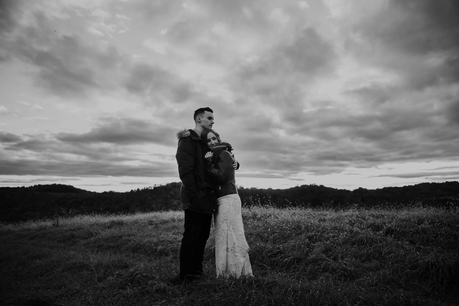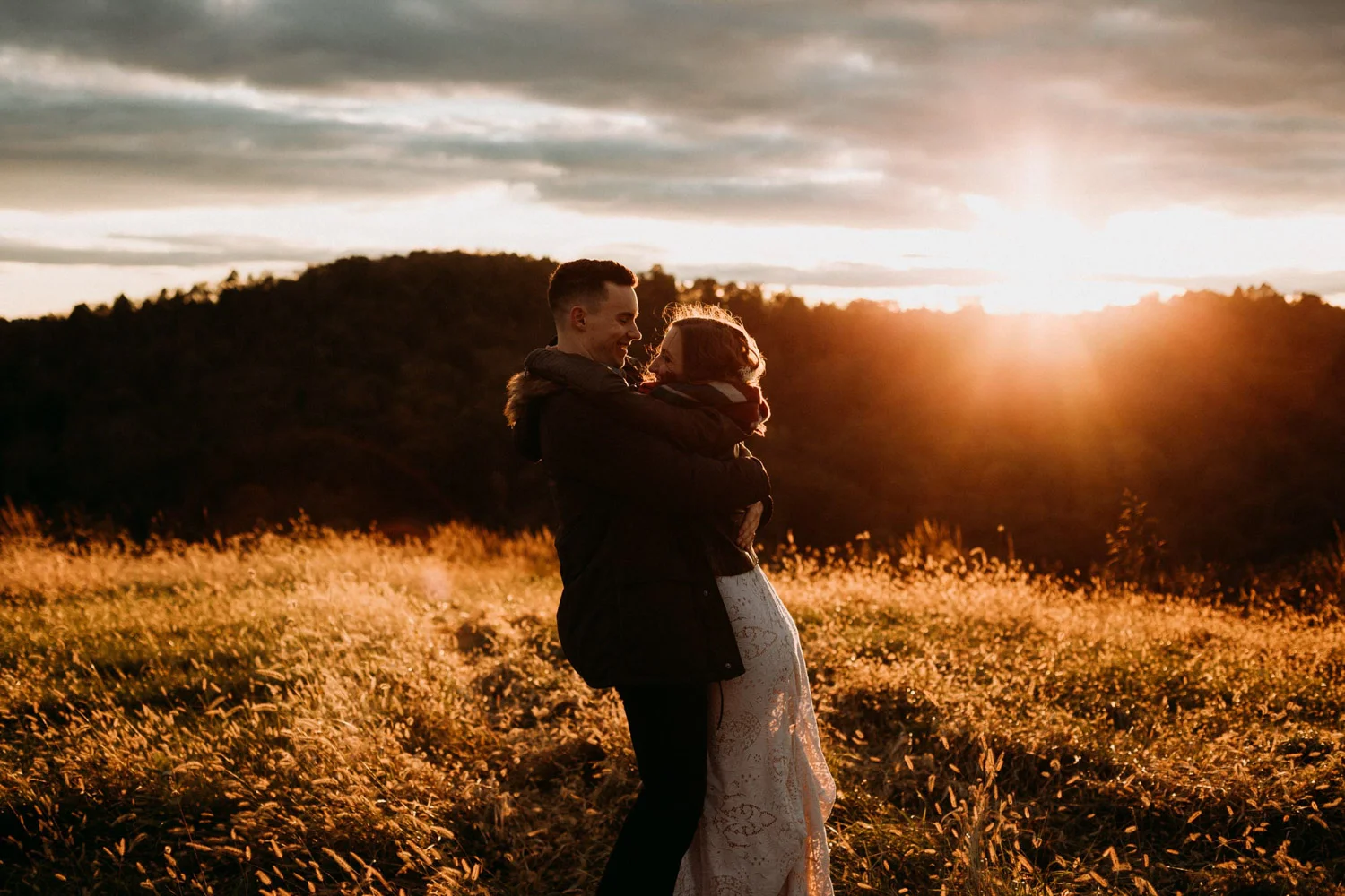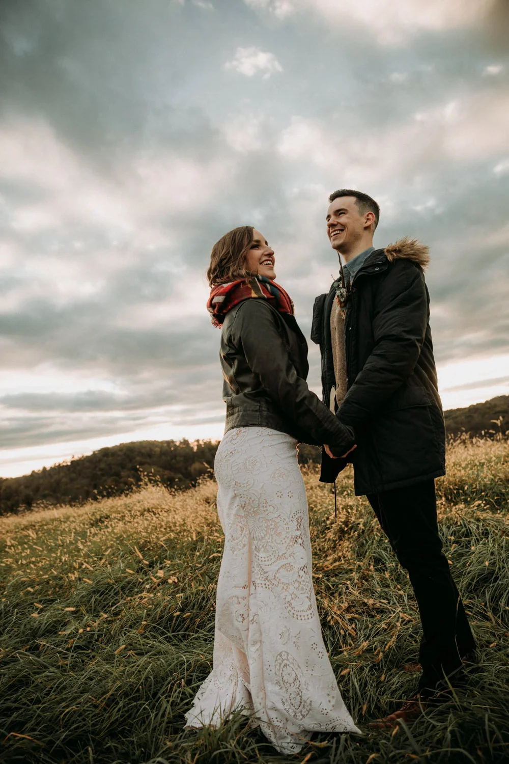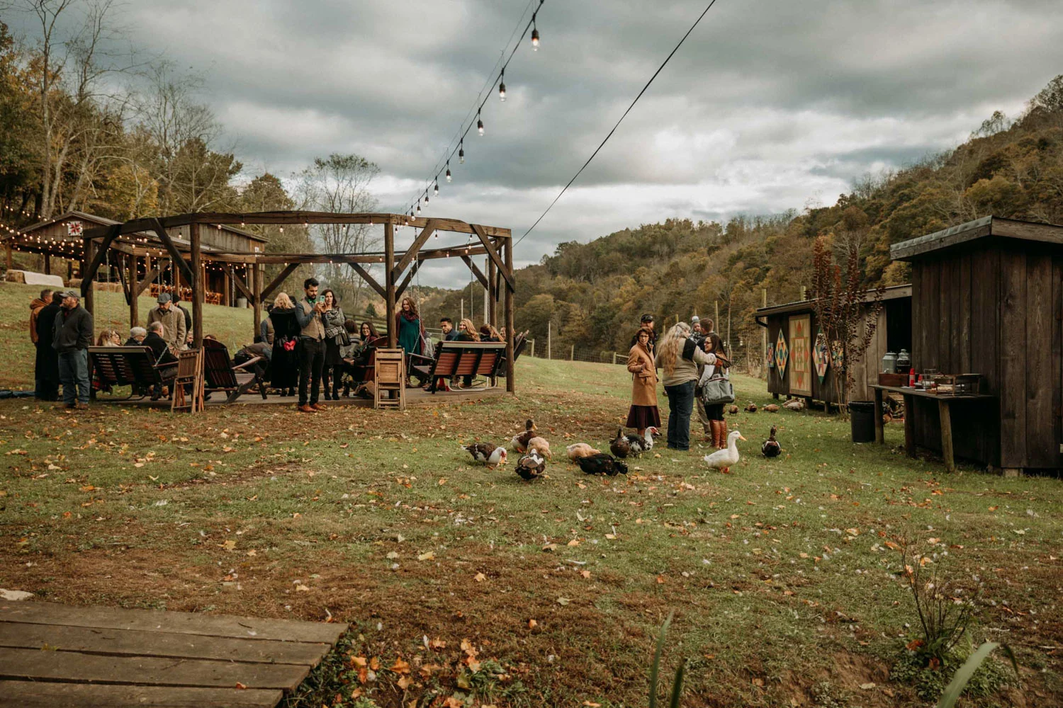 On a chilly day in late October, Brendan & Allison joined their lives together in a small 1800s-era cabin in Pennsylavania’s farm country. The fog hid the surrounding hills in a shroud that seemed to resonate with expectancy. The highlander cows made all of us wonder if we were really in Scotland or Ireland rather than Pennsylvania. Despite the overcast skies and chill in the breeze, emotions were light and cheery. The air still held a heavy feeling of awe. We knew that whatever the day held, we were in for an absolute treat. Surrounded only by their closest friends and family, the intimate ceremony allowed Brendan & Allison to focus on the magnitude of their vows. Tears flowed freely. Laughs were shared in one accord. The love & seriousness of the moment was felt deeply by all present. Following the ceremony, the sun peaked out just long enough for Brendan & Allison to watch the golden light set into the hills. The little bit of warmth the last of the sun provided was soaked in together as they got a moment away from everyone else. They danced, kissed, and shared the unfading feeling of bliss before returning back to their reception and enjoying a family style dinner under string lights. The night ended with a grand sparkler exit and lively line dancing enjoyed by all. The day was burned into everyone’s hearts and minds, the specialness of the entire day never to be forgotten.