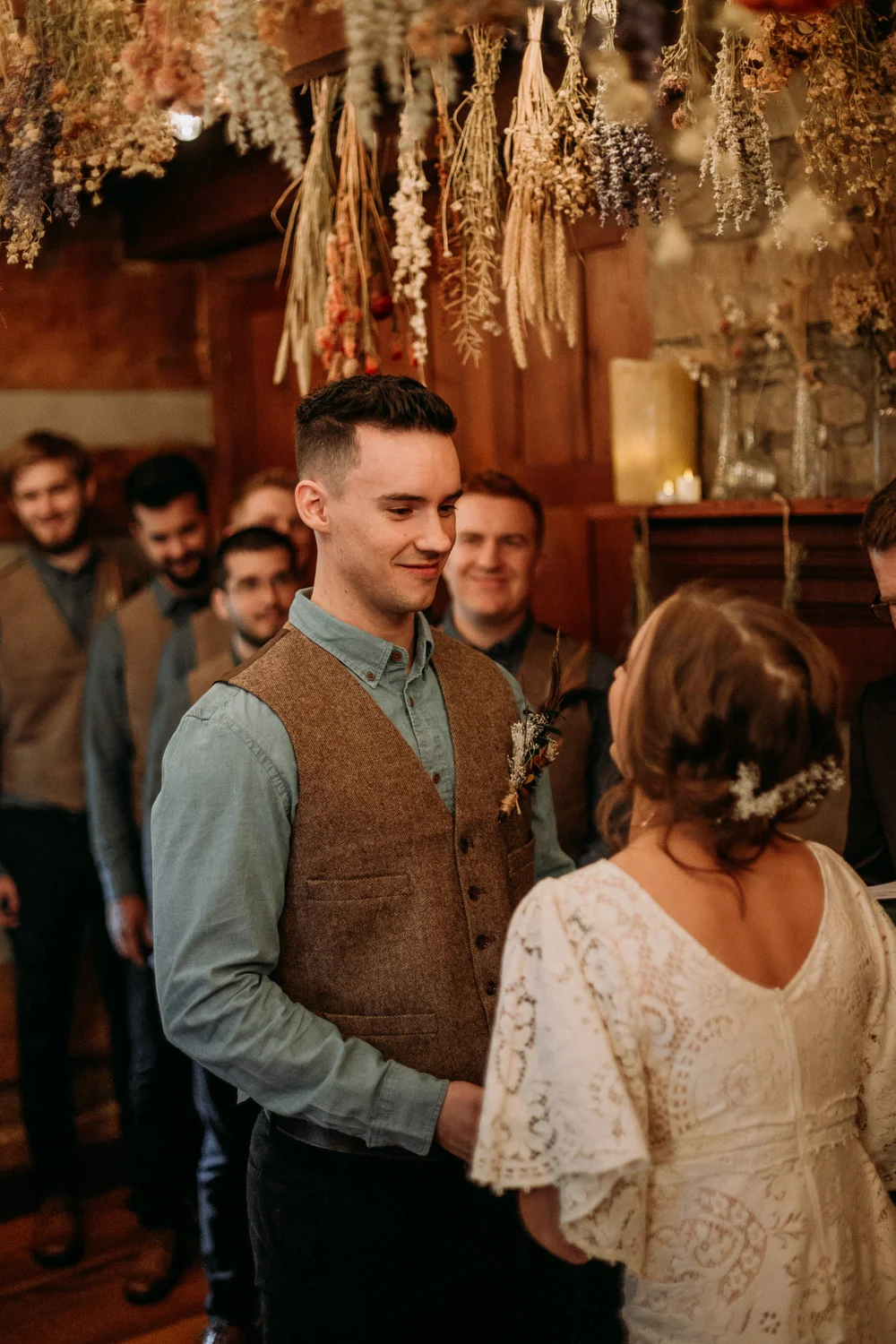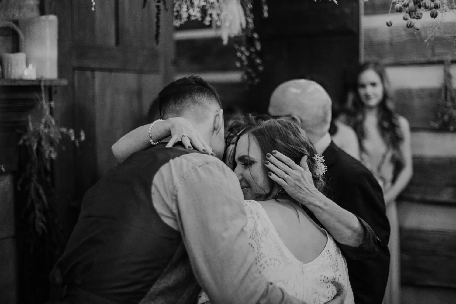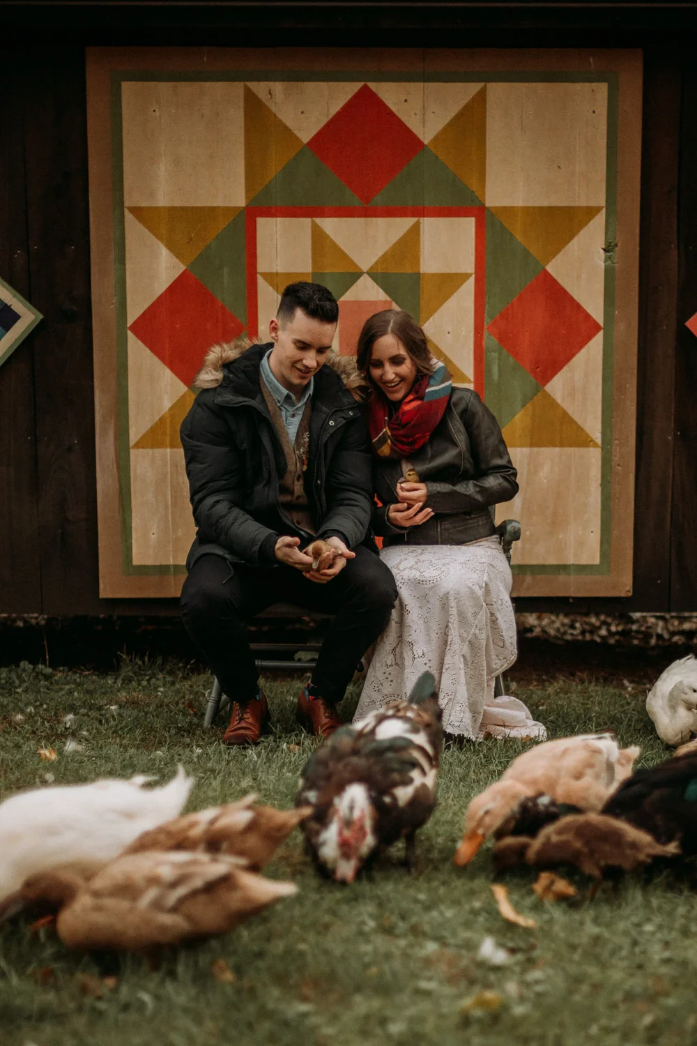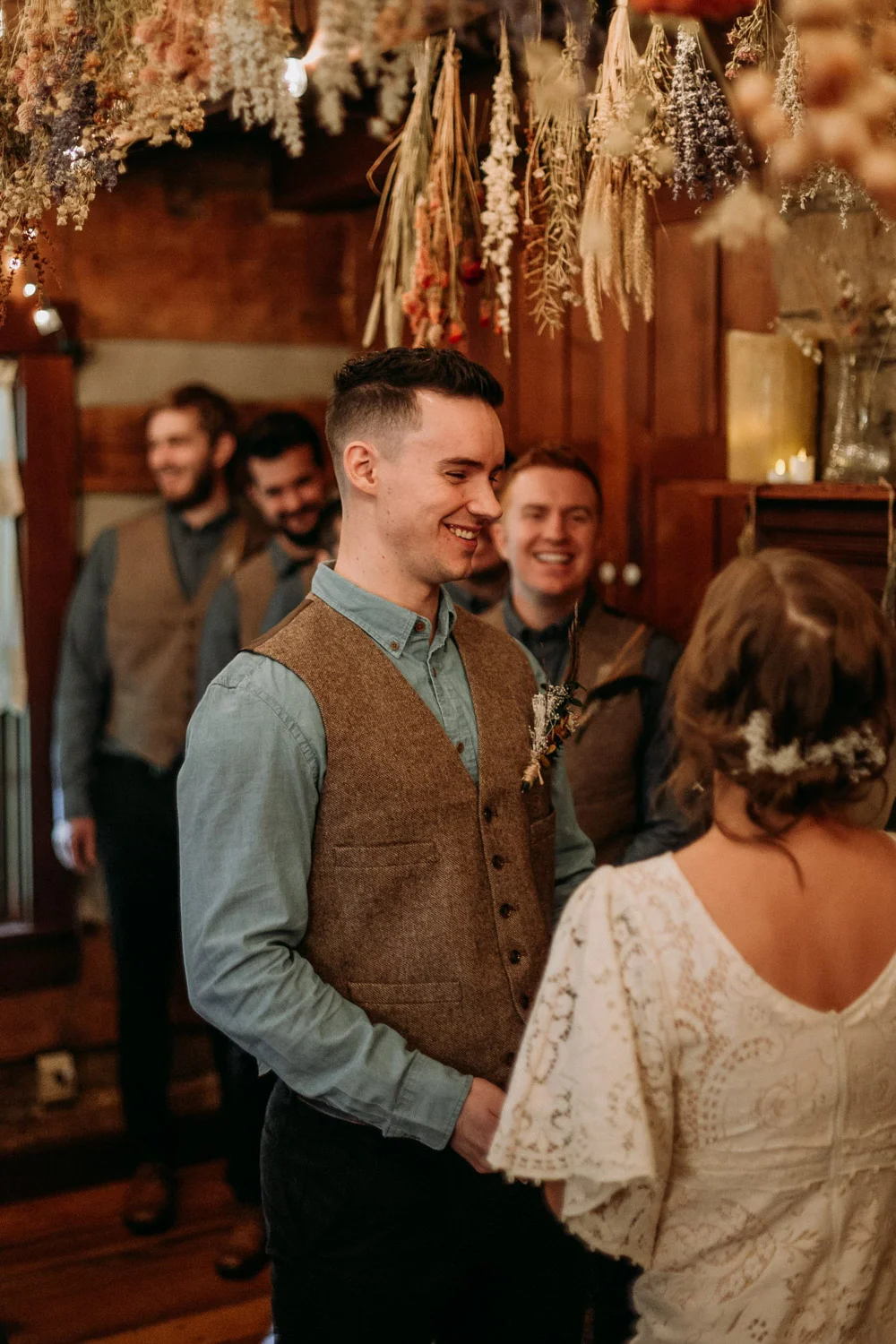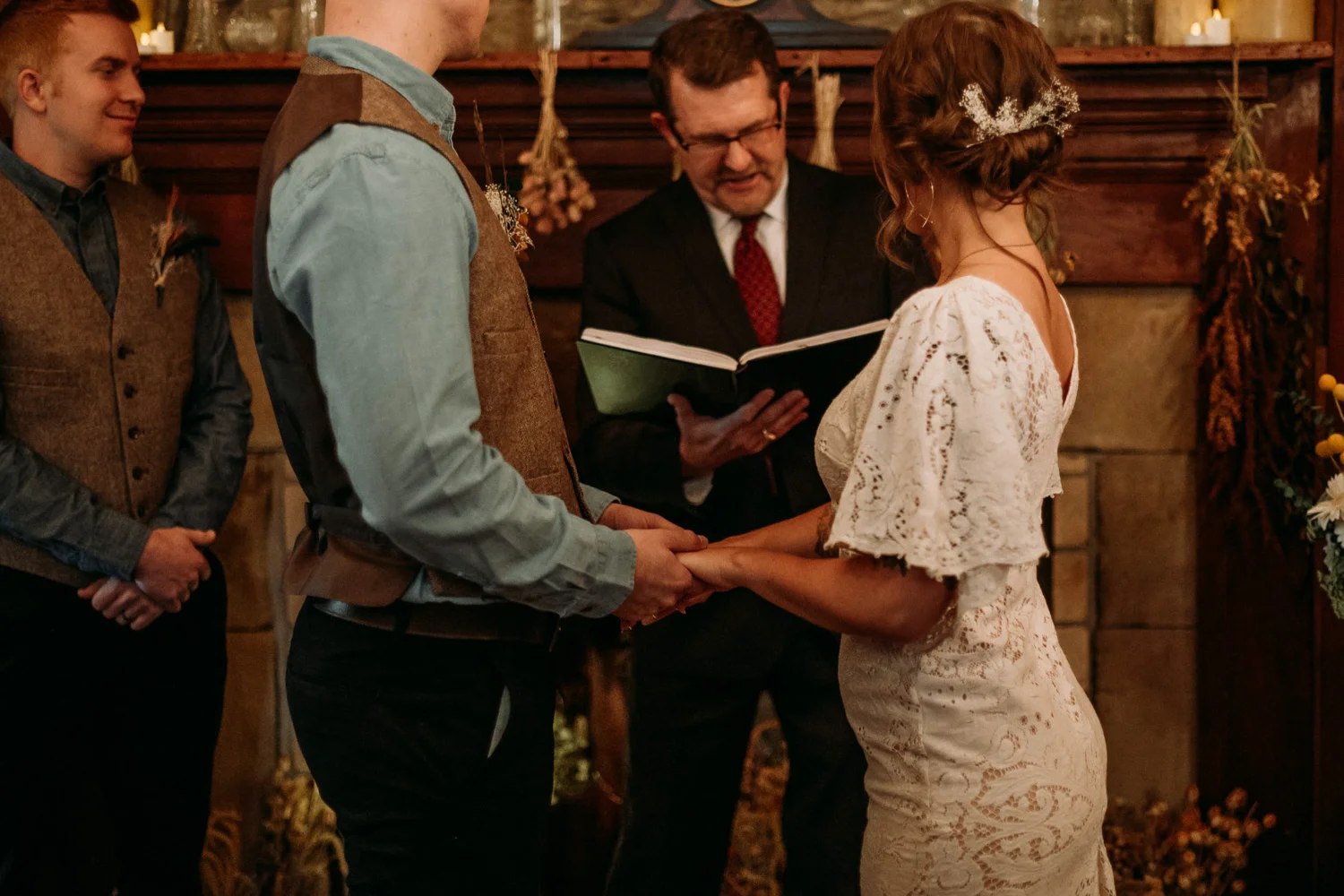 On a chilly day in late October, Brendan & Allison joined their lives together in a small 1800s-era cabin in Pennsylavania’s farm country. The fog hid the surrounding hills in a shroud that seemed to resonate with expectancy. The highlander cows made all of us wonder if we were really in Scotland or Ireland rather than Pennsylvania. Despite the overcast skies and chill in the breeze, emotions were light and cheery. The air still held a heavy feeling of awe. We knew that whatever the day held, we were in for an absolute treat. Surrounded only by their closest friends and family, the intimate ceremony allowed Brendan & Allison to focus on the magnitude of their vows. Tears flowed freely. Laughs were shared in one accord. The love & seriousness of the moment was felt deeply by all present. Following the ceremony, the sun peaked out just long enough for Brendan & Allison to watch the golden light set into the hills. The little bit of warmth the last of the sun provided was soaked in together as they got a moment away from everyone else. They danced, kissed, and shared the unfading feeling of bliss before returning back to their reception and enjoying a family style dinner under string lights. The night ended with a grand sparkler exit and lively line dancing enjoyed by all. The day was burned into everyone’s hearts and minds, the specialness of the entire day never to be forgotten.