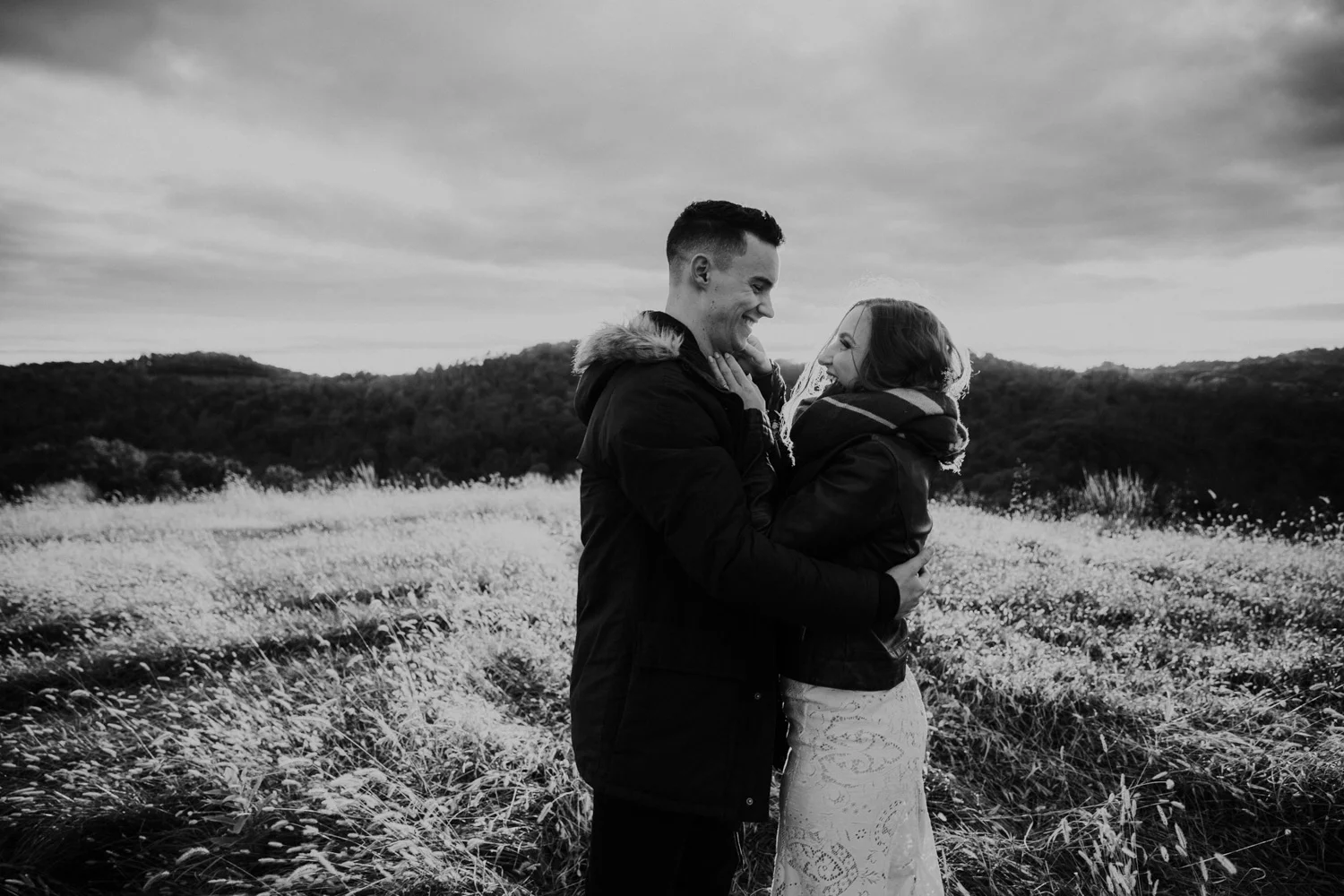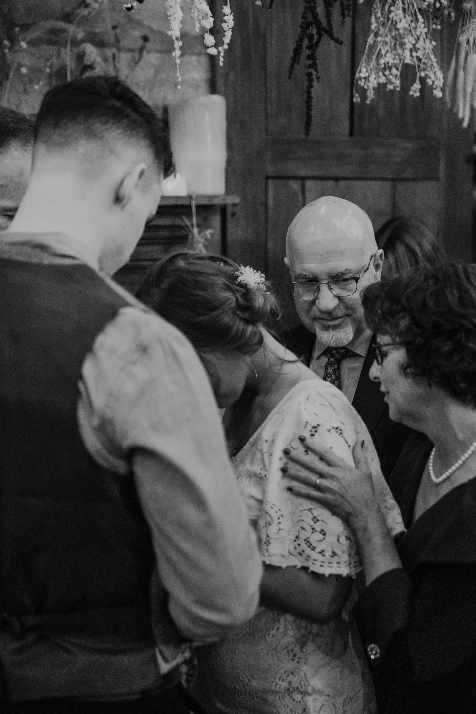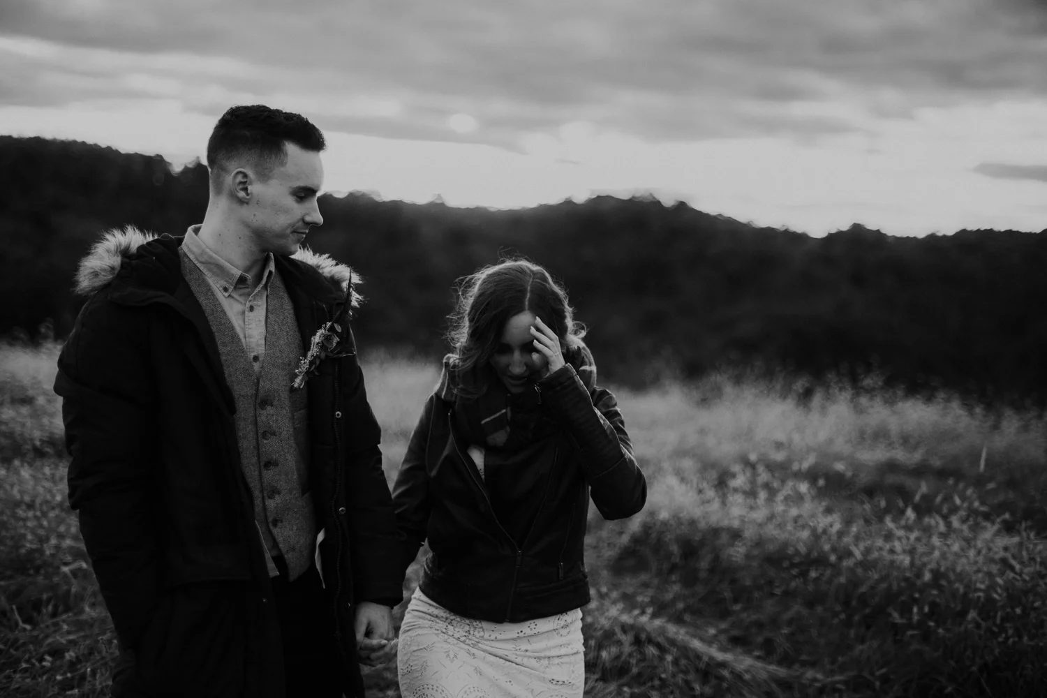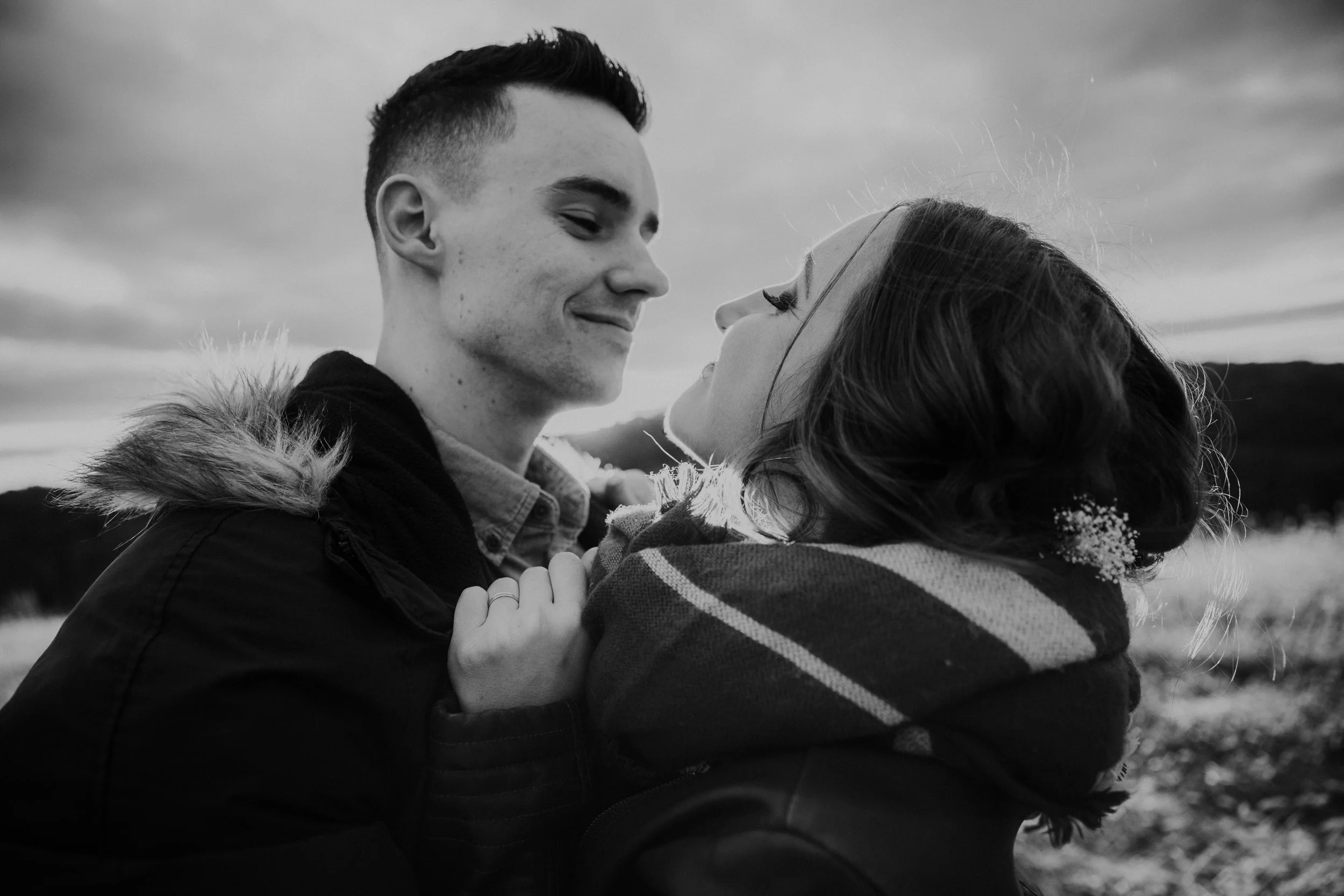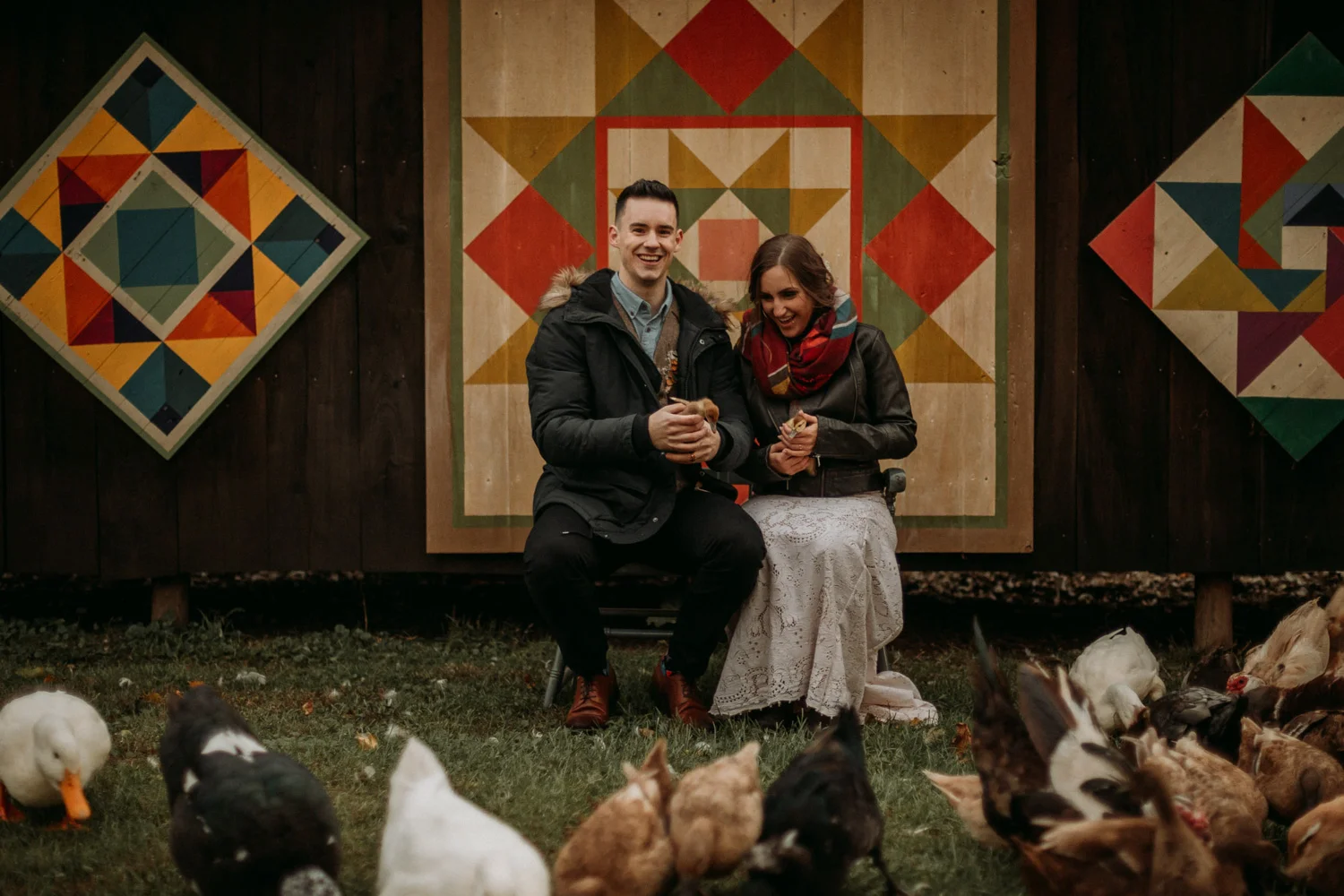 On a chilly day in late October, Brendan & Allison joined their lives together in a small 1800s-era cabin in Pennsylavania’s farm country. The fog hid the surrounding hills in a shroud that seemed to resonate with expectancy. The highlander cows made all of us wonder if we were really in Scotland or Ireland rather than Pennsylvania. Despite the overcast skies and chill in the breeze, emotions were light and cheery. The air still held a heavy feeling of awe. We knew that whatever the day held, we were in for an absolute treat. Surrounded only by their closest friends and family, the intimate ceremony allowed Brendan & Allison to focus on the magnitude of their vows. Tears flowed freely. Laughs were shared in one accord. The love & seriousness of the moment was felt deeply by all present. Following the ceremony, the sun peaked out just long enough for Brendan & Allison to watch the golden light set into the hills. The little bit of warmth the last of the sun provided was soaked in together as they got a moment away from everyone else. They danced, kissed, and shared the unfading feeling of bliss before returning back to their reception and enjoying a family style dinner under string lights. The night ended with a grand sparkler exit and lively line dancing enjoyed by all. The day was burned into everyone’s hearts and minds, the specialness of the entire day never to be forgotten.