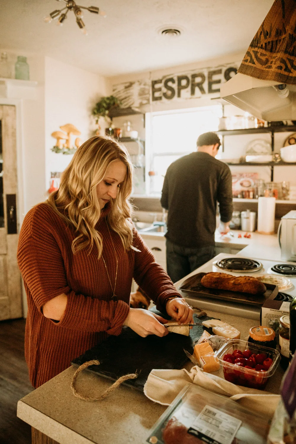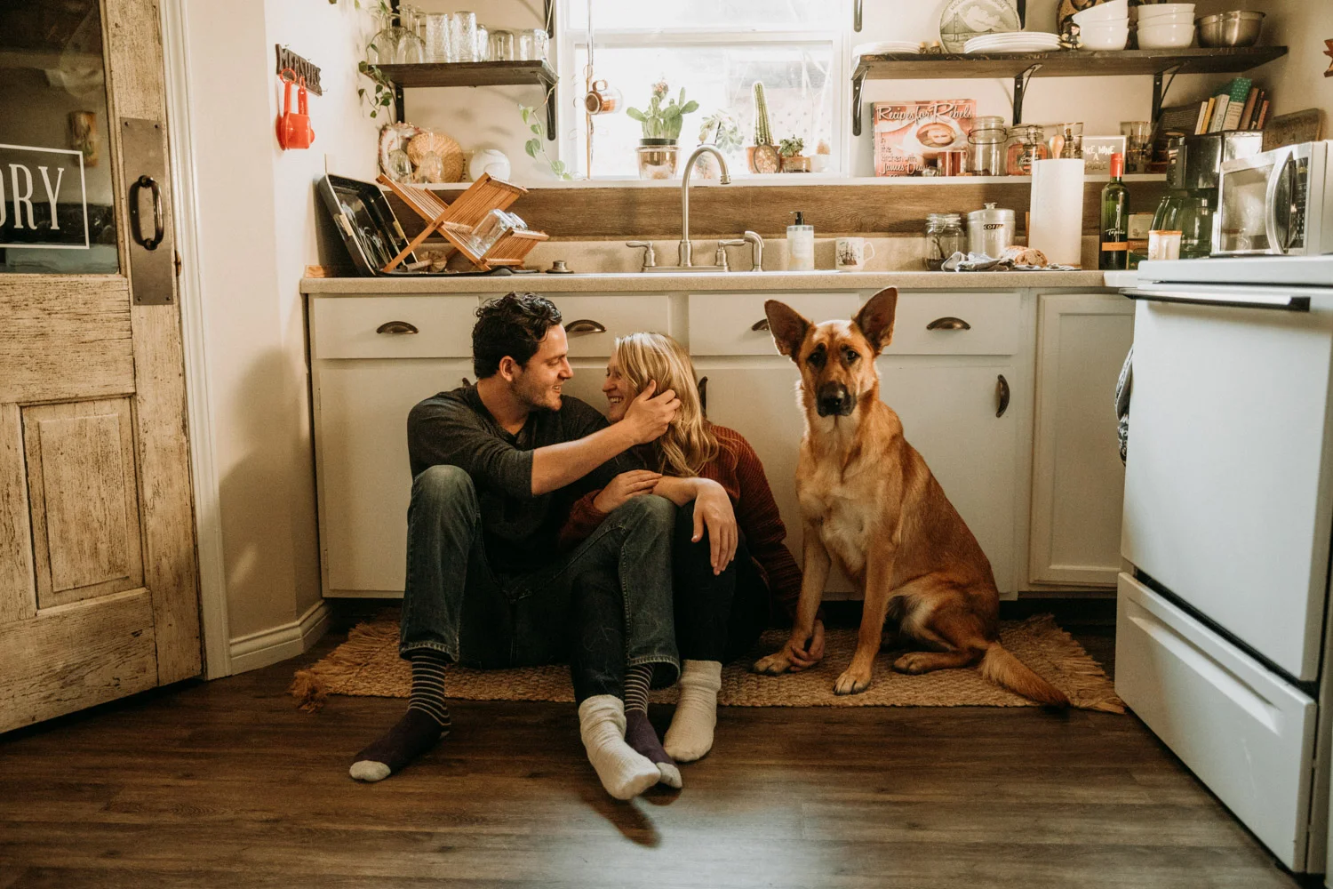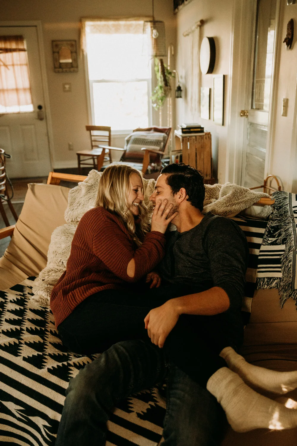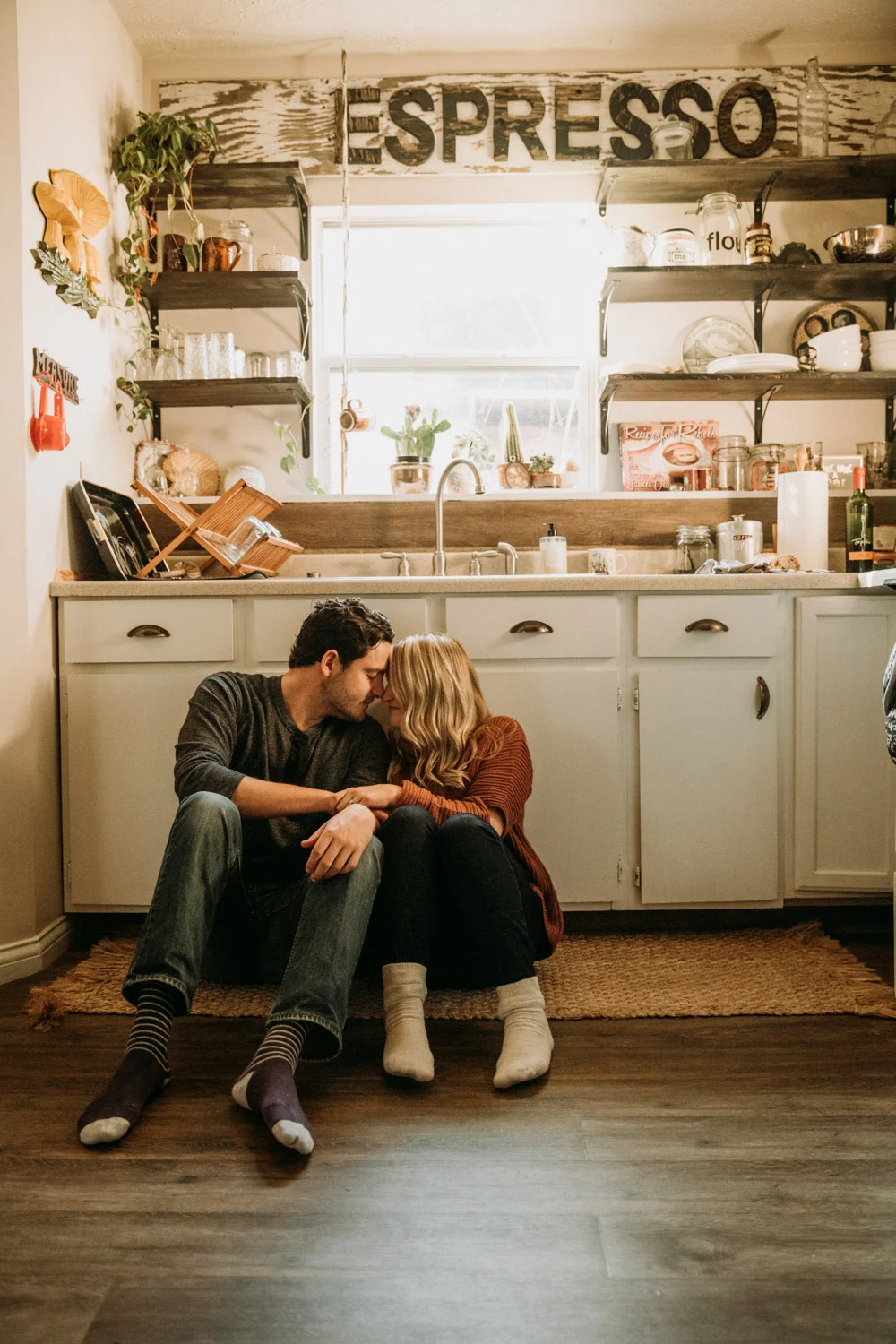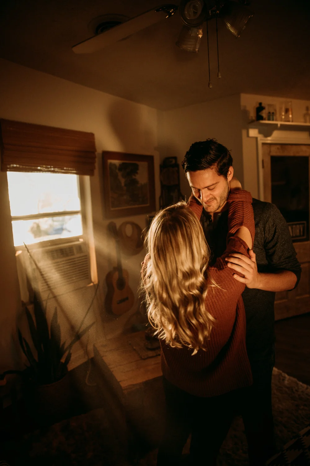 Katie & Evan met at a cookout and bonded over Katie’s pup, Java. At the time Evan was interested in getting a German Shepherd himself. He never had to though because he and Katie fell in love, and now they’re getting married. A normal evening for these two may very well include crafting a beautiful charcuterie together with Dean Martin playing in the background and Java giving them the best practiced puppy eye look. It was all recreated for this lifestyle engagement shoot. Real life records were played, coffee was brewed, charcuteries were crafted, and cuddles were enjoyed all while Katie & Evan reflected on the past, dreamed about their forever together, and savored the present. You would think it was straight out of a movie. But it was real.