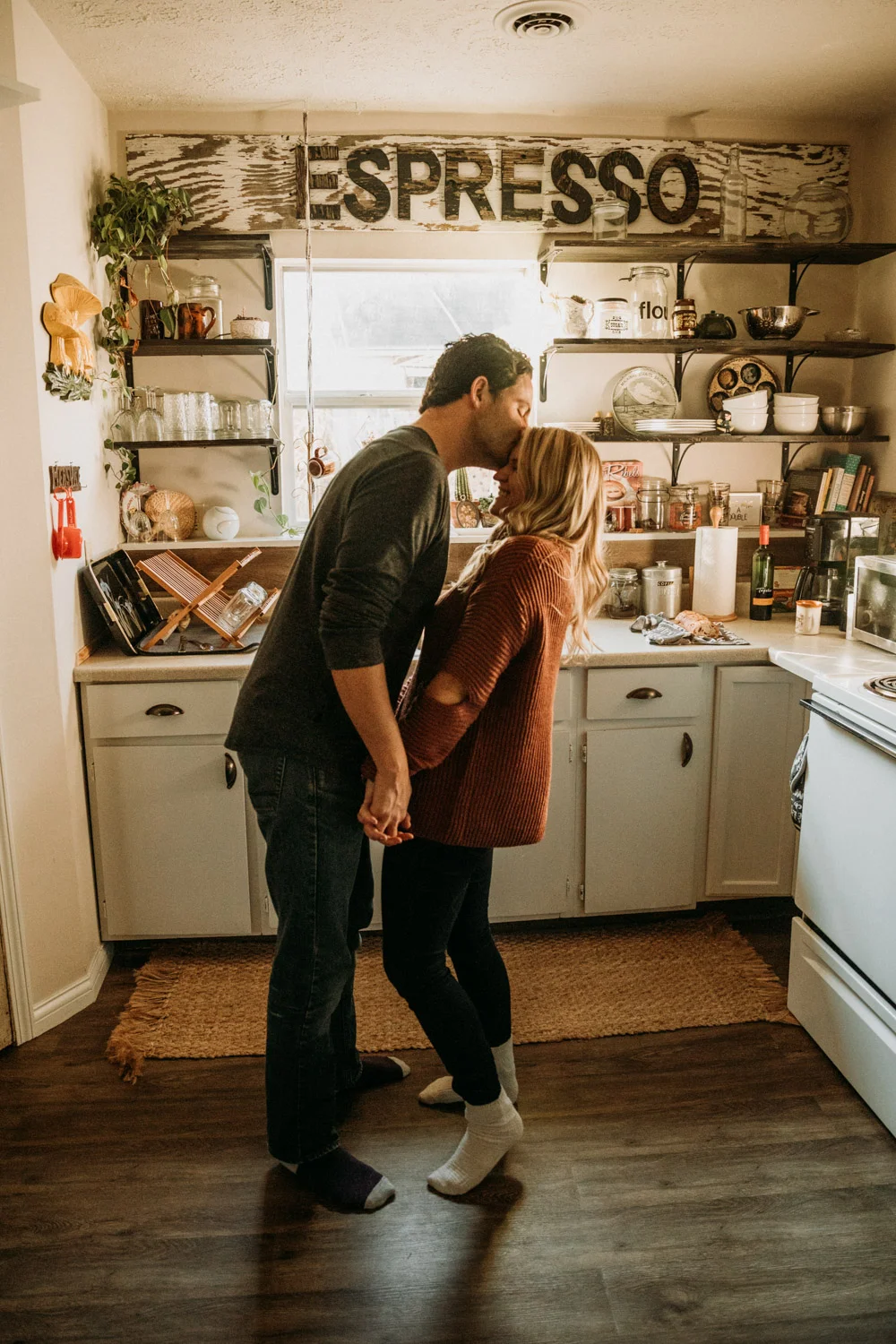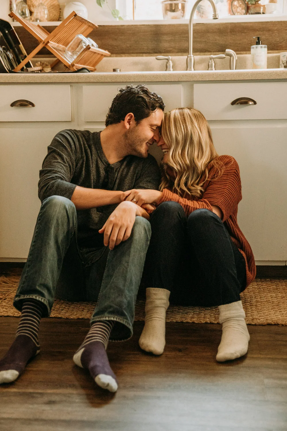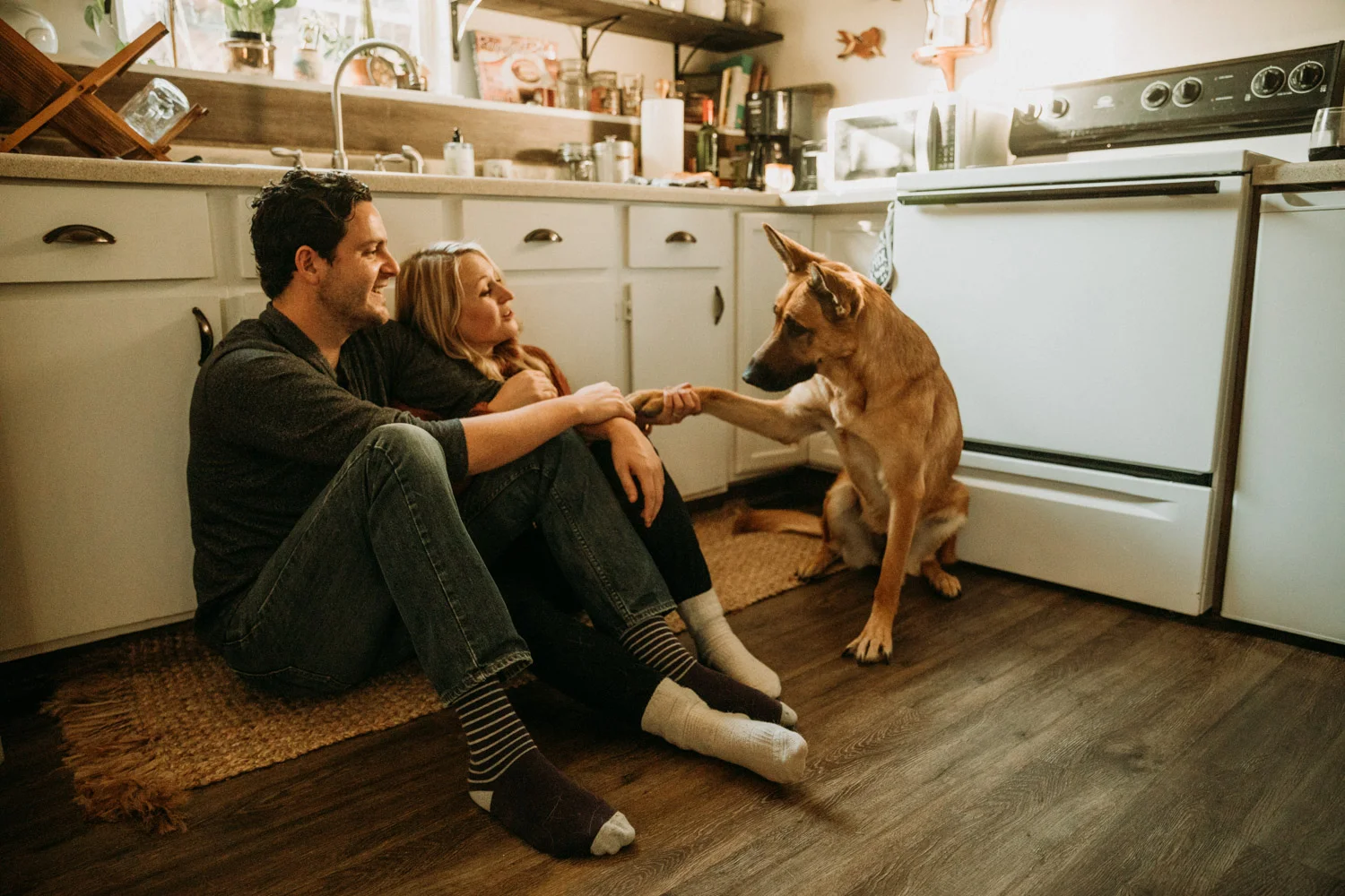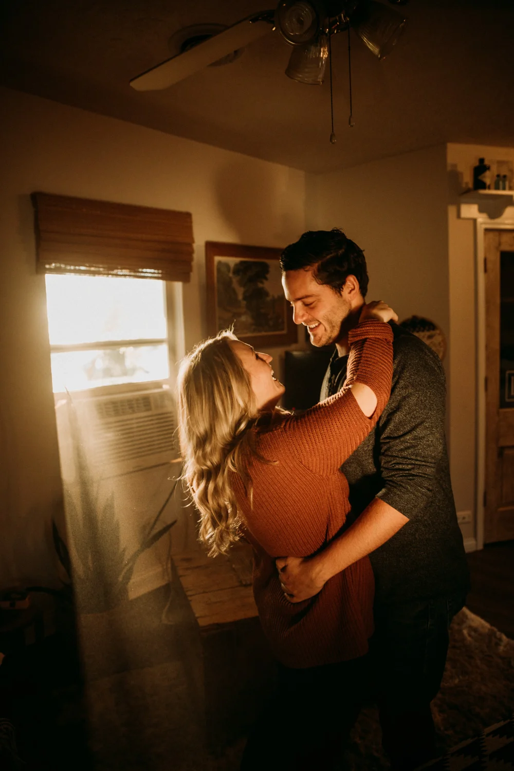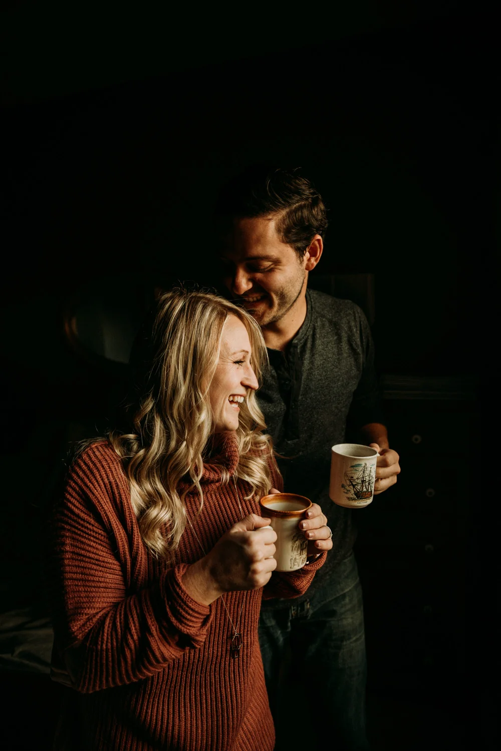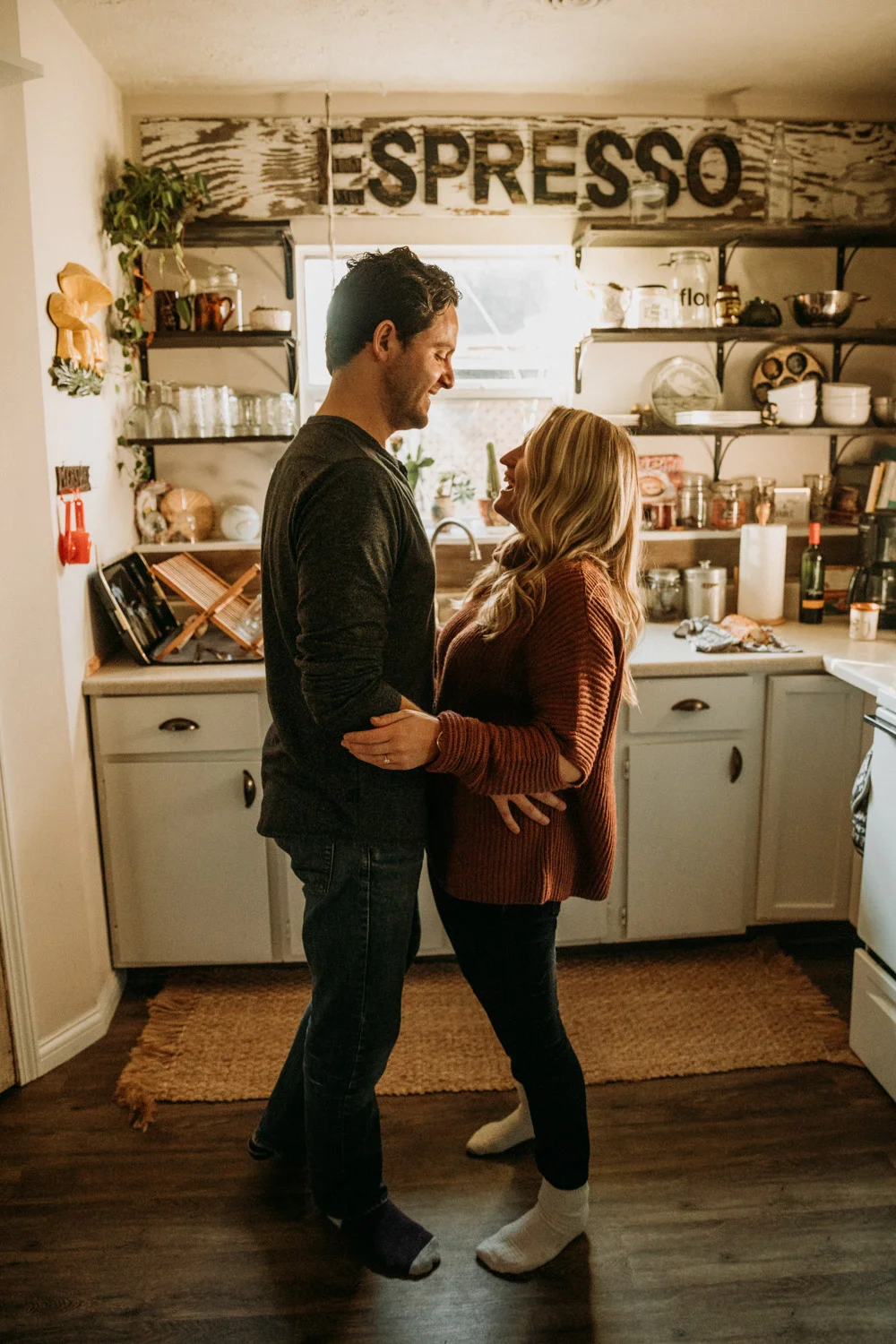 Katie & Evan met at a cookout and bonded over Katie’s pup, Java. At the time Evan was interested in getting a German Shepherd himself. He never had to though because he and Katie fell in love, and now they’re getting married. A normal evening for these two may very well include crafting a beautiful charcuterie together with Dean Martin playing in the background and Java giving them the best practiced puppy eye look. It was all recreated for this lifestyle engagement shoot. Real life records were played, coffee was brewed, charcuteries were crafted, and cuddles were enjoyed all while Katie & Evan reflected on the past, dreamed about their forever together, and savored the present. You would think it was straight out of a movie. But it was real.