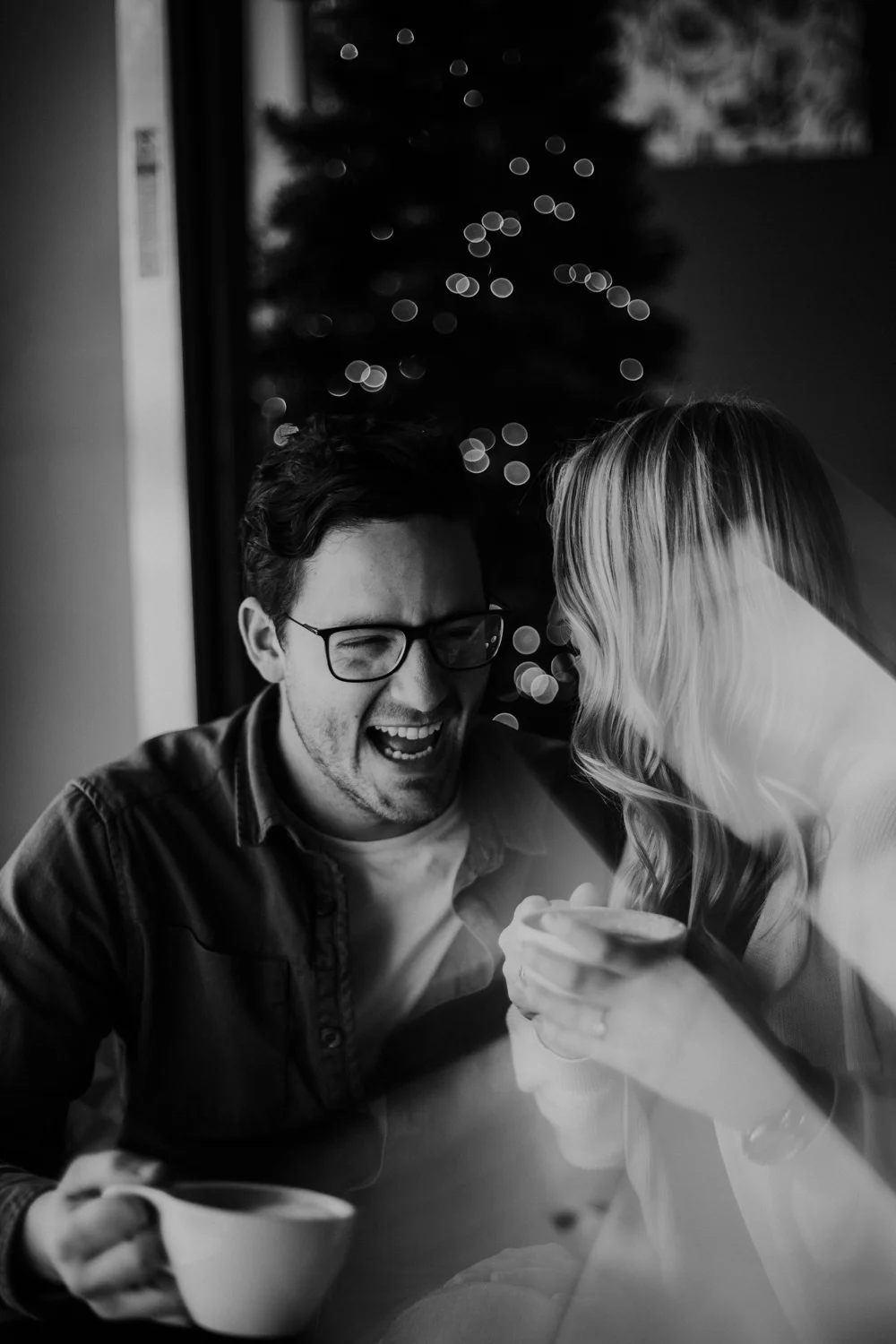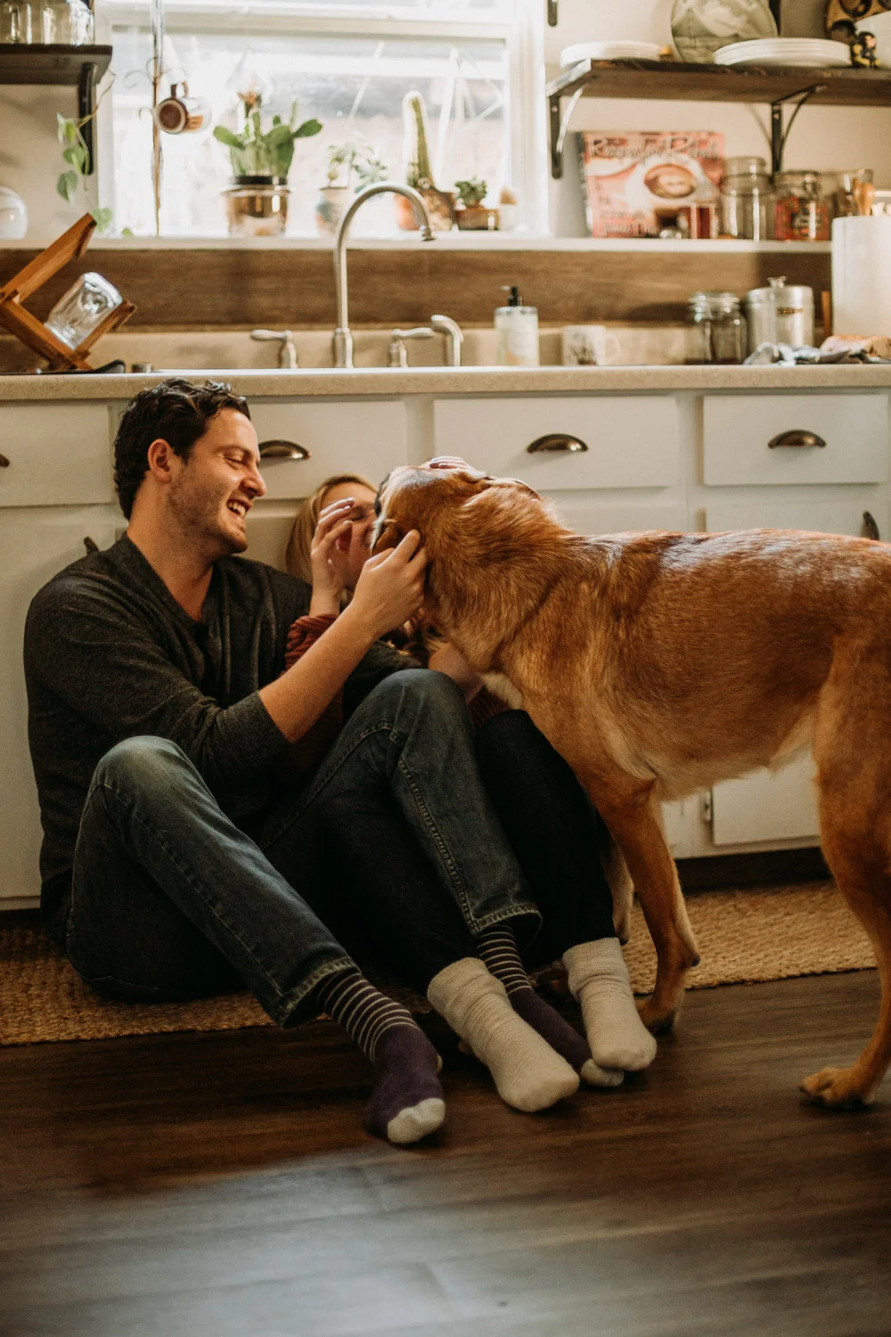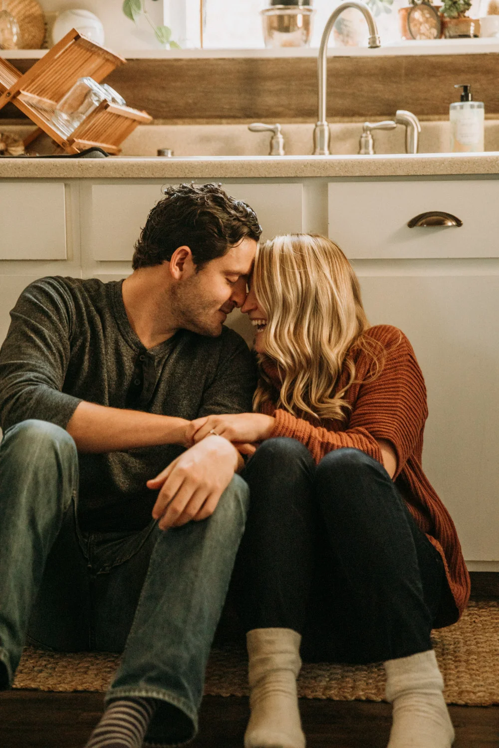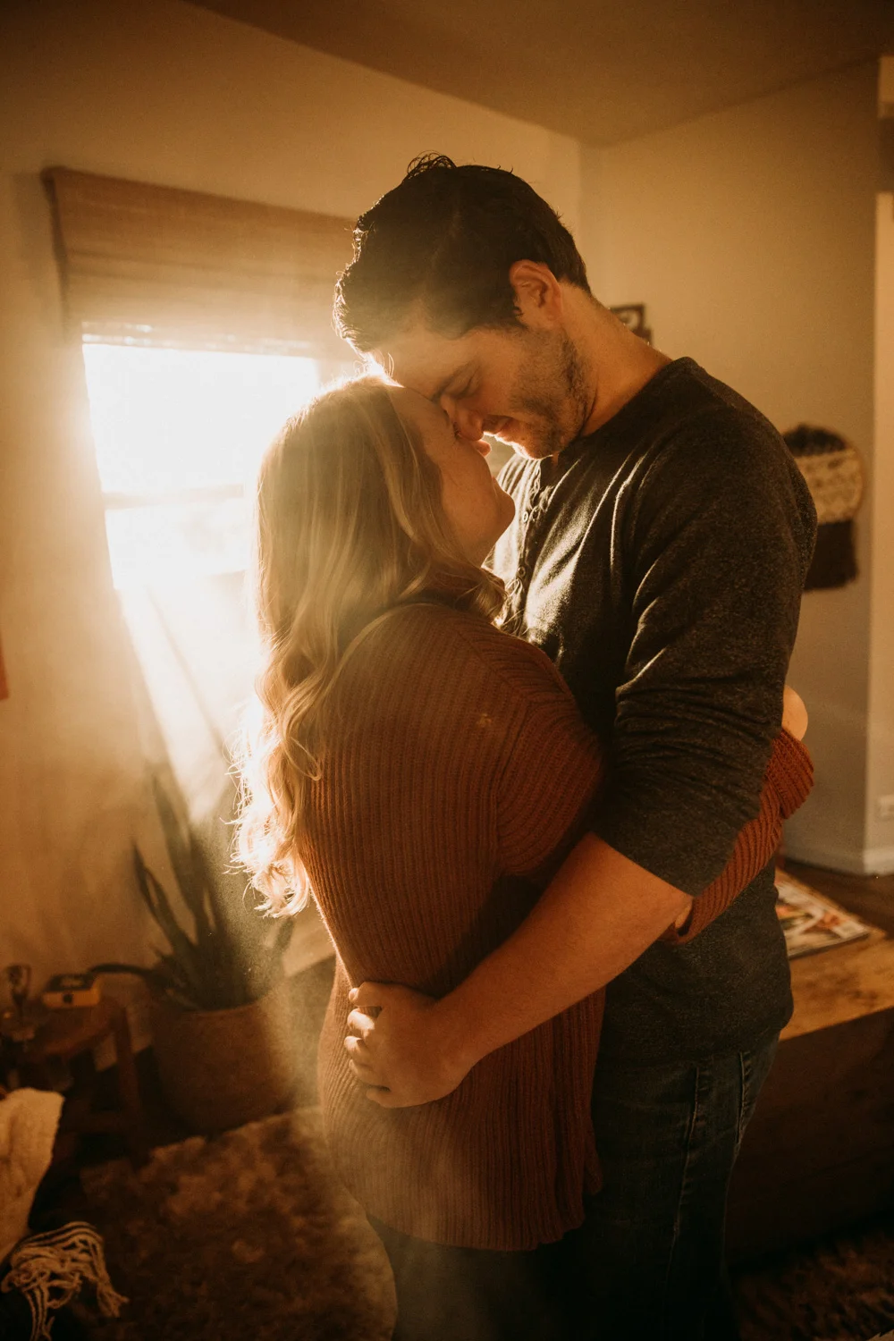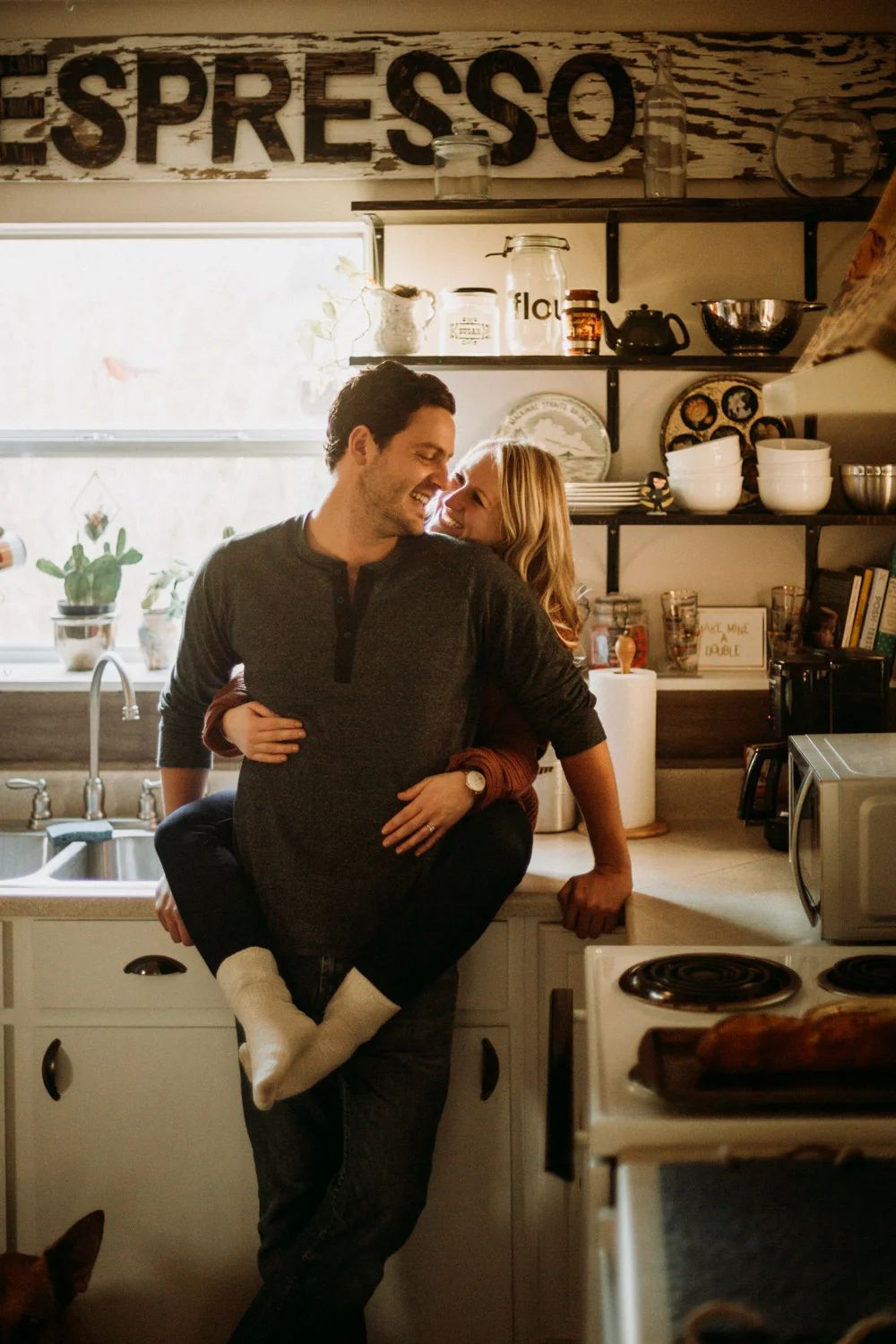 Katie & Evan met at a cookout and bonded over Katie’s pup, Java. At the time Evan was interested in getting a German Shepherd himself. He never had to though because he and Katie fell in love, and now they’re getting married. A normal evening for these two may very well include crafting a beautiful charcuterie together with Dean Martin playing in the background and Java giving them the best practiced puppy eye look. It was all recreated for this lifestyle engagement shoot. Real life records were played, coffee was brewed, charcuteries were crafted, and cuddles were enjoyed all while Katie & Evan reflected on the past, dreamed about their forever together, and savored the present. You would think it was straight out of a movie. But it was real.