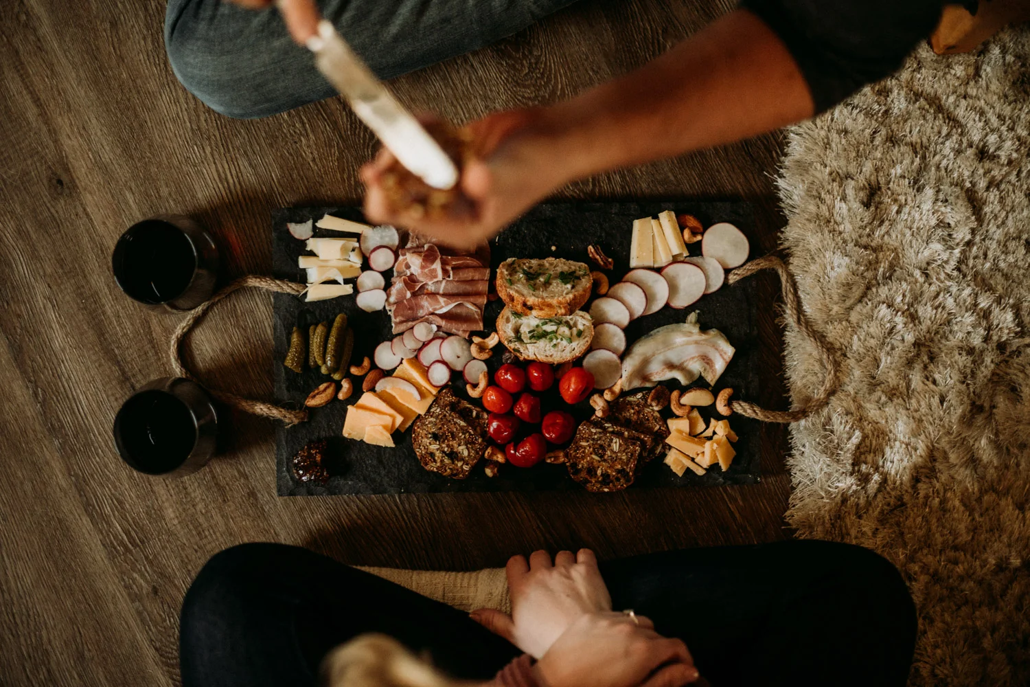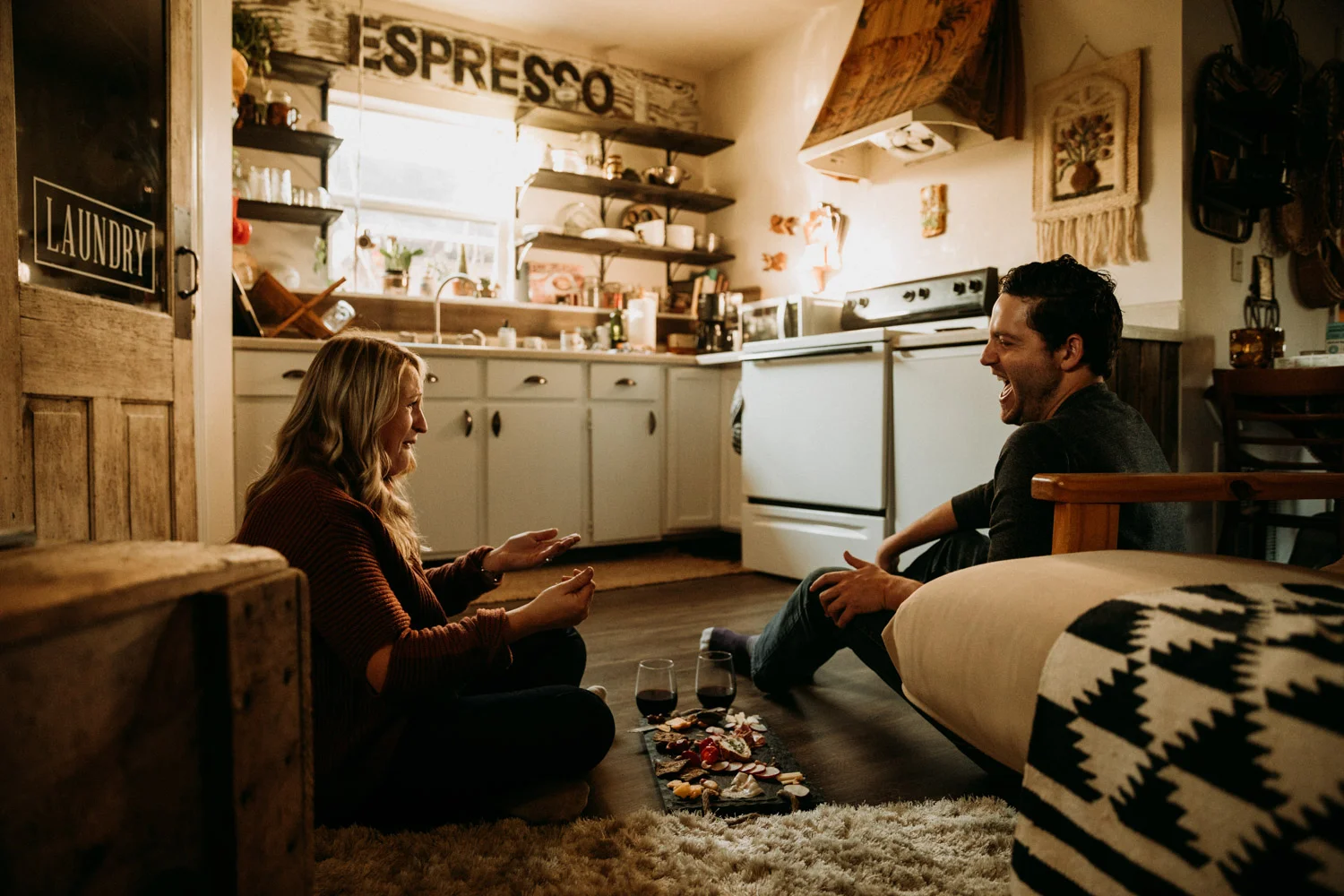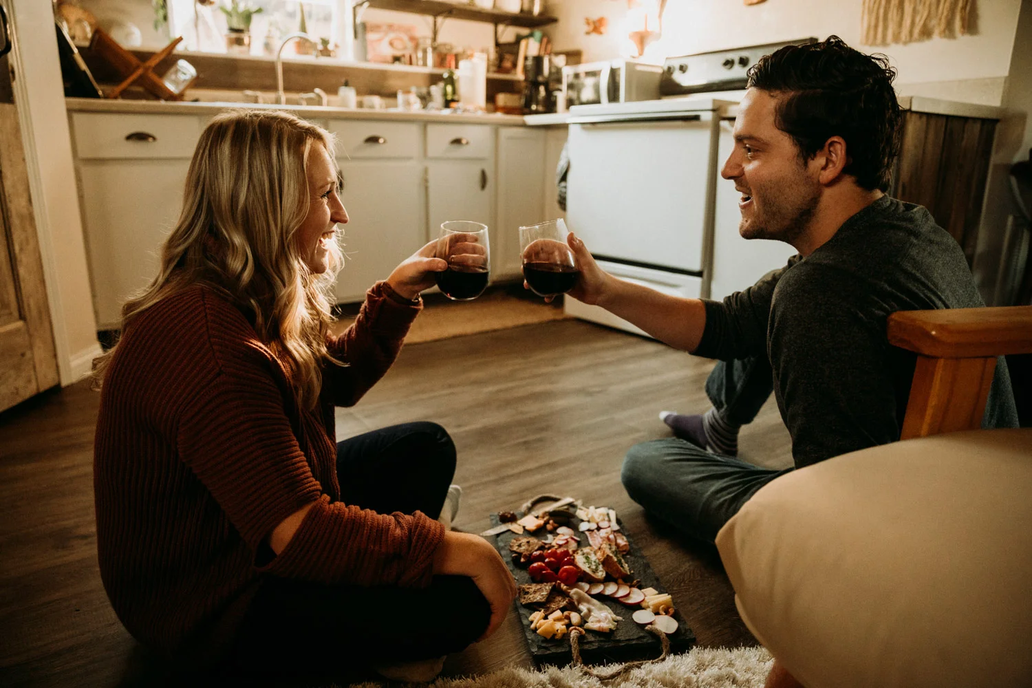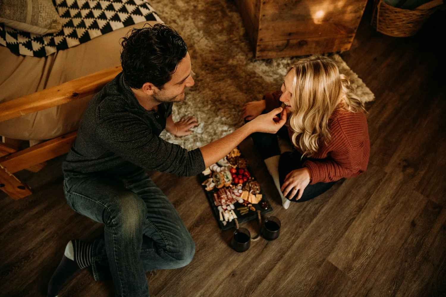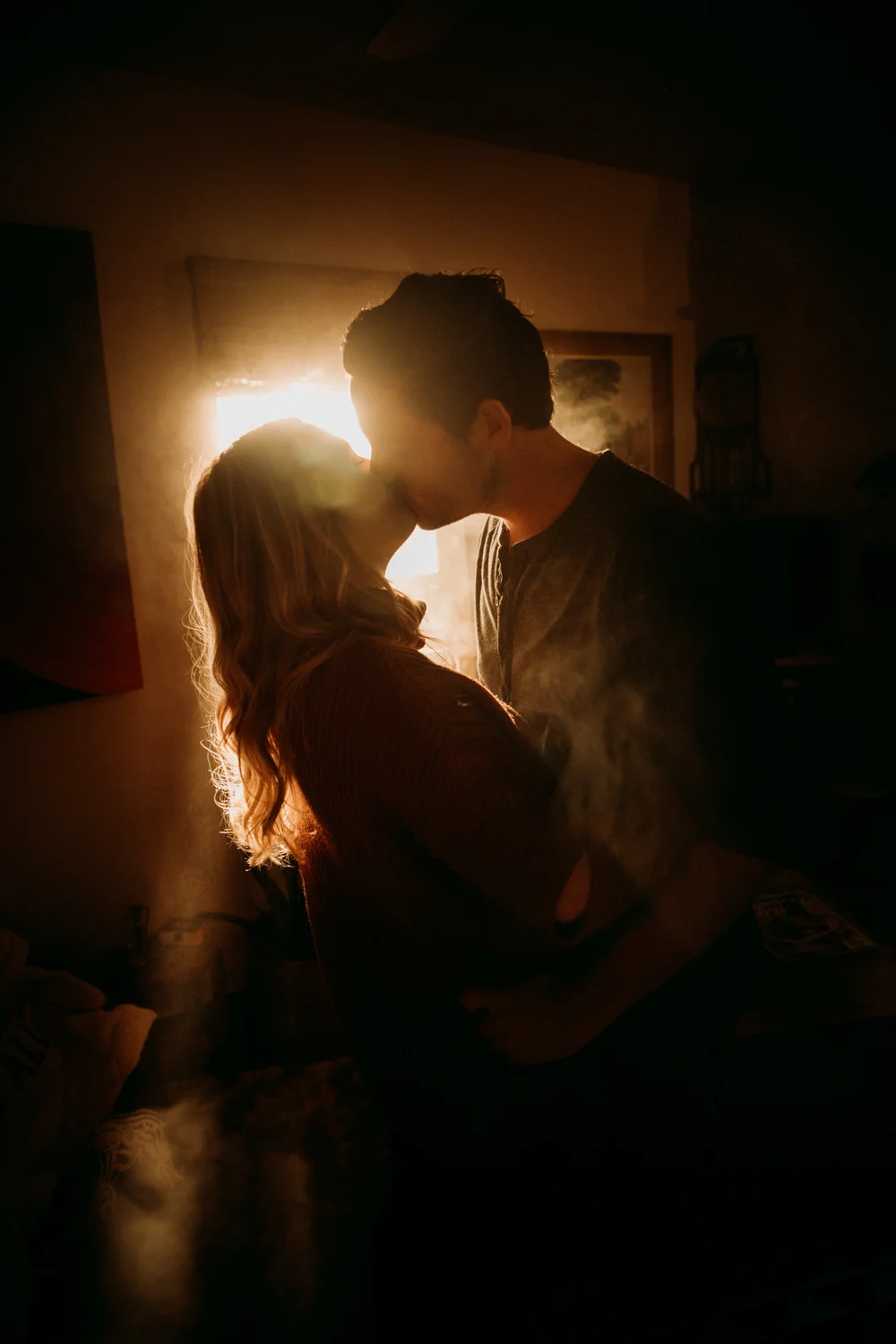 Katie & Evan met at a cookout and bonded over Katie’s pup, Java. At the time Evan was interested in getting a German Shepherd himself. He never had to though because he and Katie fell in love, and now they’re getting married. A normal evening for these two may very well include crafting a beautiful charcuterie together with Dean Martin playing in the background and Java giving them the best practiced puppy eye look. It was all recreated for this lifestyle engagement shoot. Real life records were played, coffee was brewed, charcuteries were crafted, and cuddles were enjoyed all while Katie & Evan reflected on the past, dreamed about their forever together, and savored the present. You would think it was straight out of a movie. But it was real.