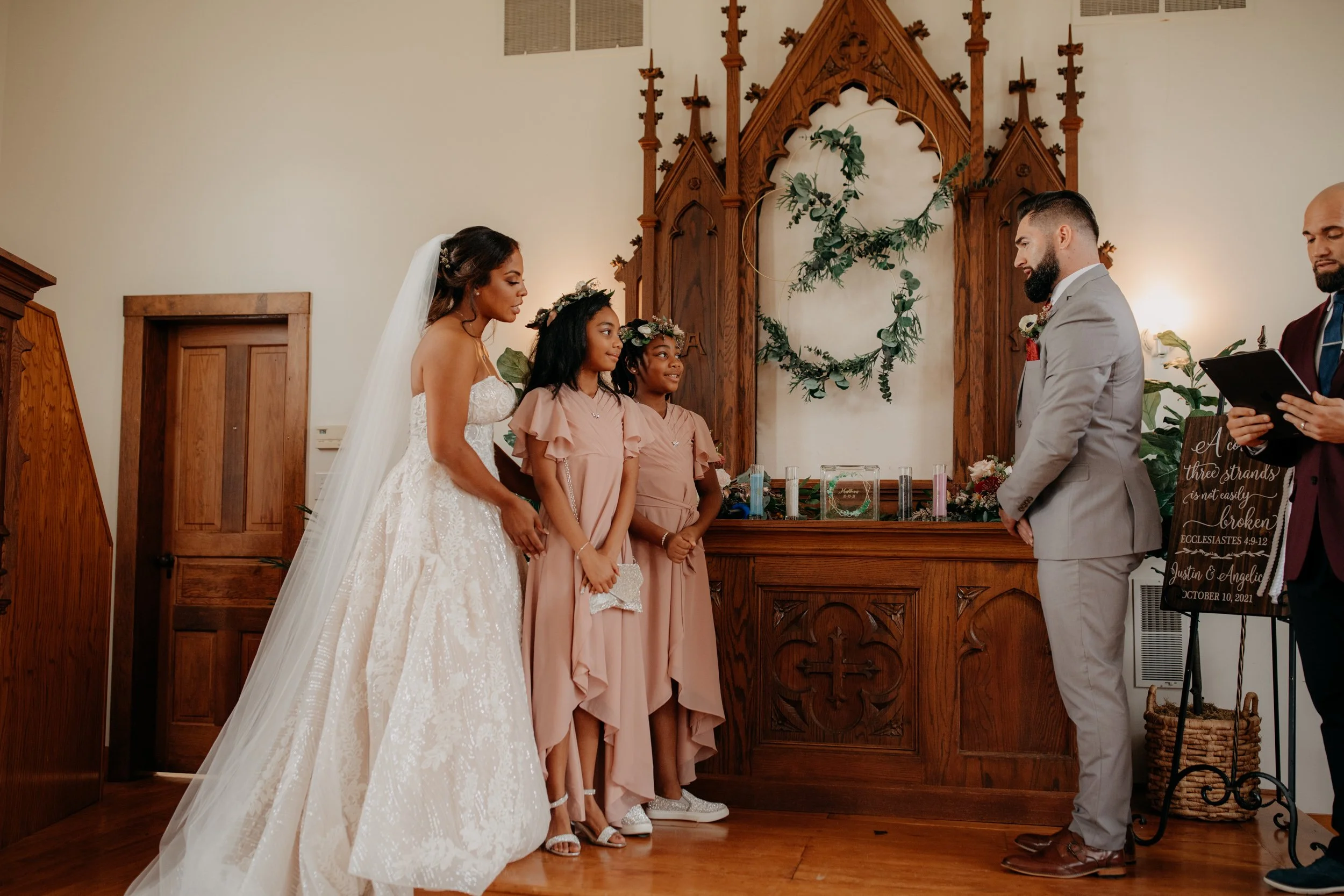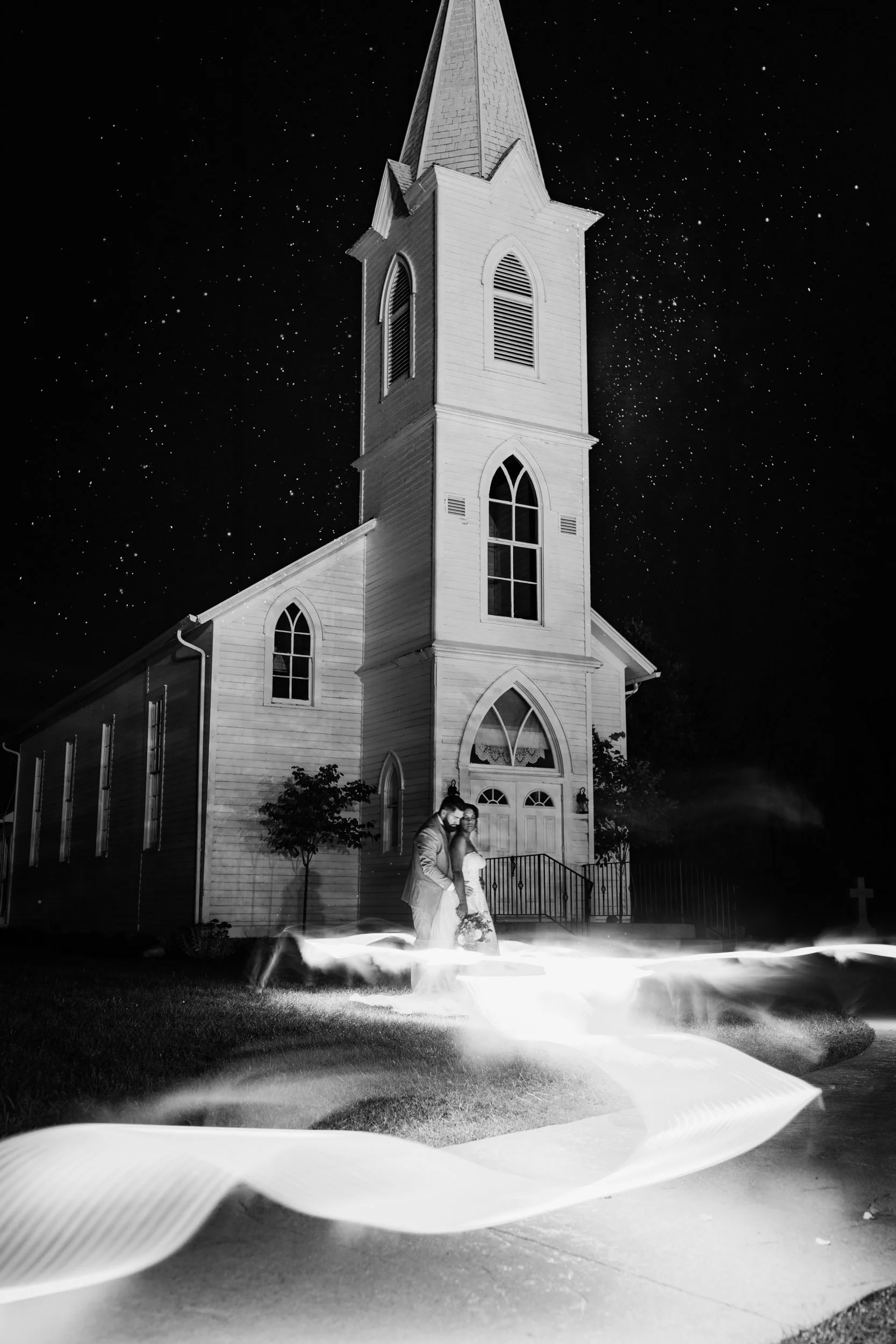 Justin and Angelica met when Justin’s brother and Angelica’s sister started dating (they eventually got married). They went several years as “just friends” ignoring the obvious attraction they had deep inside for each another. Their love grew more and more apparent until one day it became obvious to both of them. Set on the beautiful Oak Hill Farm, Justin and Angelica had one of the most spectacular weddings we’ve ever had the pleasure of being a part of. The overcast skies added the perfect amount of drama to the hill country of northwest Illinois. Angelica chose Oak Hill Farm because of their open concept reception space with rustic chandeliers. Every detail, from the massive windows in the two story bridal suite to the white chapel on a hill against the night sky, was perfect. This wedding was the meaning of magic.