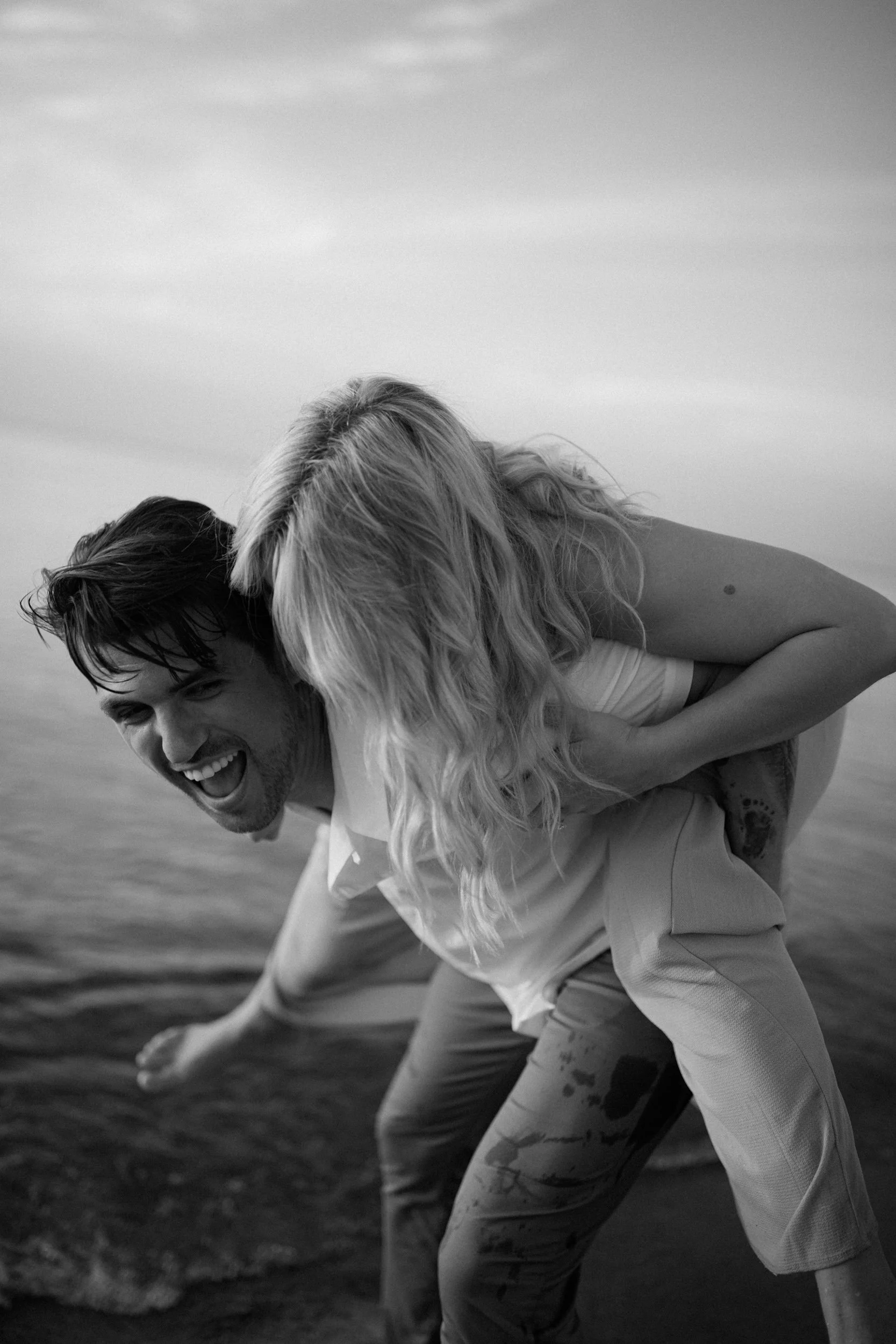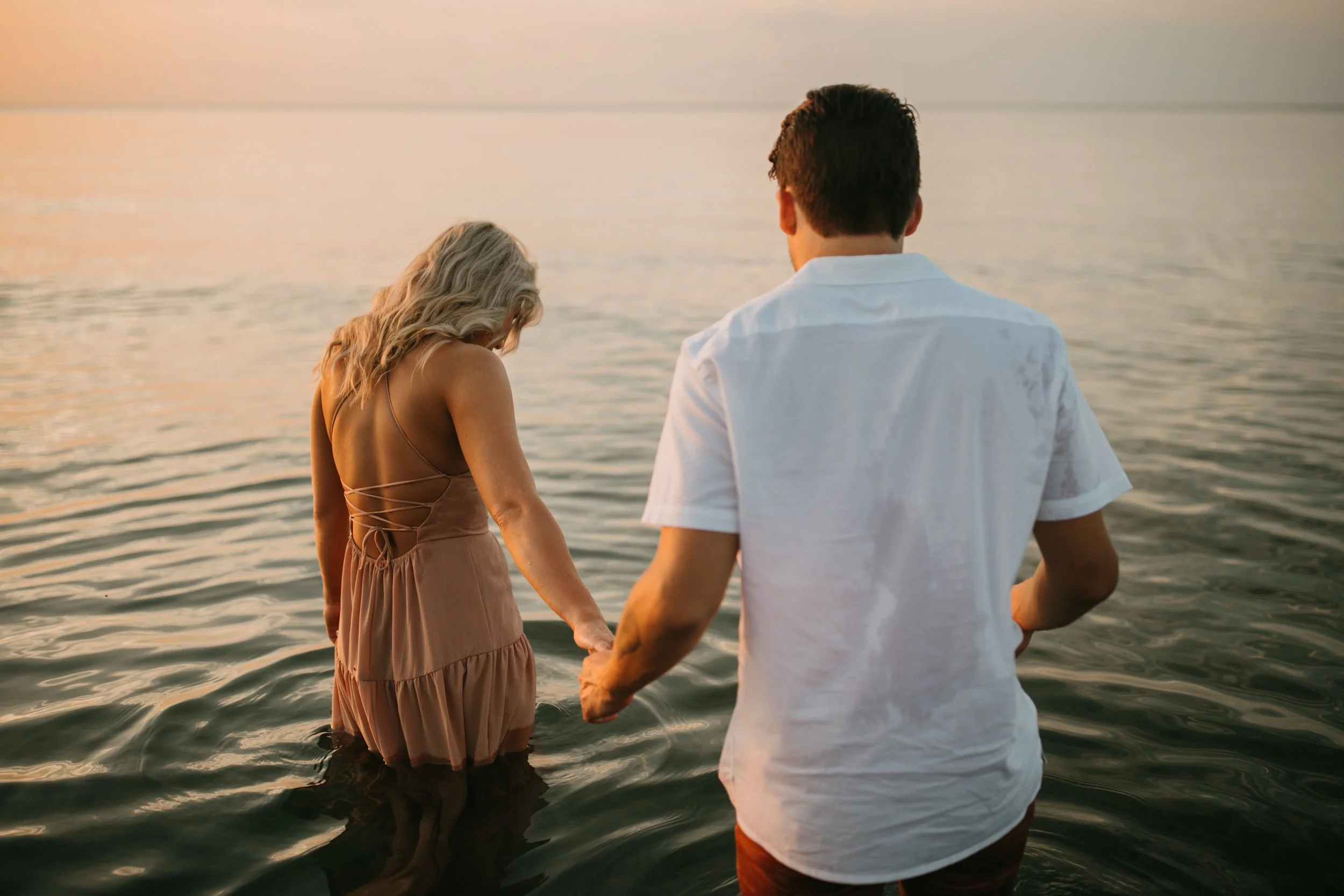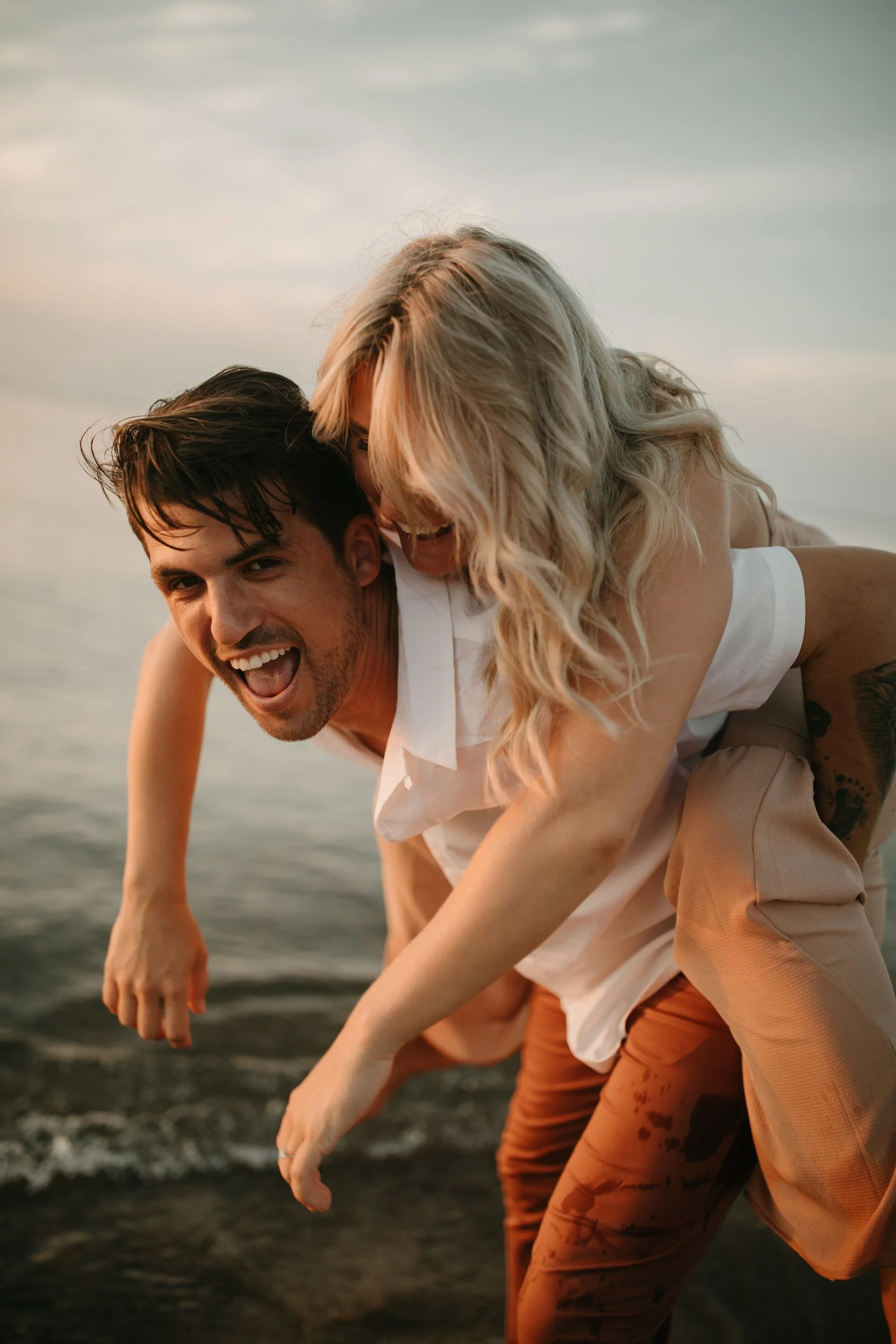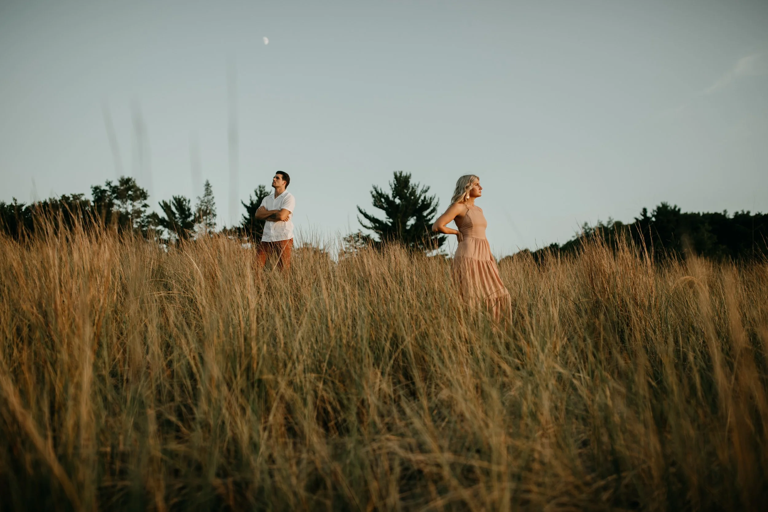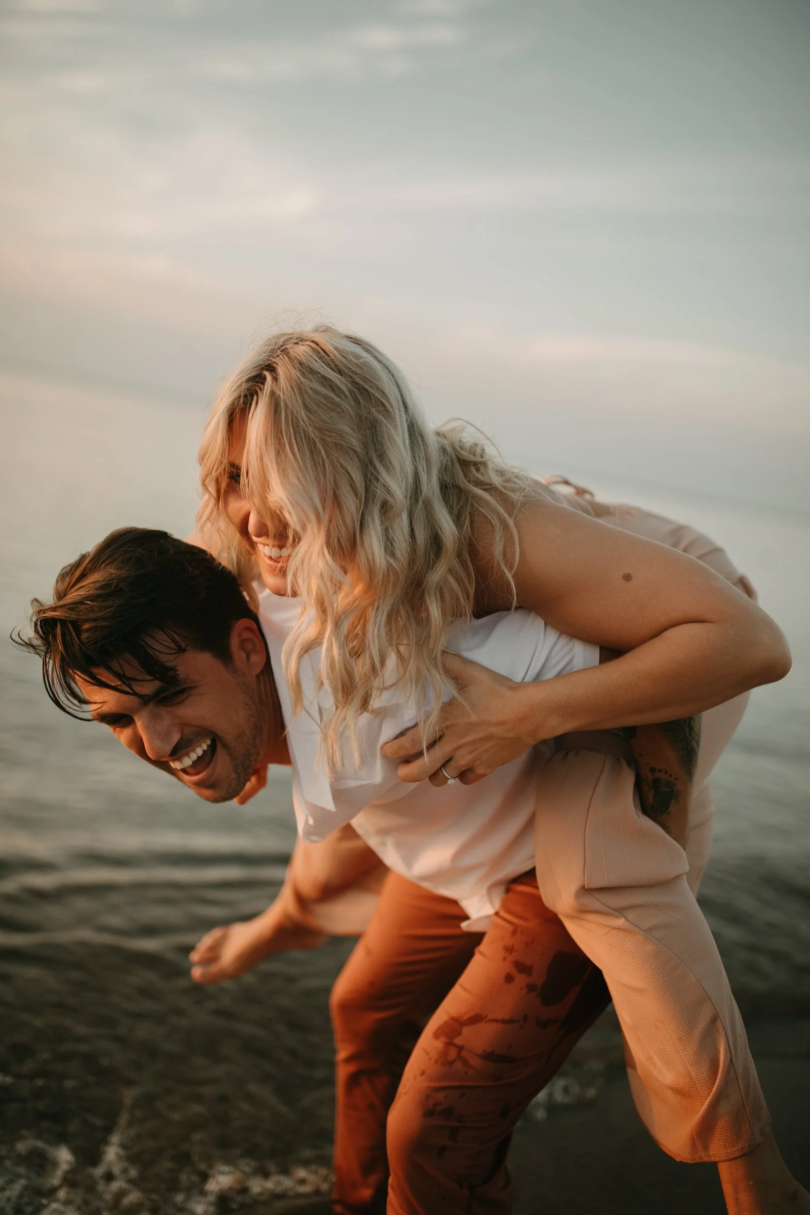 The sun cast a golden hue on everything it touched that day. Cassidy & Brian’s love was on full display seeming to mimic the sunlight in its vastness. As we made our way closer to the lake, the gold color began to intensify all around us. The session wrapped up with Cassidy and Brian jumping into the lake as the sun set! The dunes provided the perfect backdrop and environment for the most FUN and romantic session.