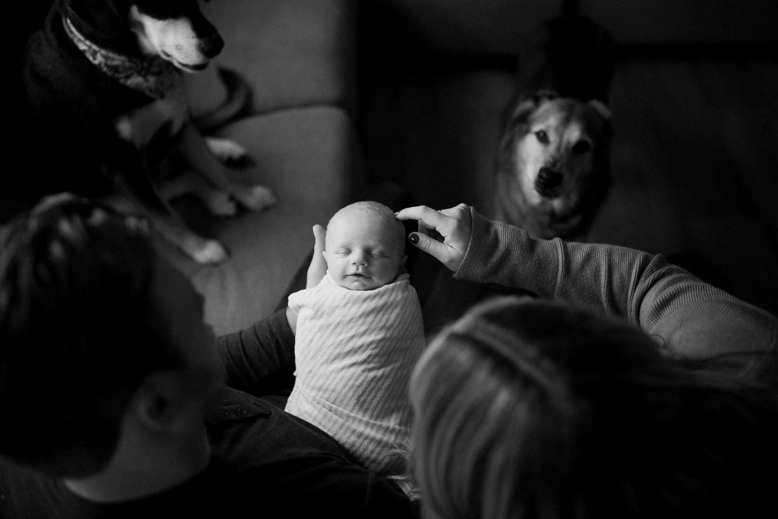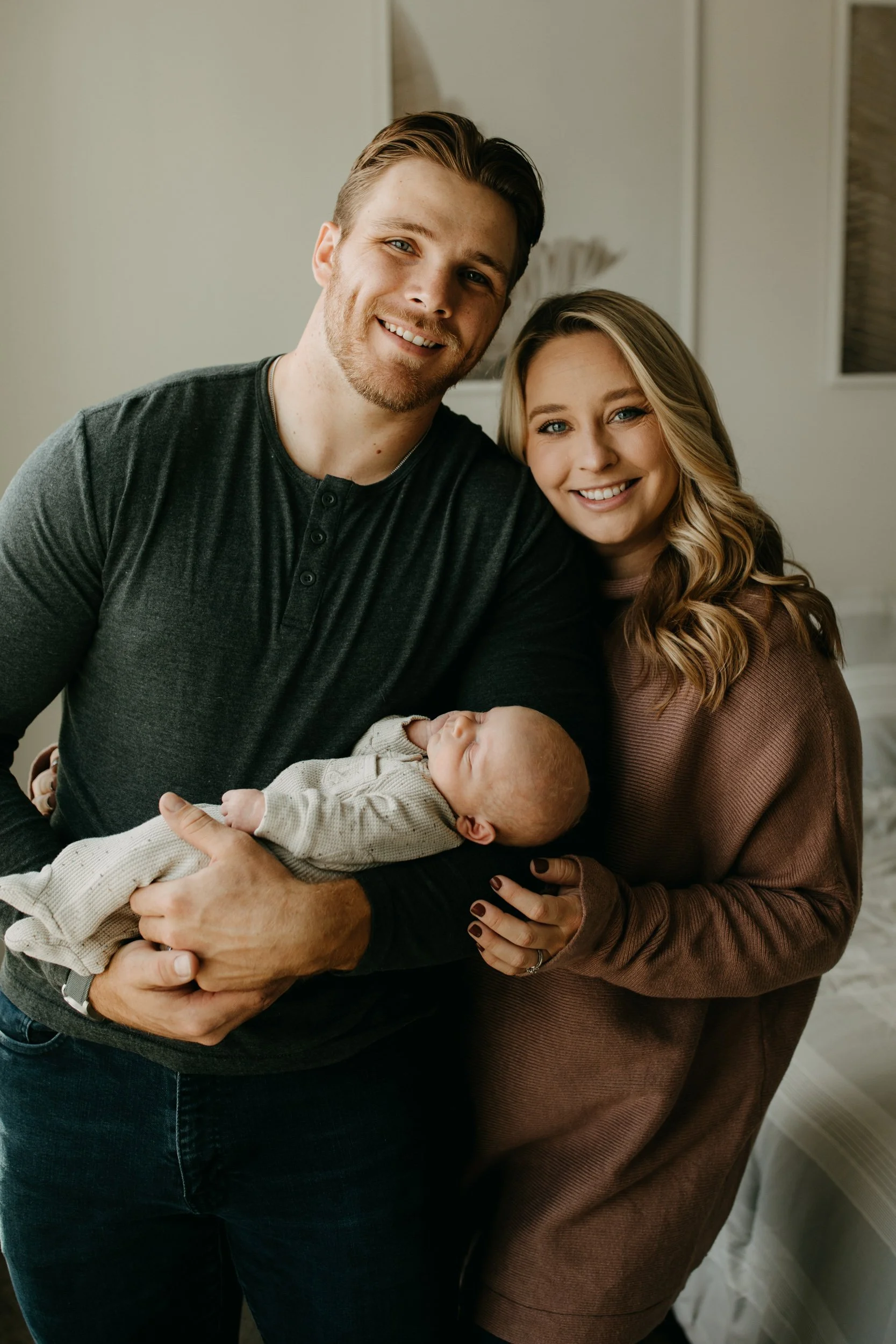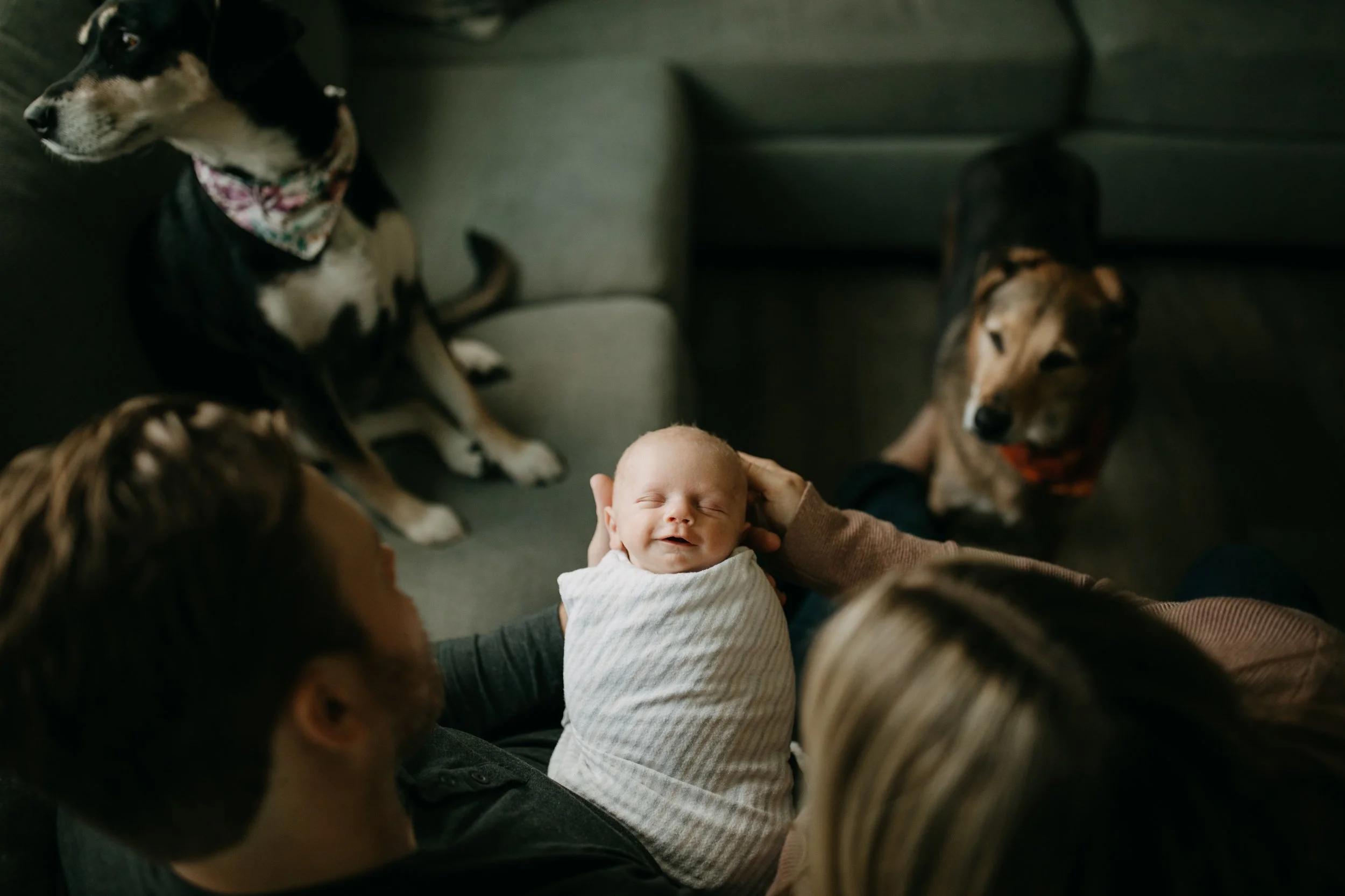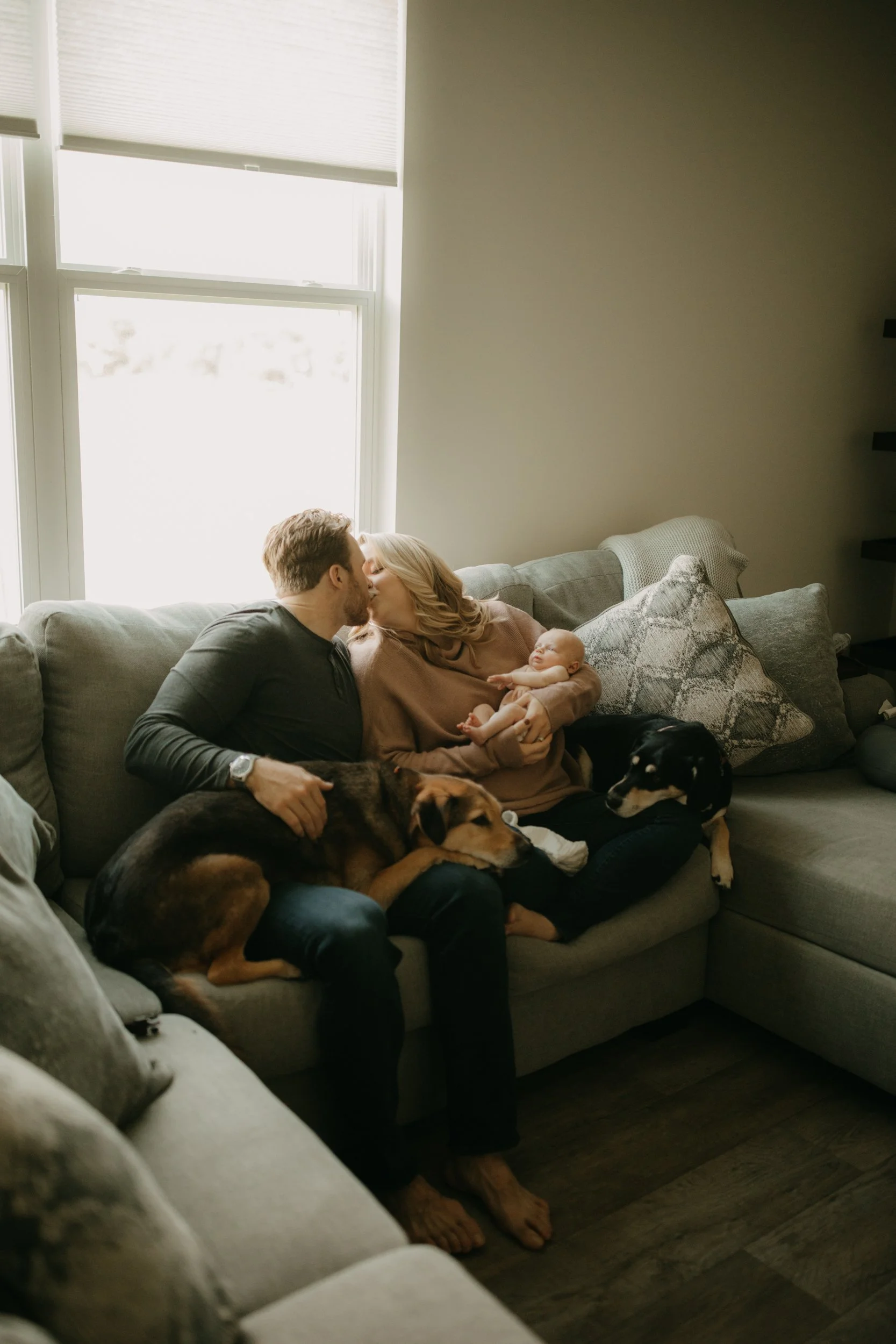 Just a few weeks later, we got the message that their little Lee was born. Kaitlyn made the trip to their Northern Illinois home to meet Lee for the first time. Their dogs were a big part of their in-home engagement photos so she decided to include them as well. Lee added joy and so much love to their home. It’s the best feeling in the world getting to watch a couple get married, become parents, and embark on so many life changes together. Jake & Amber rock their new role as Mom and Dad.