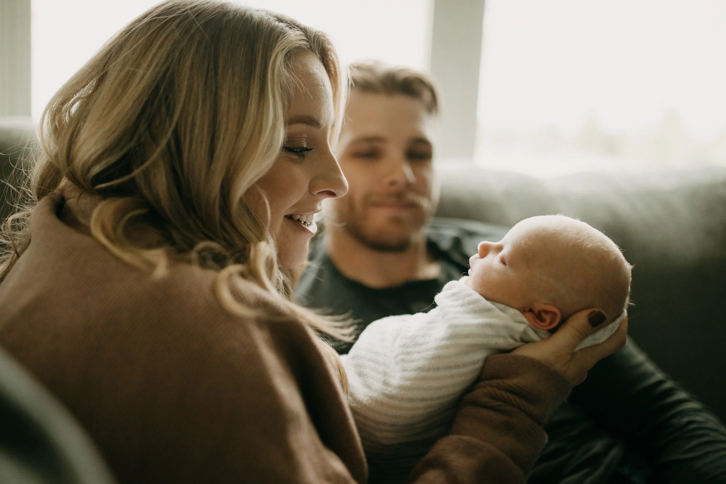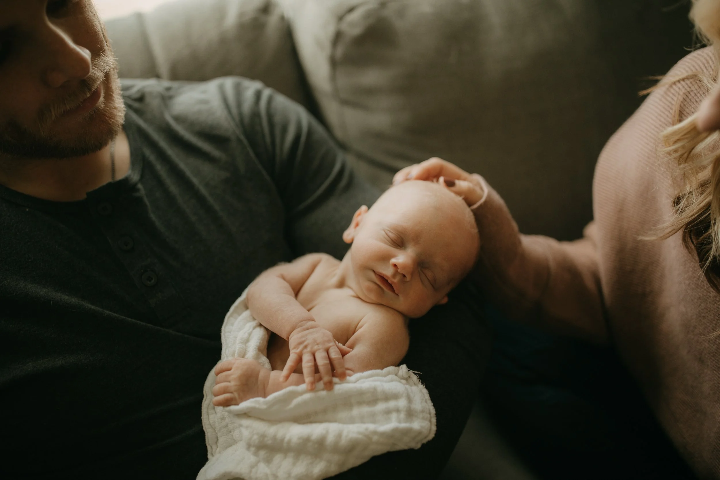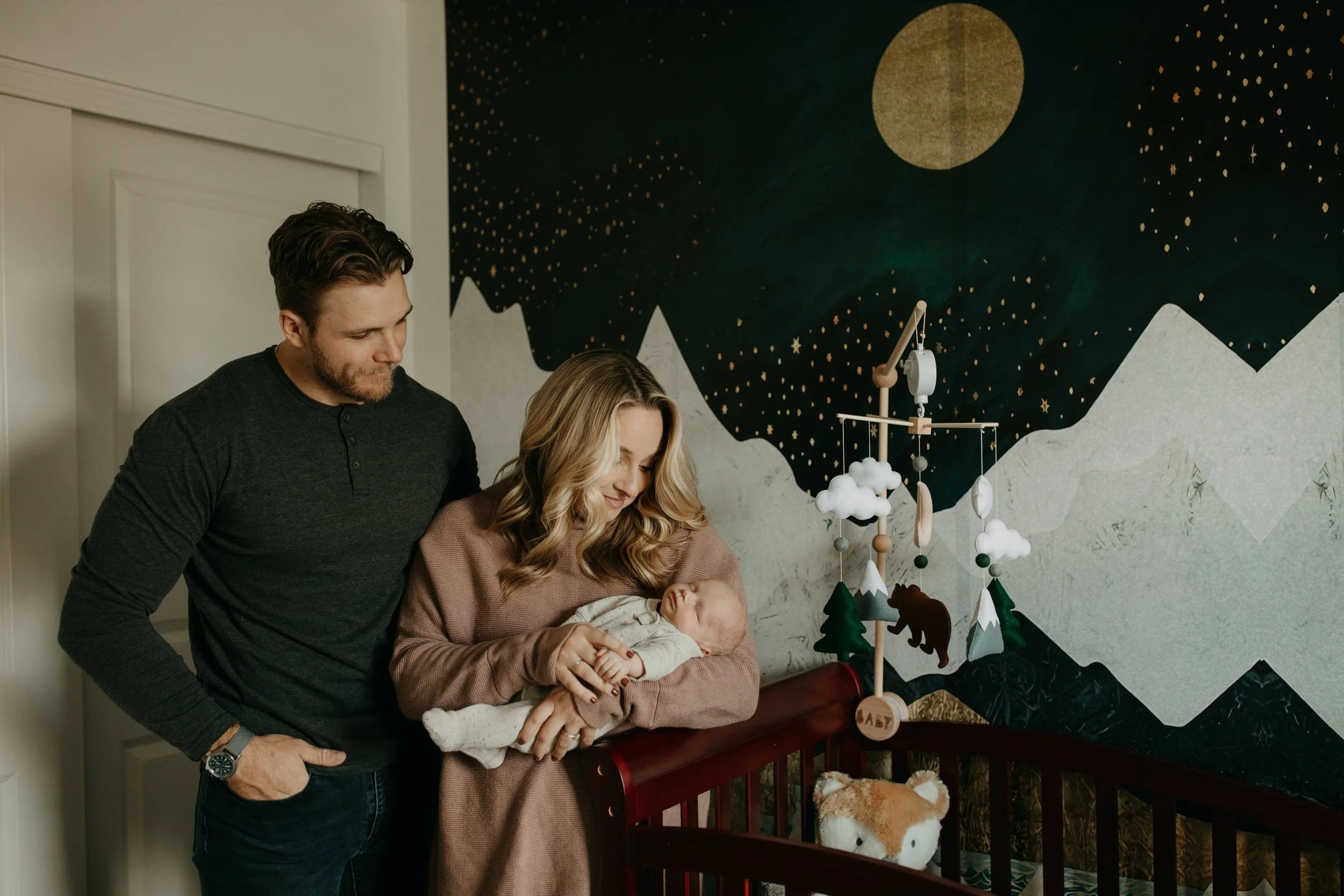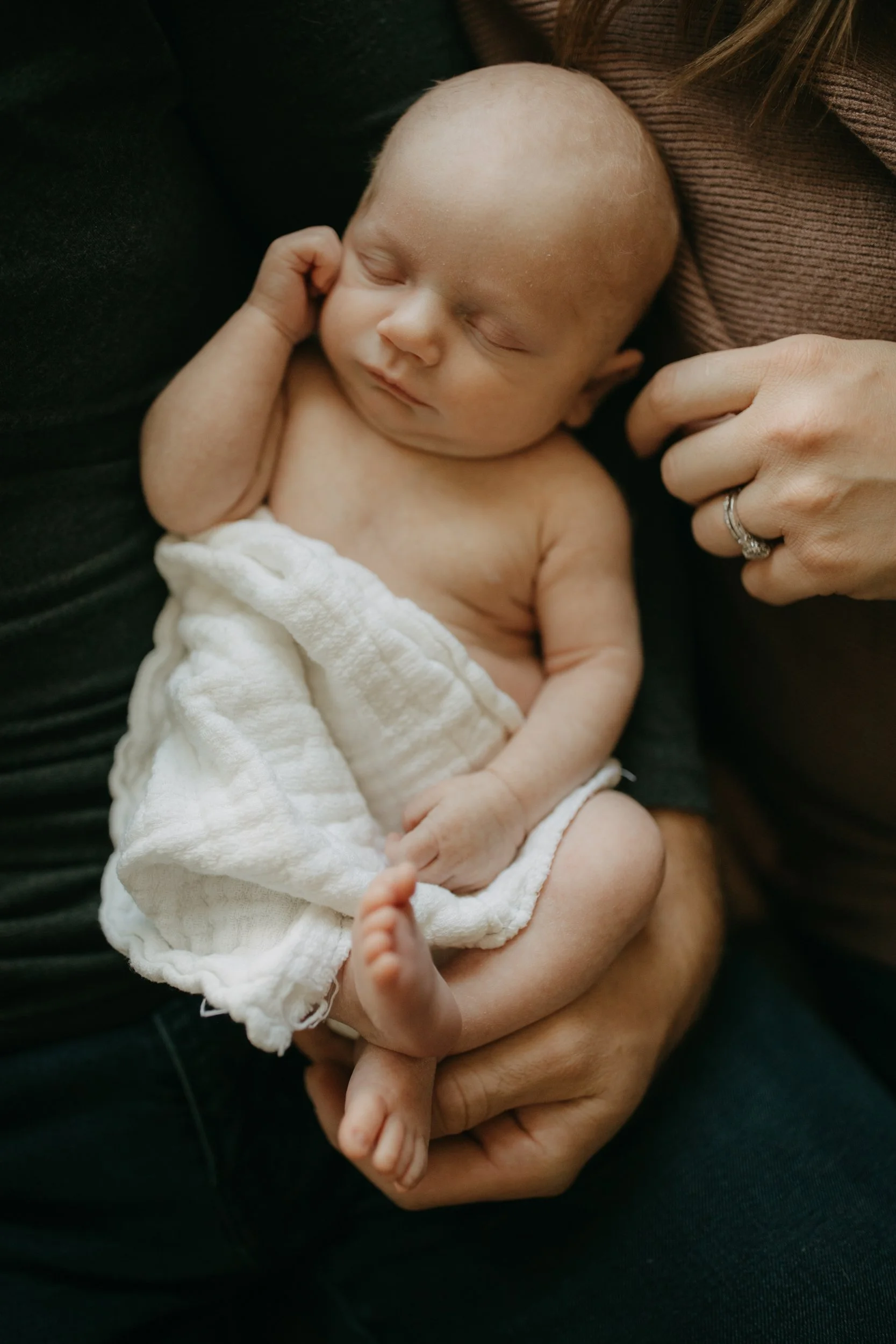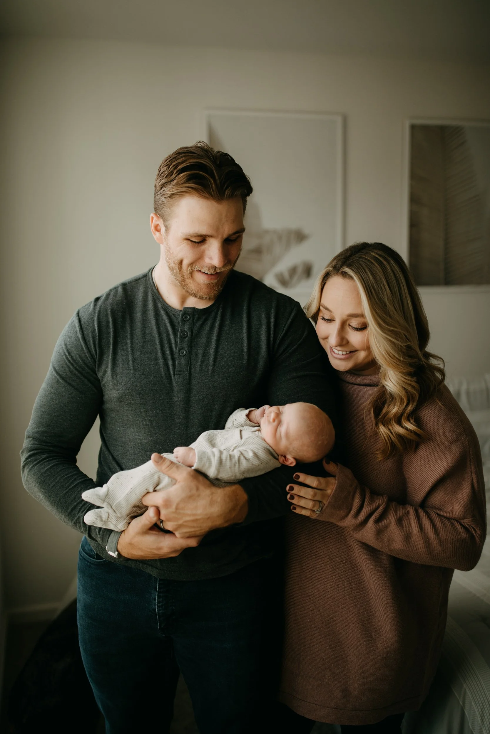 Just a few weeks later, we got the message that their little Lee was born. Kaitlyn made the trip to their Northern Illinois home to meet Lee for the first time. Their dogs were a big part of their in-home engagement photos so she decided to include them as well. Lee added joy and so much love to their home. It’s the best feeling in the world getting to watch a couple get married, become parents, and embark on so many life changes together. Jake & Amber rock their new role as Mom and Dad.