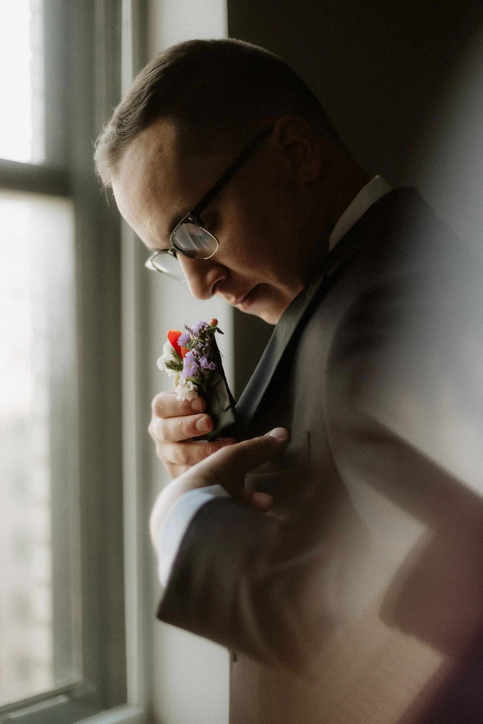 The anticipation kicked in as preparations began at, Hotel Leveque, a boutique hotel in Columbus, OH. The atmosphere was calm but expectant. It is one of our favorite parts of the day. As the bride and groom get ready with close family and friends, it all becomes REAL for the first time.