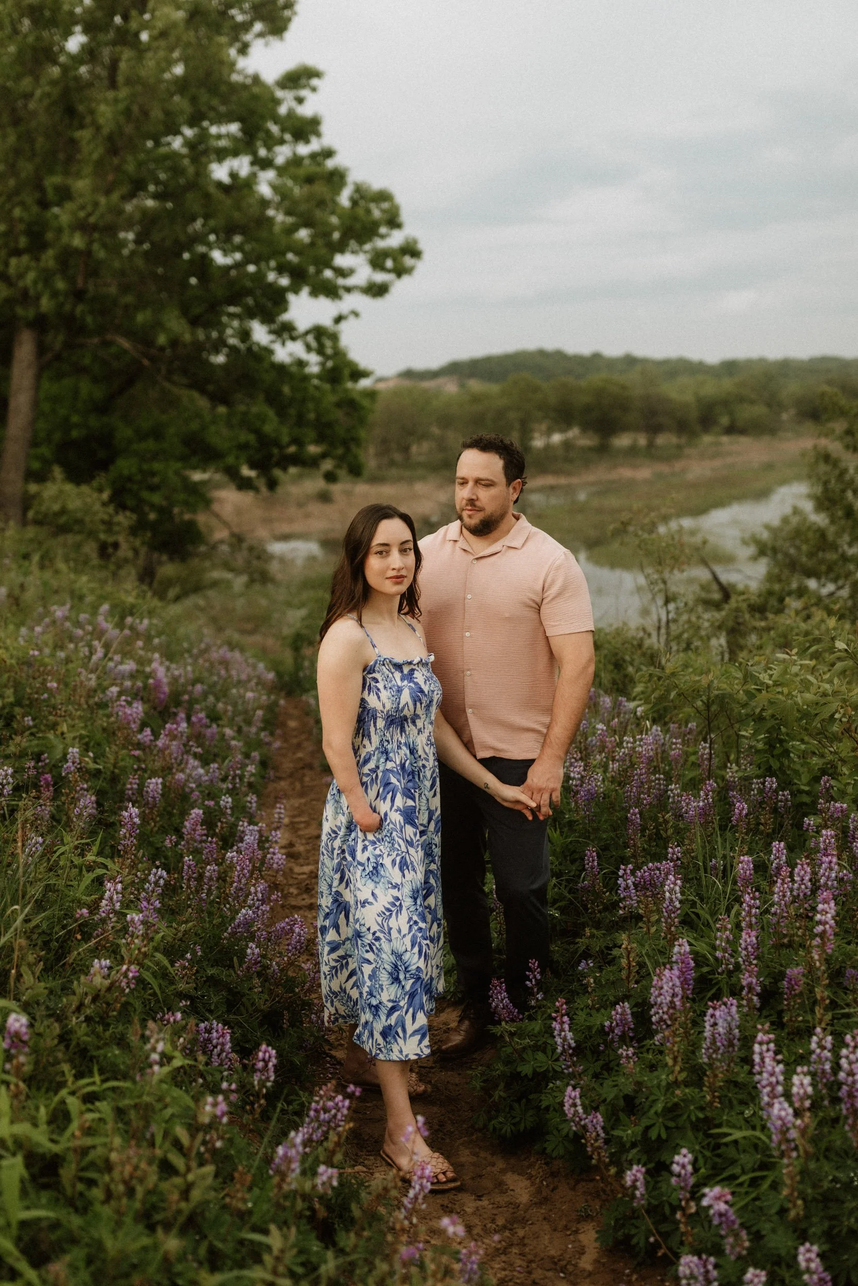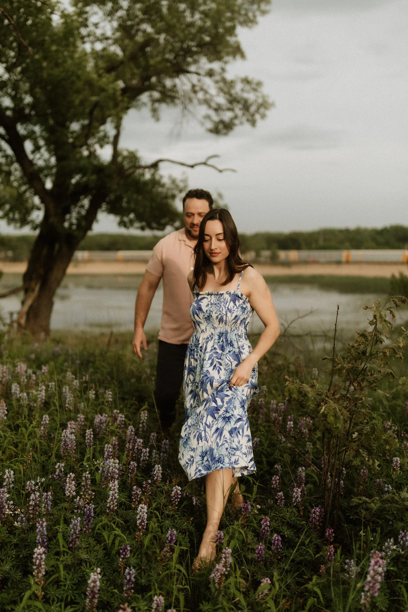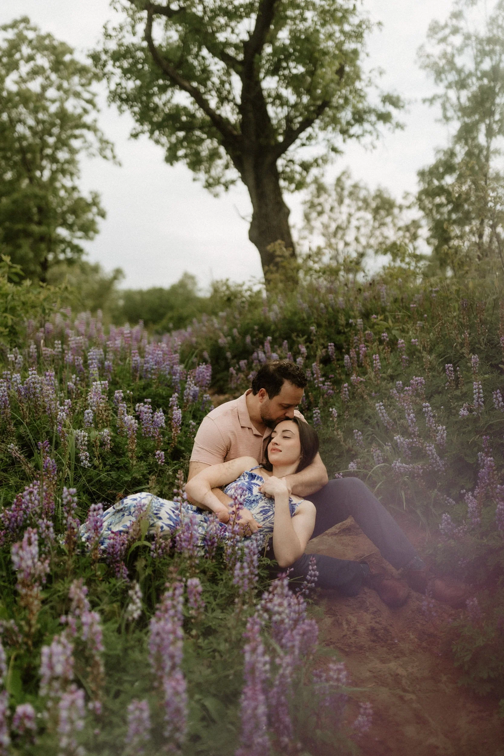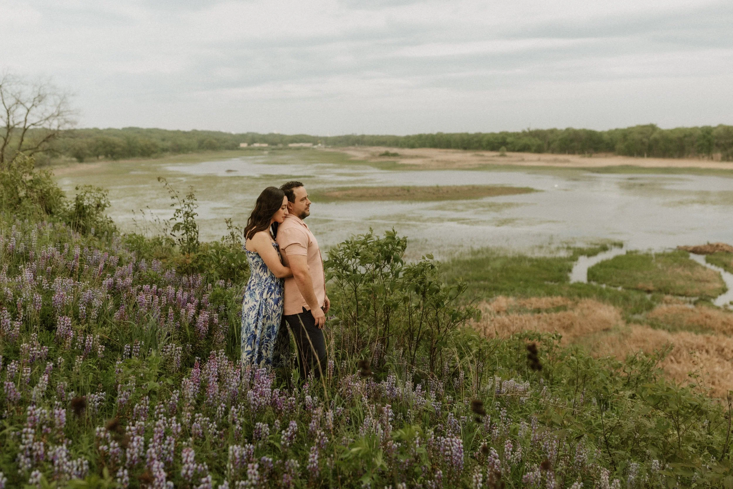 When Elena + Jordan were first scheduling their engagement session (+roadtrip to come see us), I realized it was right around the time the lupines would cover the dunes. We all held our breaths hoping it would return. A few days prior, we enjoyed a walk there for Mother’s Day and were elated to let Elena know it was a “go” for their shoot. The day of their session the weather forecast predicted rain, but it didn’t rain on us the entire time. The sun was in and out of the clouds until the very end when the clouds parted as the sun burst through. It was PERFECT for those golden hues on the beach. The Indiana dunes (+God working together) didn’t disappoint us yet again.
