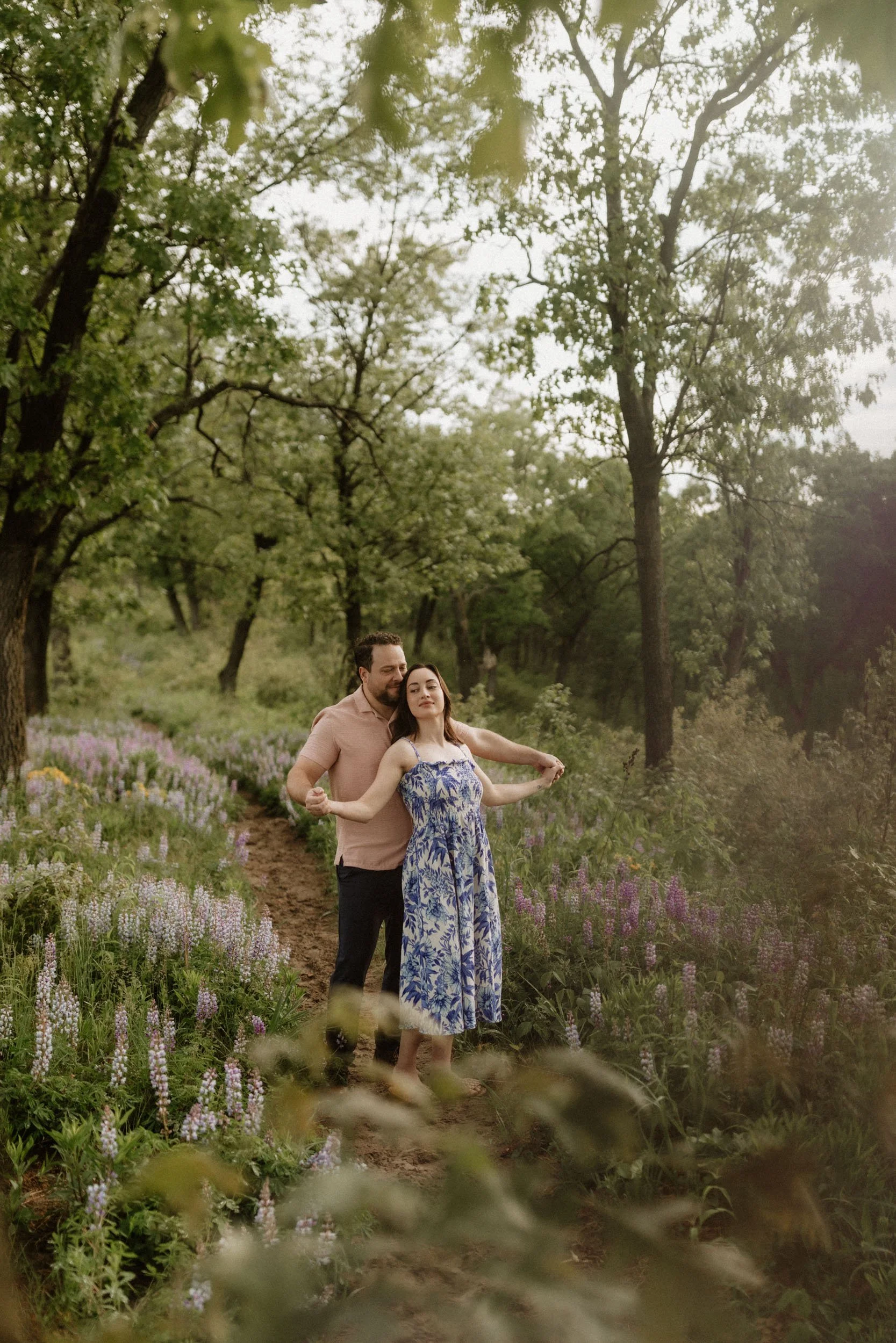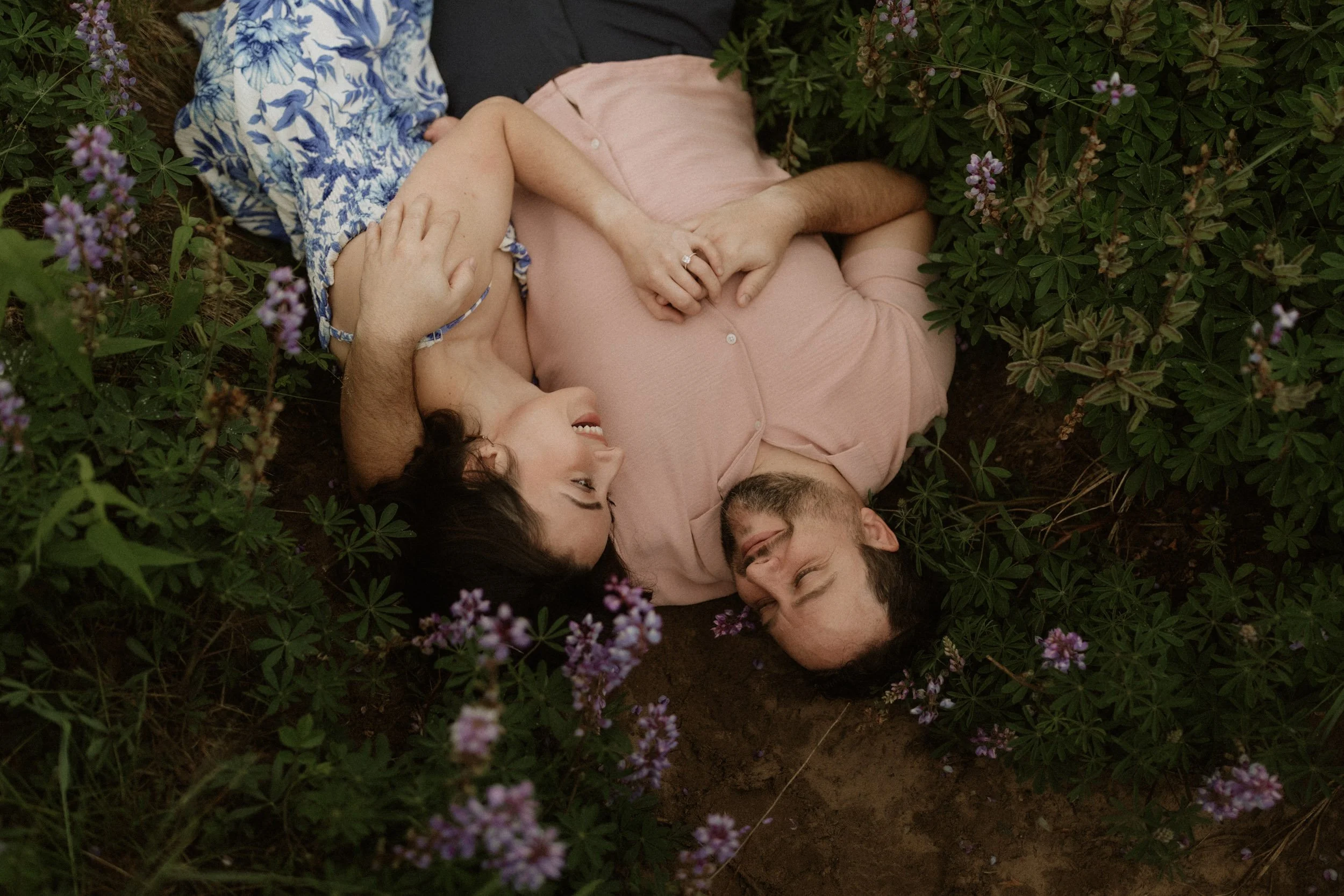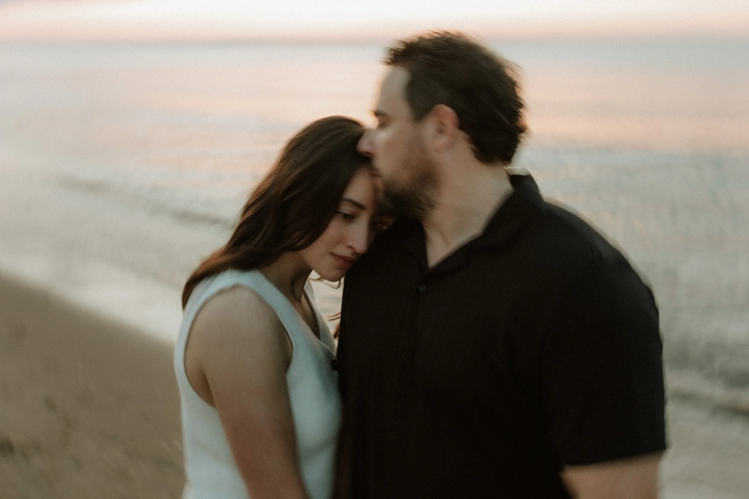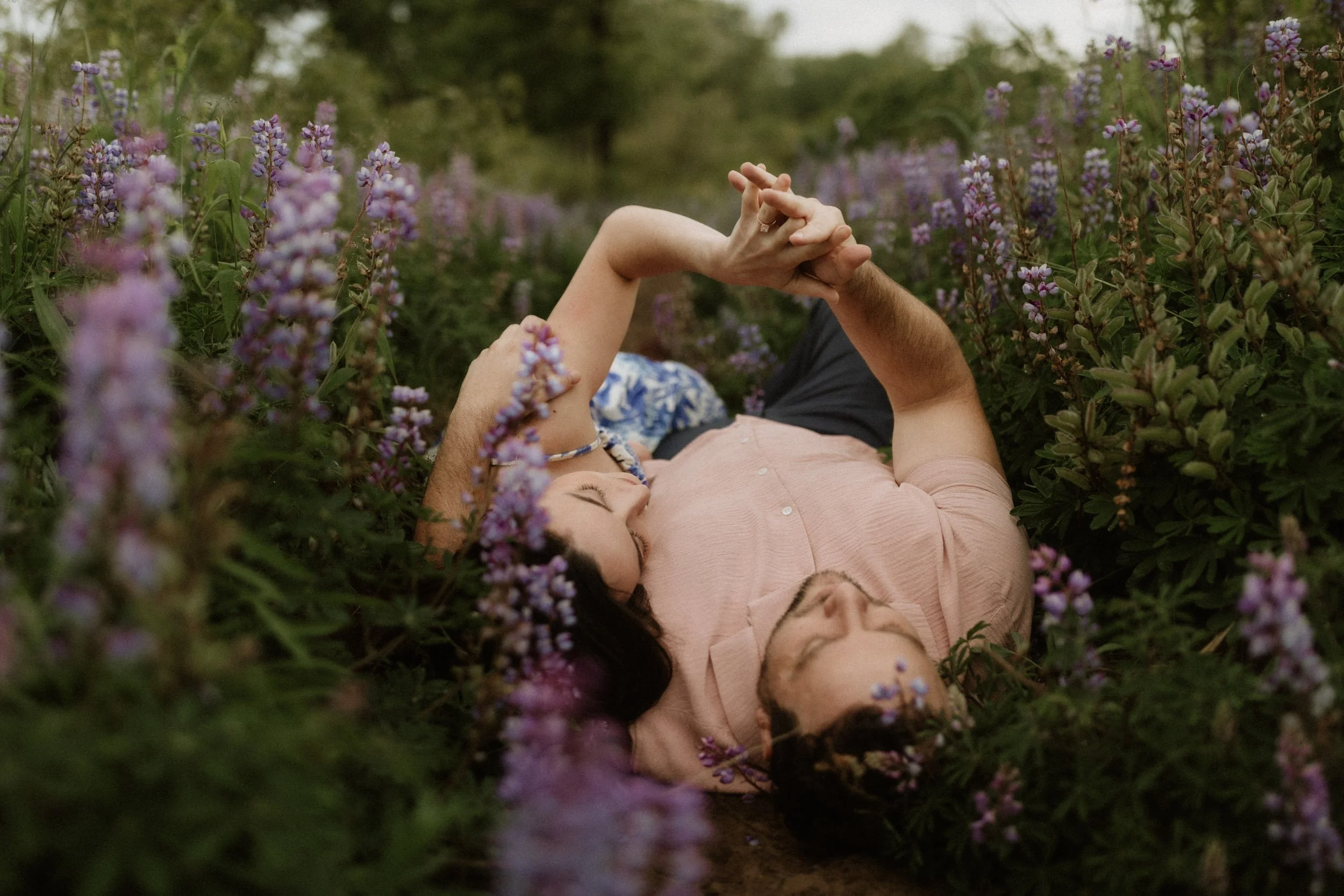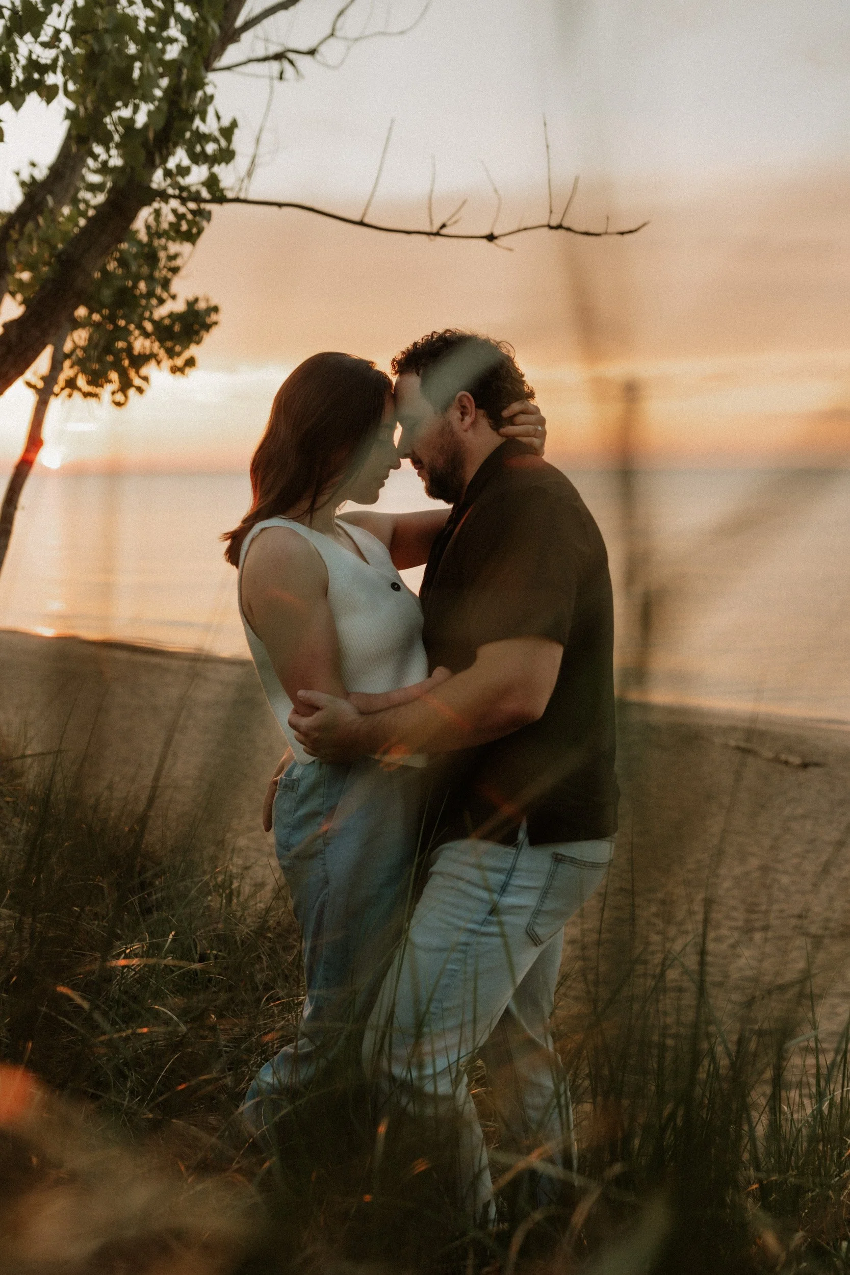 When Elena + Jordan were first scheduling their engagement session (+roadtrip to come see us), I realized it was right around the time the lupines would cover the dunes. We all held our breaths hoping it would return. A few days prior, we enjoyed a walk there for Mother’s Day and were elated to let Elena know it was a “go” for their shoot. The day of their session the weather forecast predicted rain, but it didn’t rain on us the entire time. The sun was in and out of the clouds until the very end when the clouds parted as the sun burst through. It was PERFECT for those golden hues on the beach. The Indiana dunes (+God working together) didn’t disappoint us yet again.