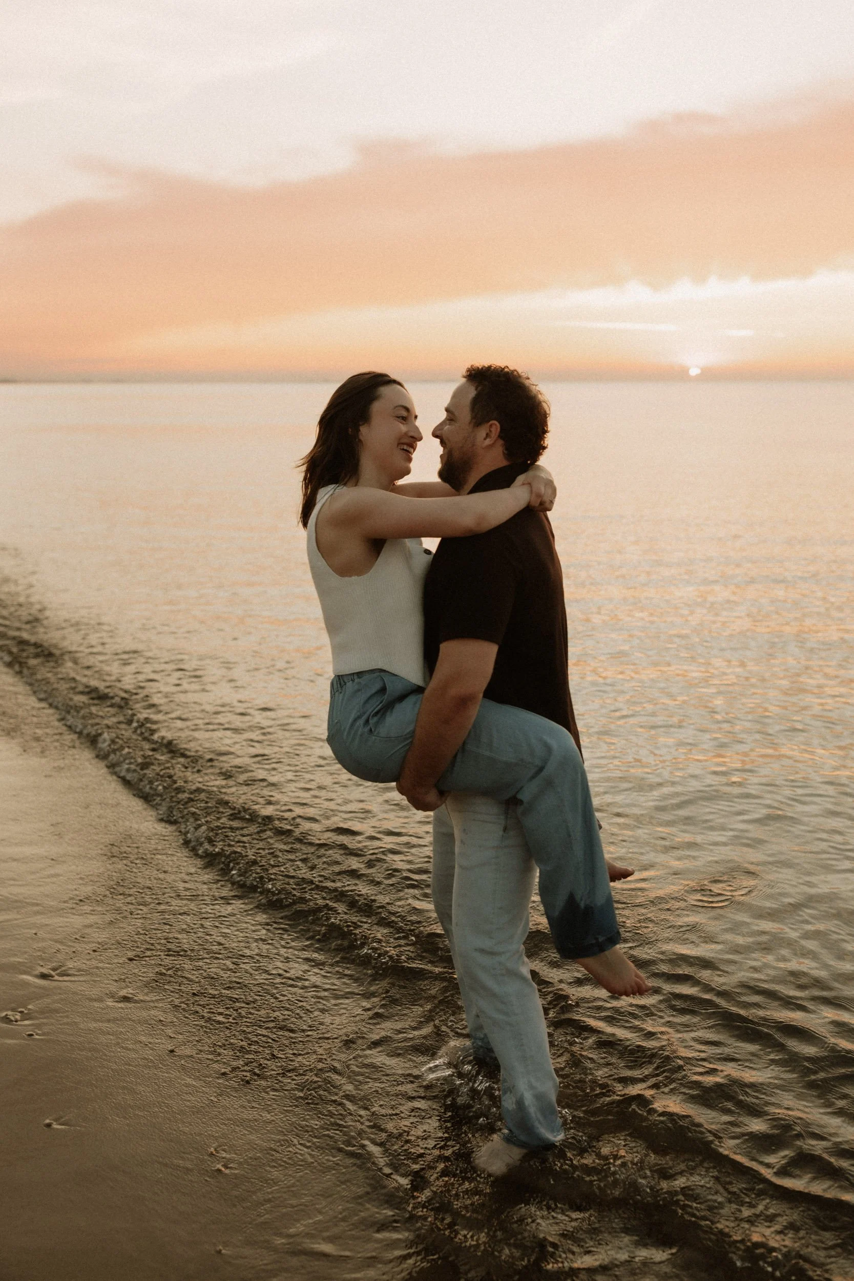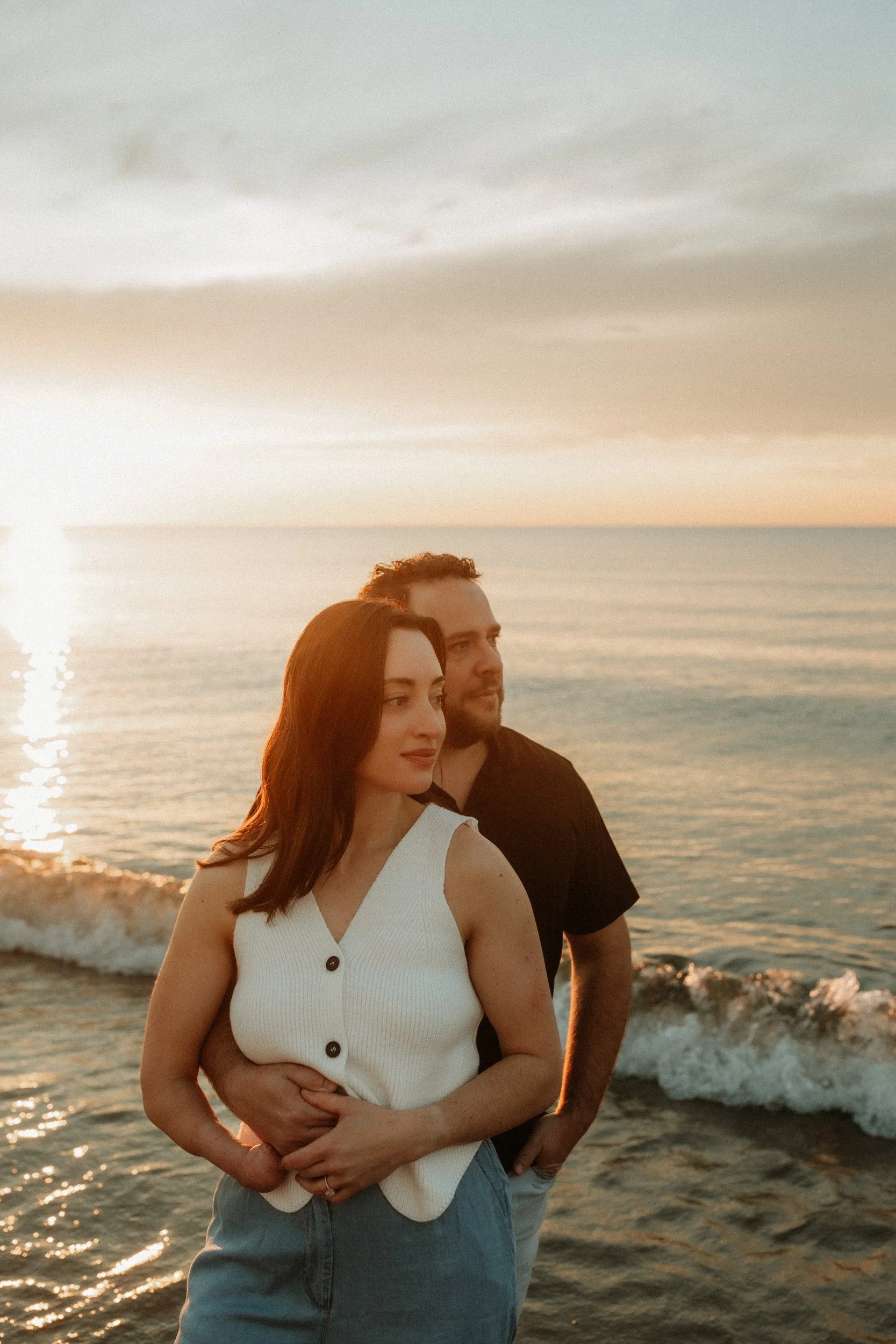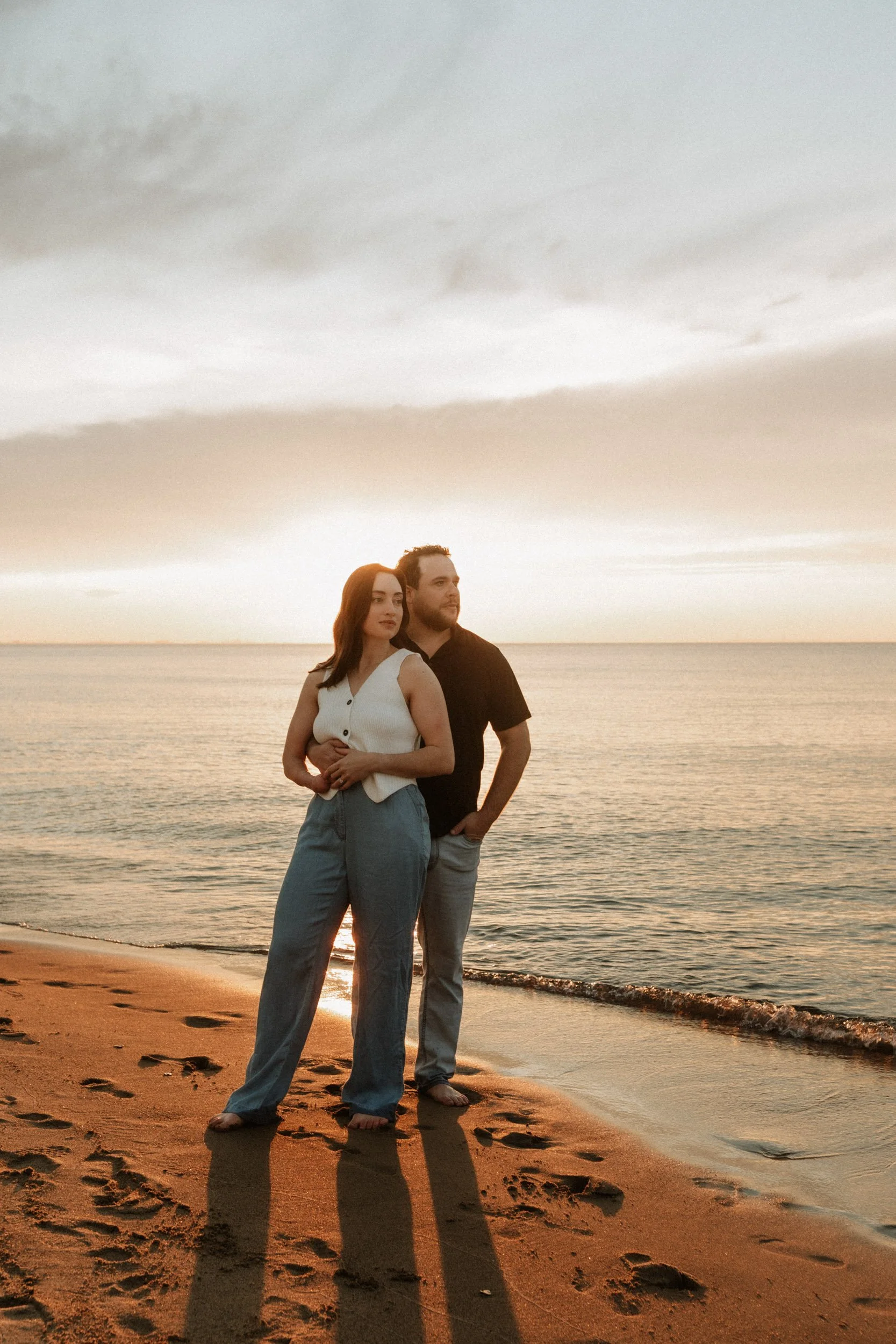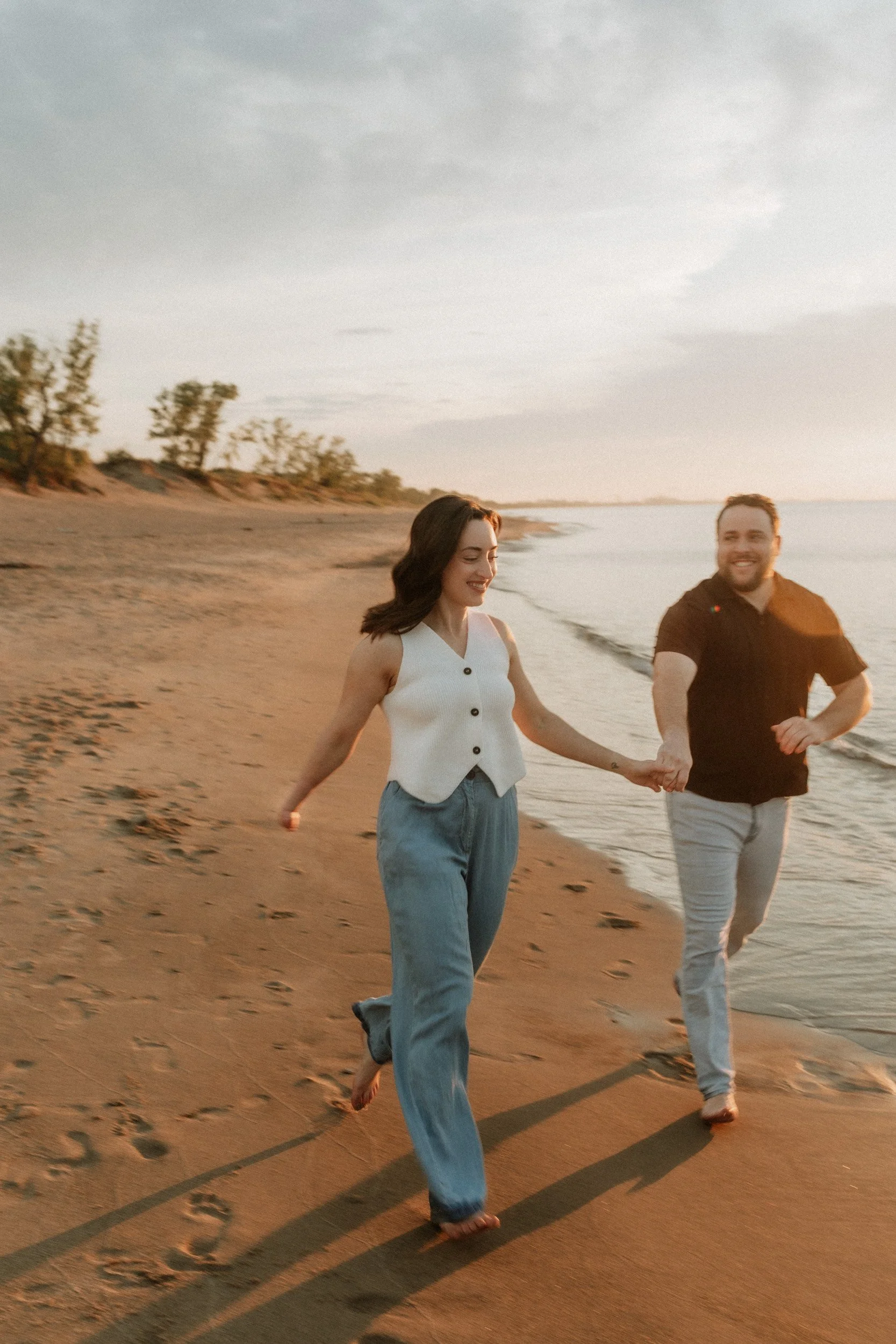 When Elena + Jordan were first scheduling their engagement session (+roadtrip to come see us), I realized it was right around the time the lupines would cover the dunes. We all held our breaths hoping it would return. A few days prior, we enjoyed a walk there for Mother’s Day and were elated to let Elena know it was a “go” for their shoot. The day of their session the weather forecast predicted rain, but it didn’t rain on us the entire time. The sun was in and out of the clouds until the very end when the clouds parted as the sun burst through. It was PERFECT for those golden hues on the beach. The Indiana dunes (+God working together) didn’t disappoint us yet again.