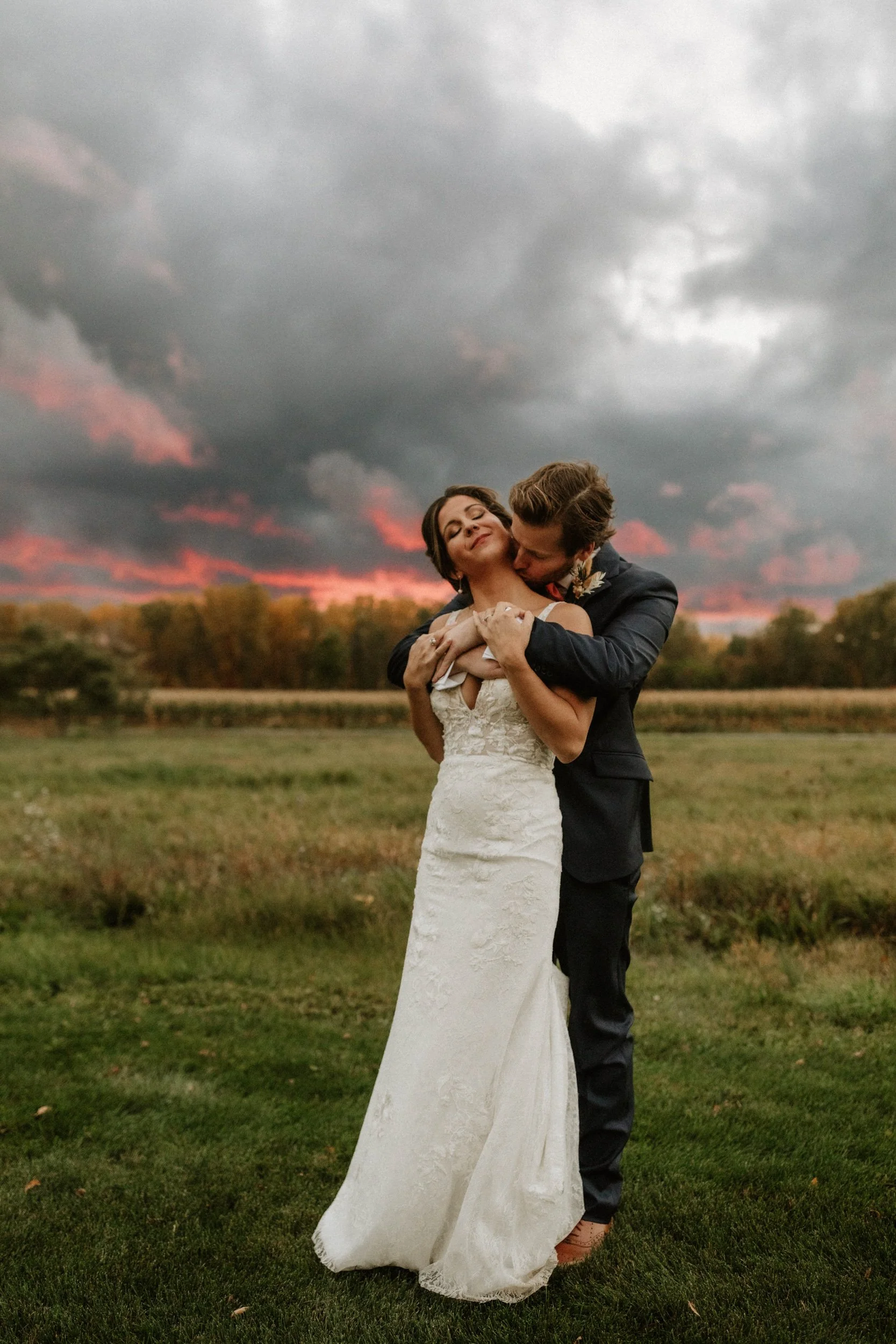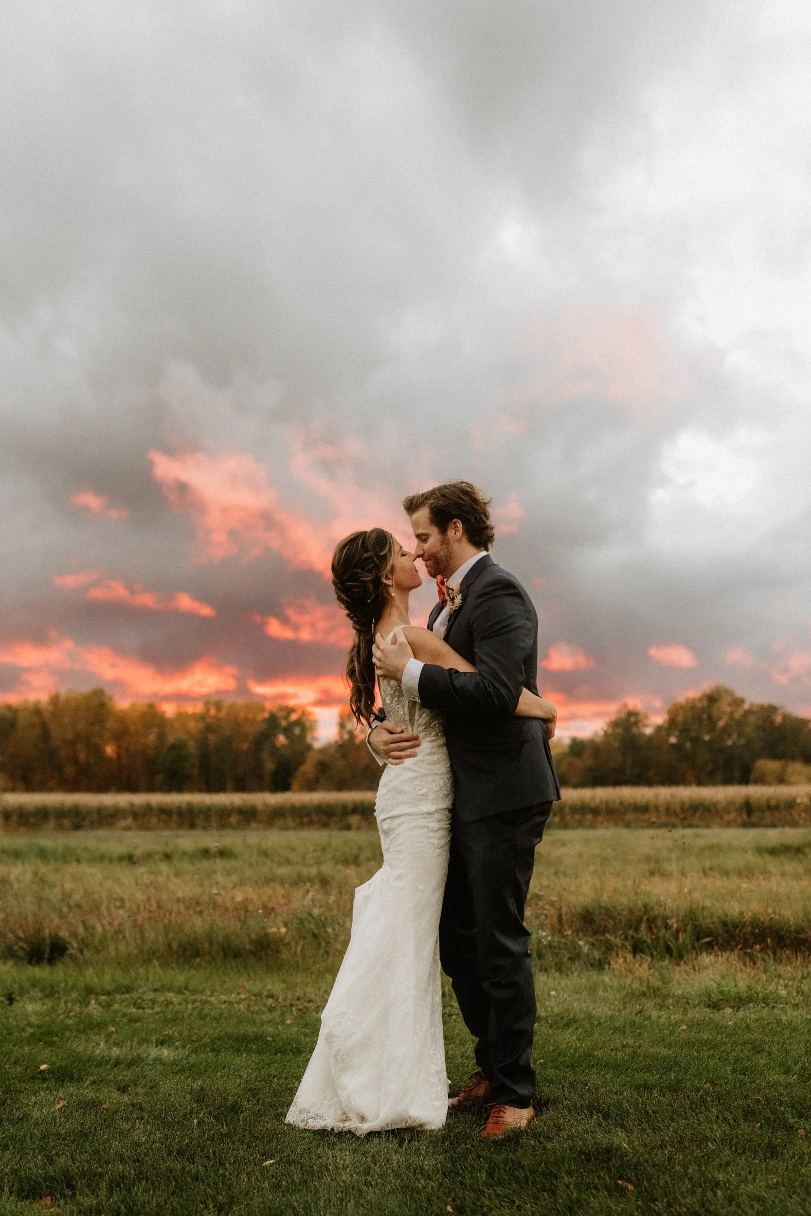 Stunning beauty surrounded Taylor + Lance’s day in every way. Their wedding venue, Etre Farms, and all the details of the day were absolutely jaw dropping. The wind was powerful like Lance & Taylor’s love for each other. It brought a sense of expectancy and excitement to the day. Seeing people leap out of the chairs in the middle of dinner and RUN to the windows to check out one of the most UNIQUE and beautiful sunsets ever was most memorable. Everyone was captivated. Guests were out taking pictures and people who worked at the venue got Taylor + Lance out the door speedily so we could capture it (photos are about 1/3 of the way through this post). Their wedding was a perfect mix of bohemian elegance and class. It was such a special day.
