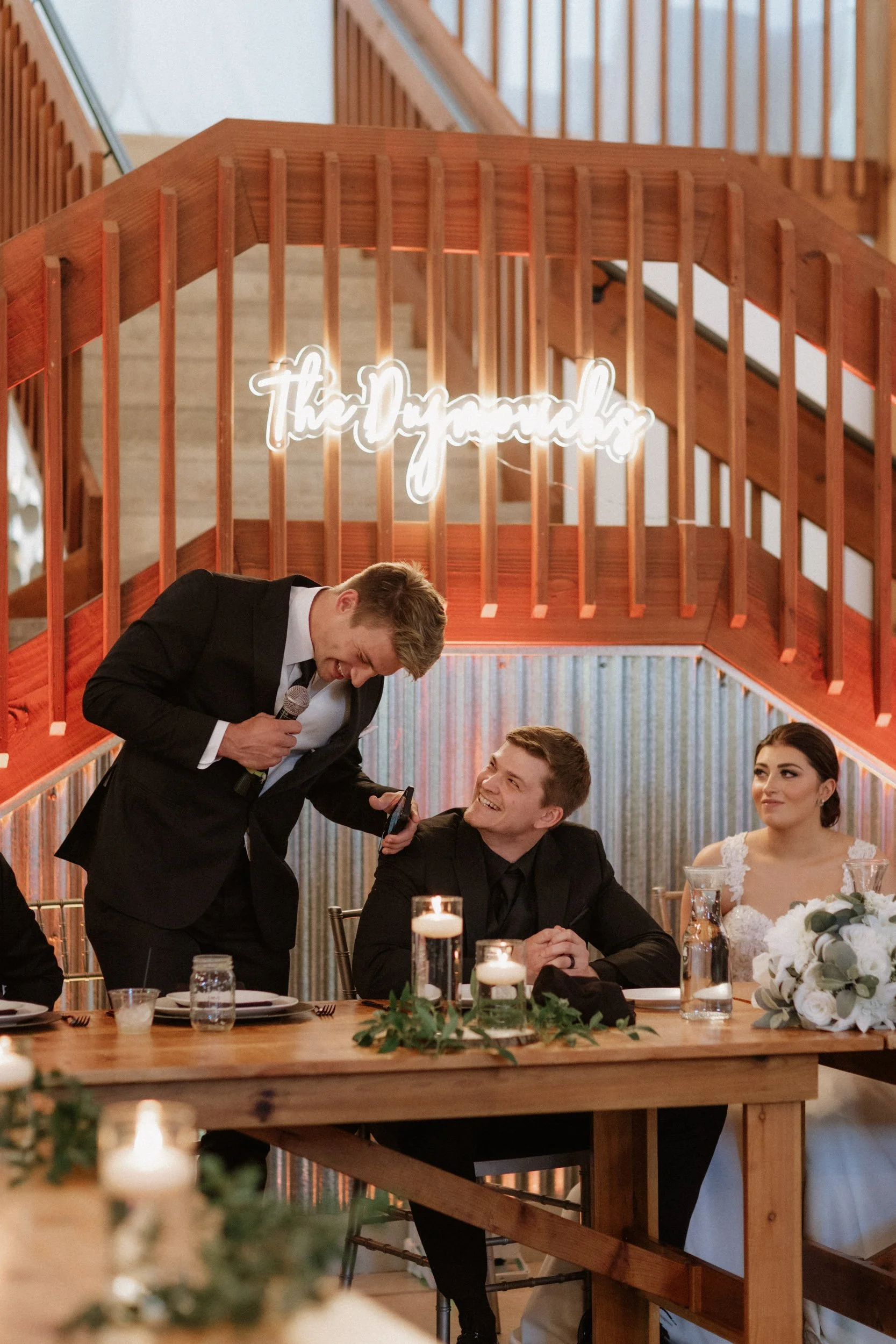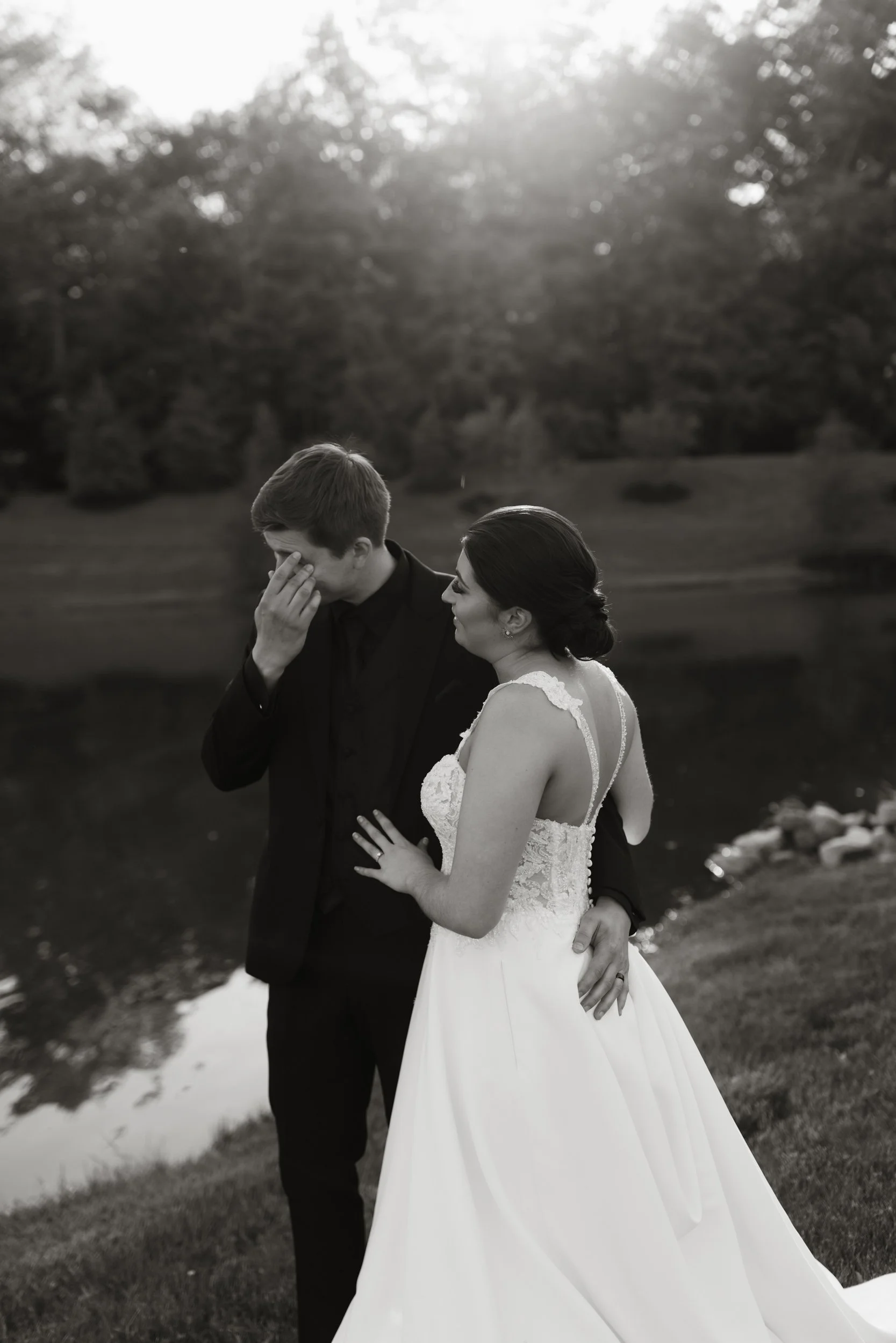 Kari + Johnny stepped outside their reception to catch the golden light before it set below the tree line. We asked Johnny to think of what he’s excited about for the future and share it with Kari. It was the most emotional moment of the day for him as gratitude washed over him. The thought of getting to spend the rest of his life with Kari made it challenging for him to say a word. His inability to speak communicated all it needed to. You just never know when the emotions are going to hit on your day! We were so thankful we got to capture that special moment for them to cherish all the days of their life.